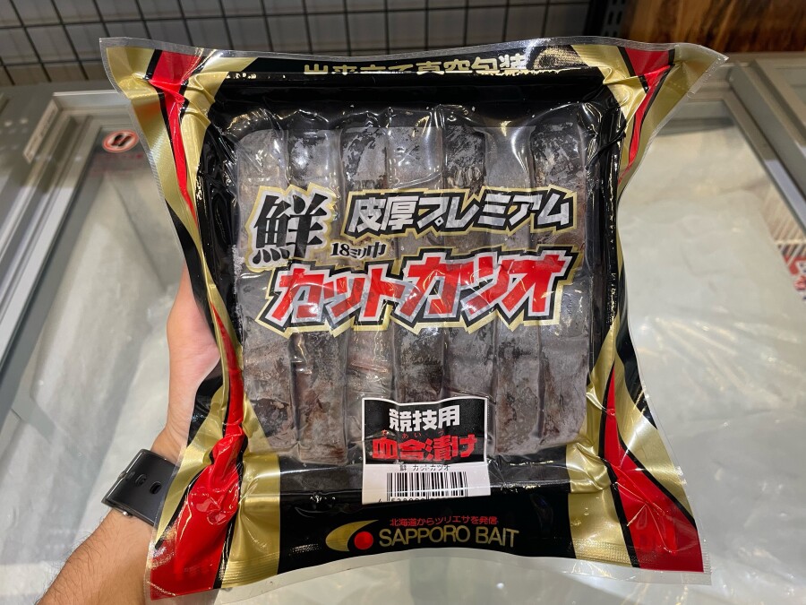 カツオの頭部から搾った血合いに漬け込んでおり、集魚効果抜群です!!カジカも狙えます!!