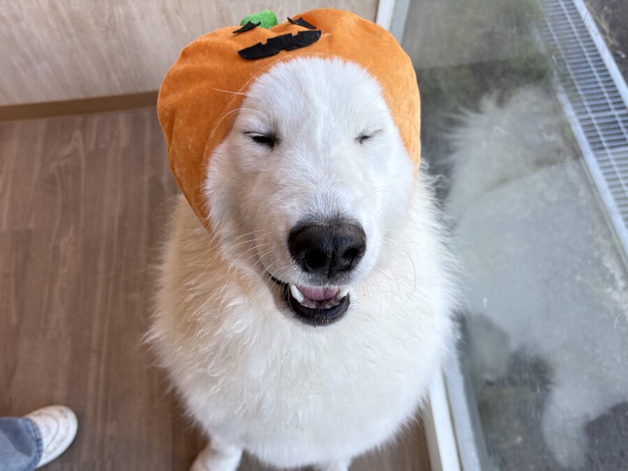 お洋服も慣れてきて、冬物のお洋服や被り物、ハロウィン風の被り物など頑張って身につけた後は自信満々なお顔で写真を撮りました????