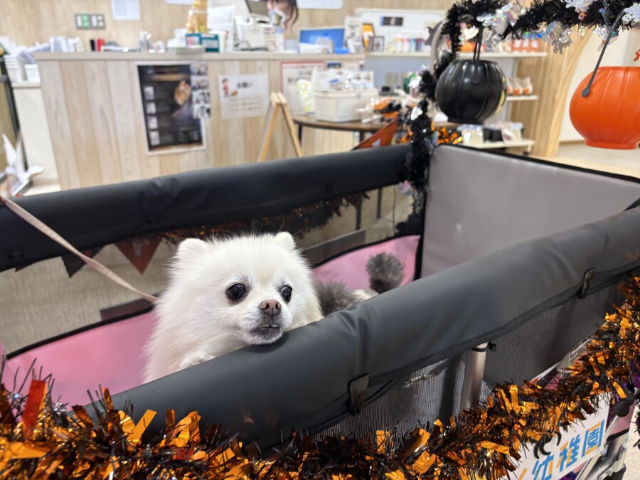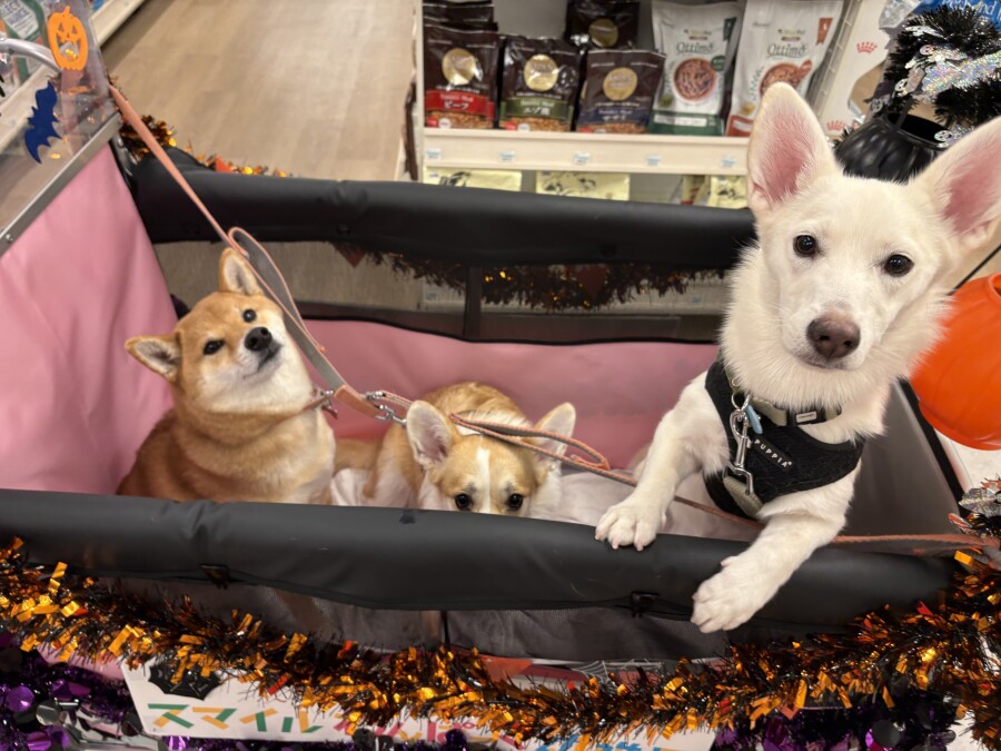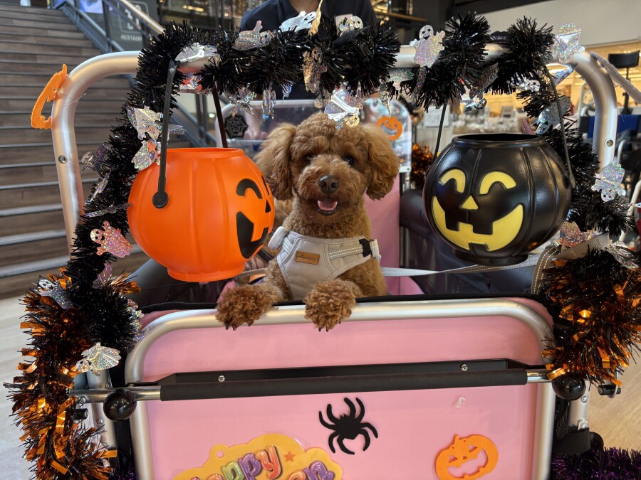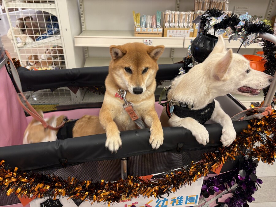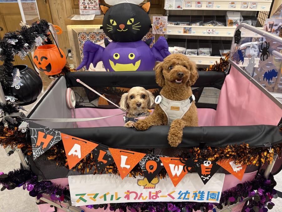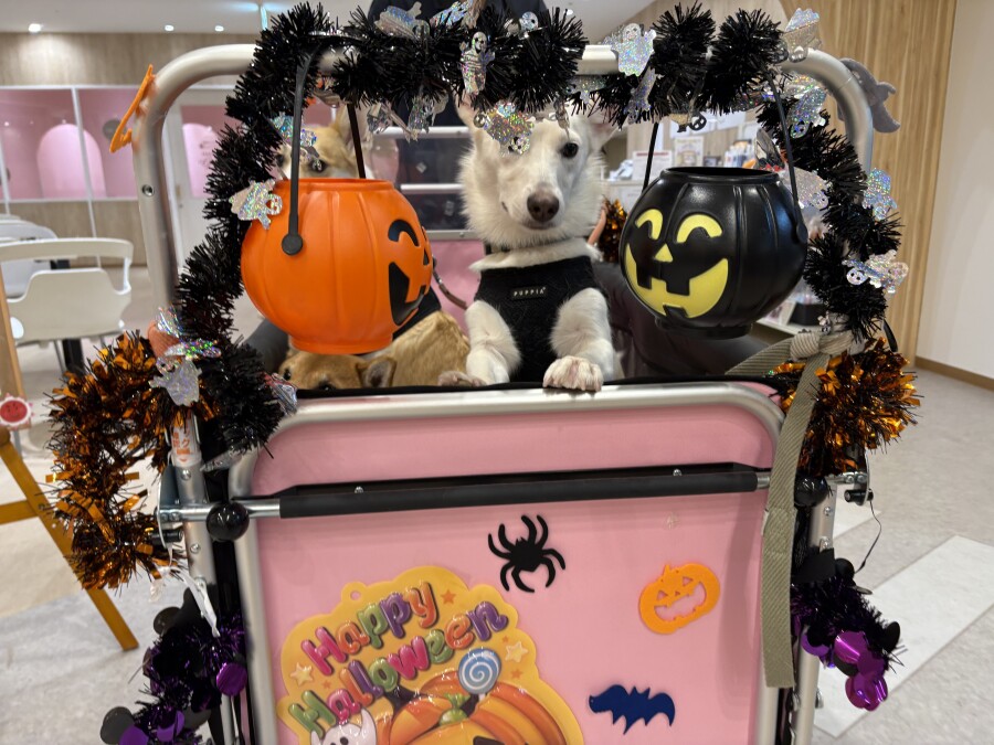 お勉強は今日からカートに!ハロウィン仕様のカートで店内をまわりました!!みんな上手にお顔をひょこっと見せてくれます✨
