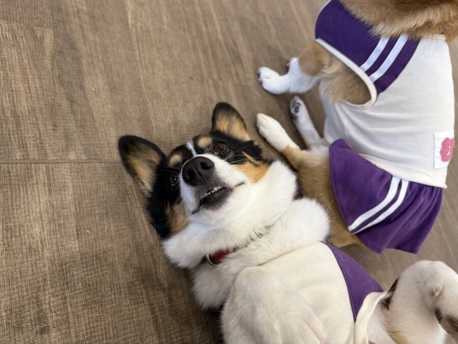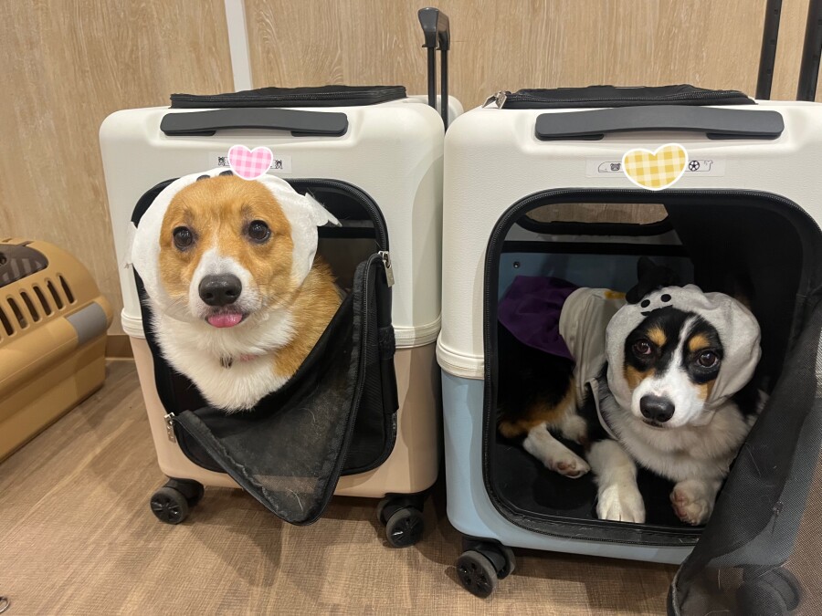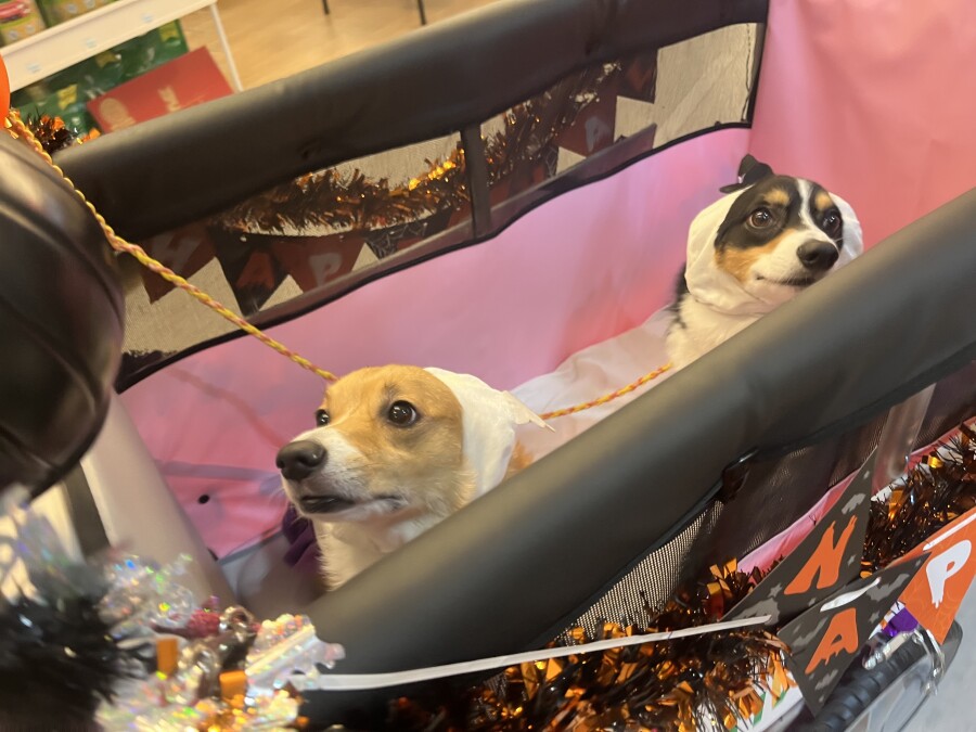 コーギーのむぎちゃんあわちゃん姉妹はおばけのままハウスしてしまいました^^;