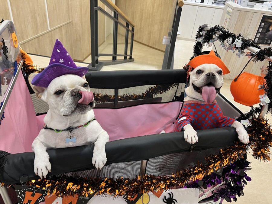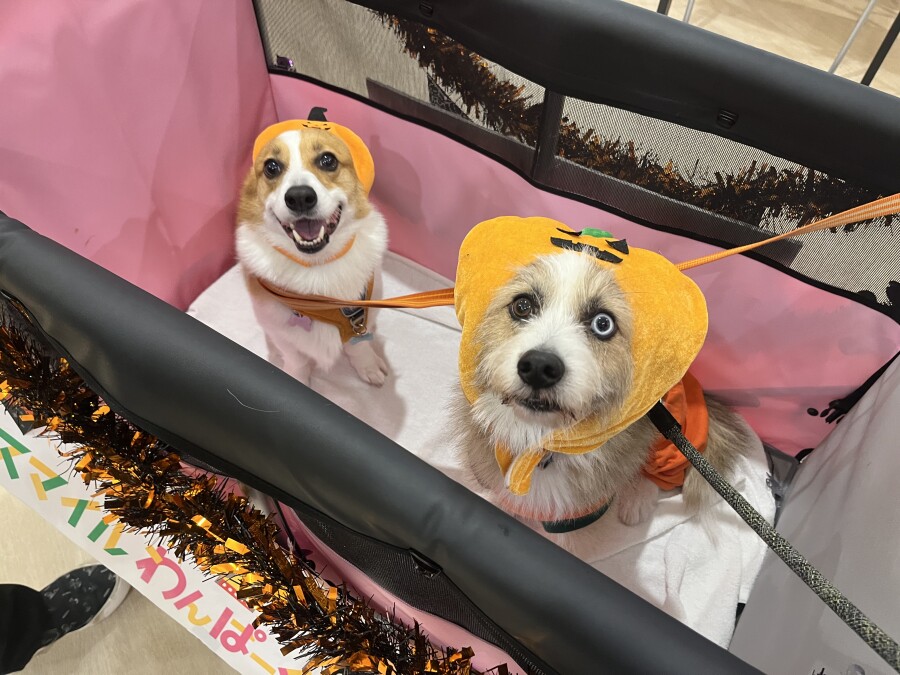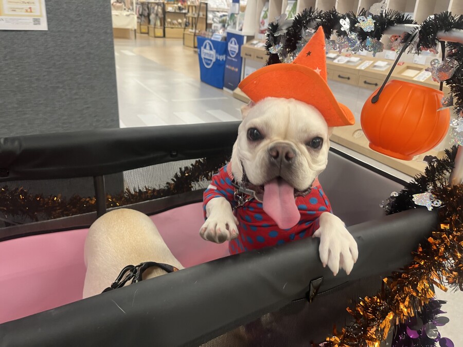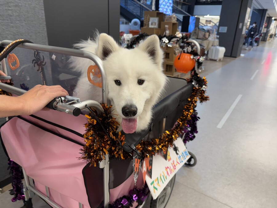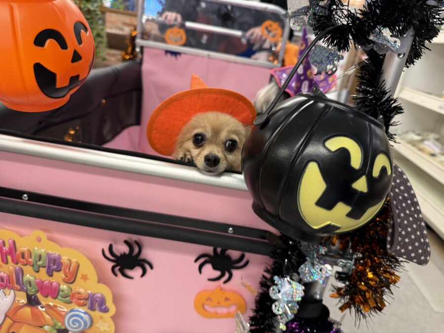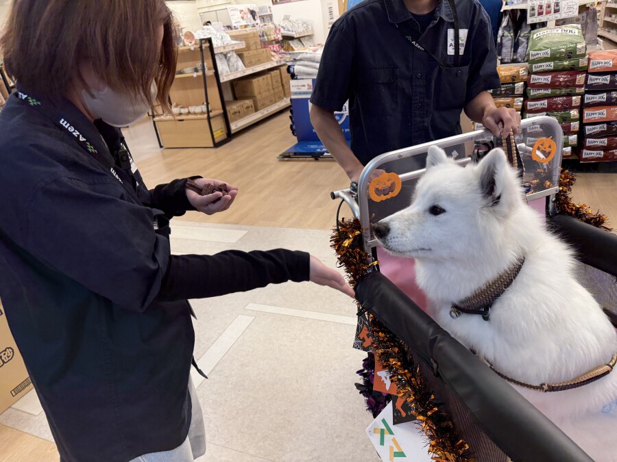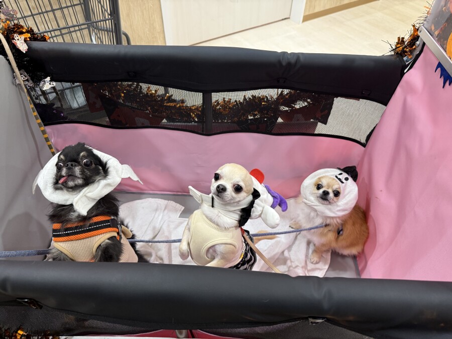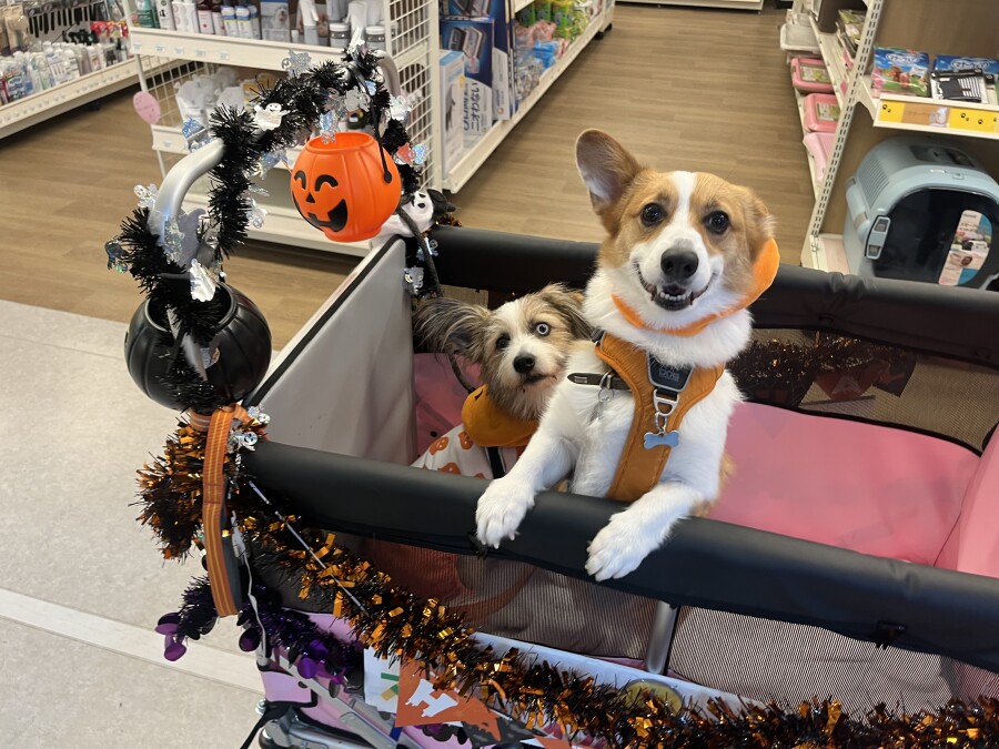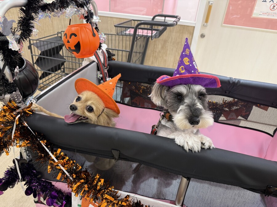 お勉強ではそれぞれおそろいの仮装をして、幼稚園カートで店内をお散歩!