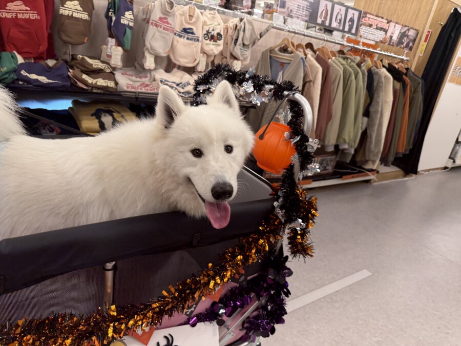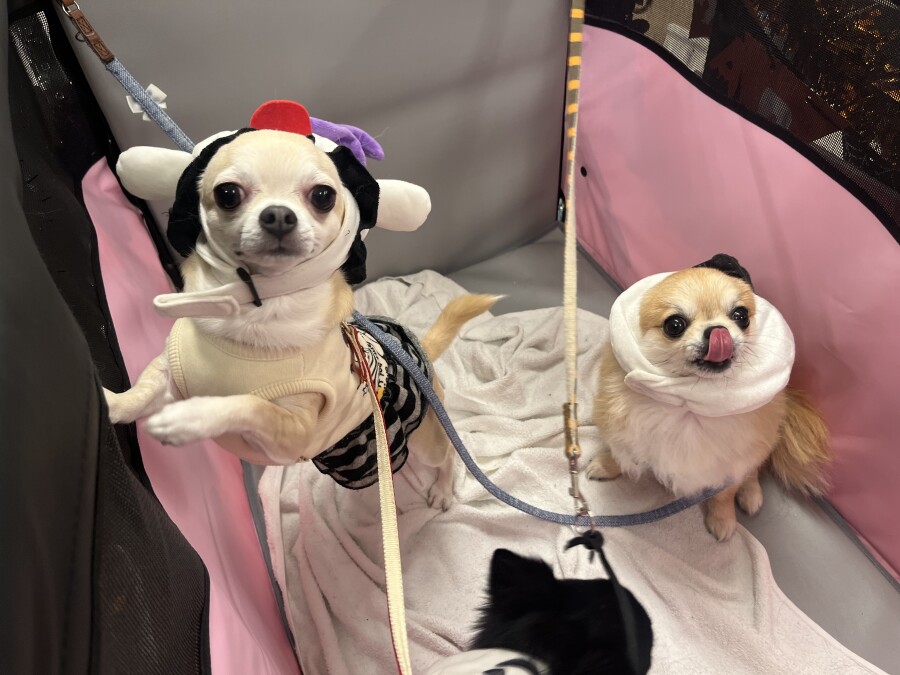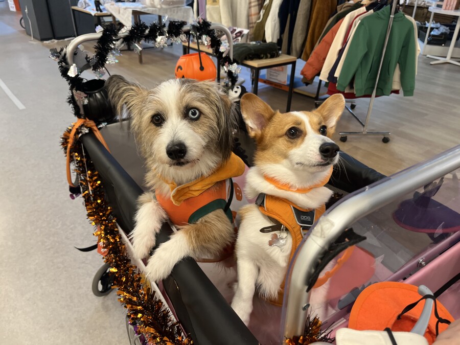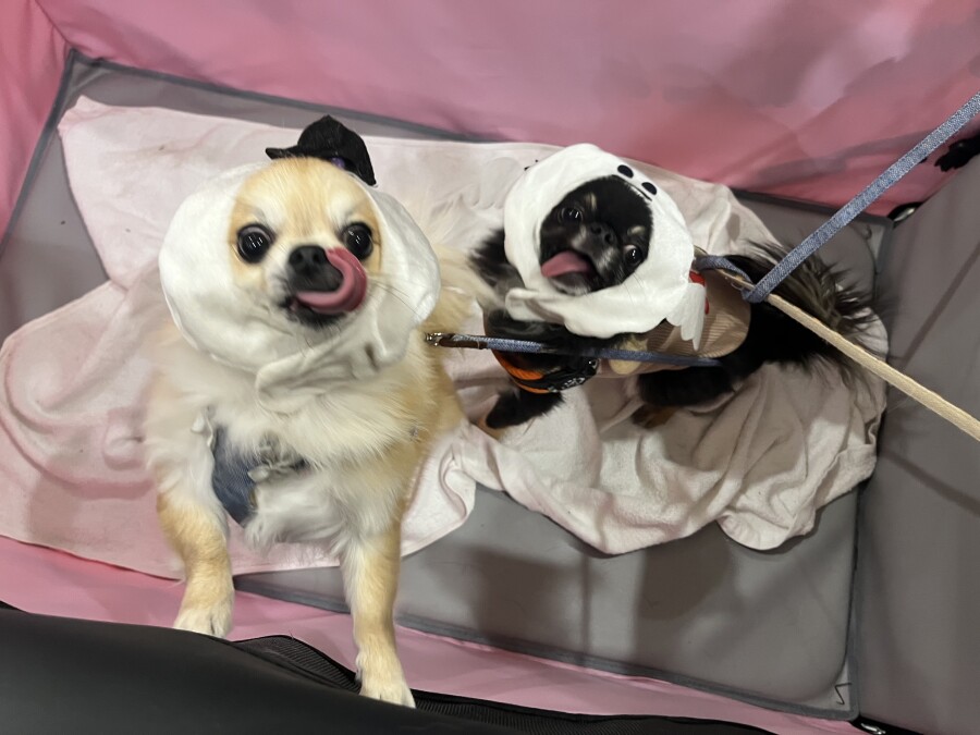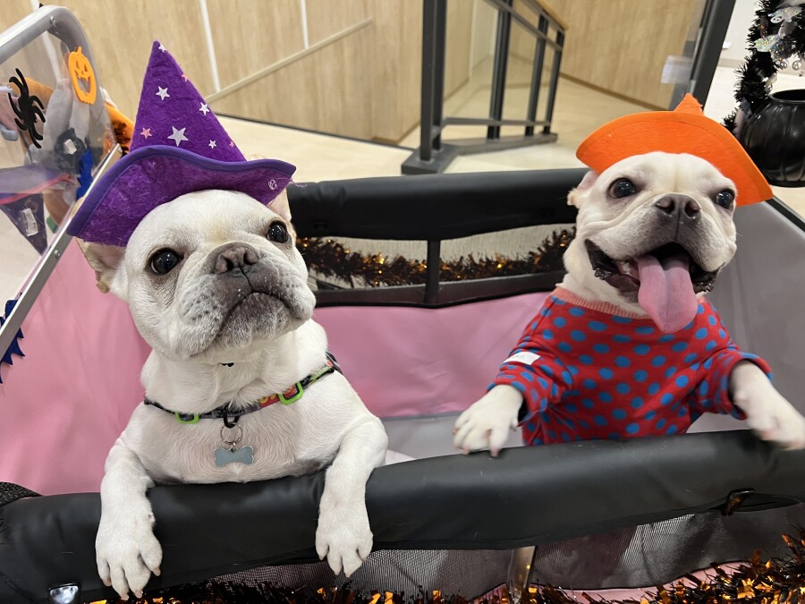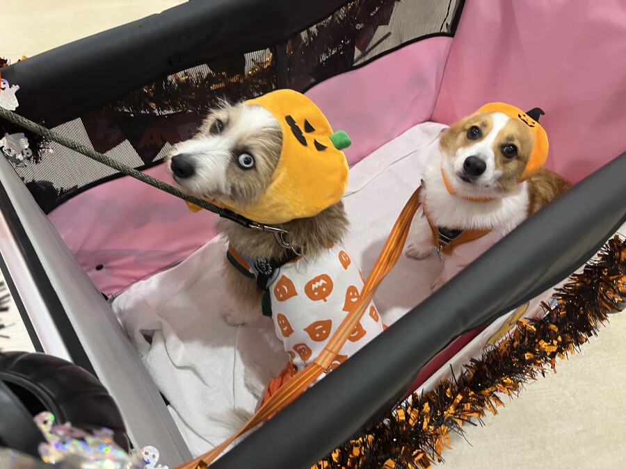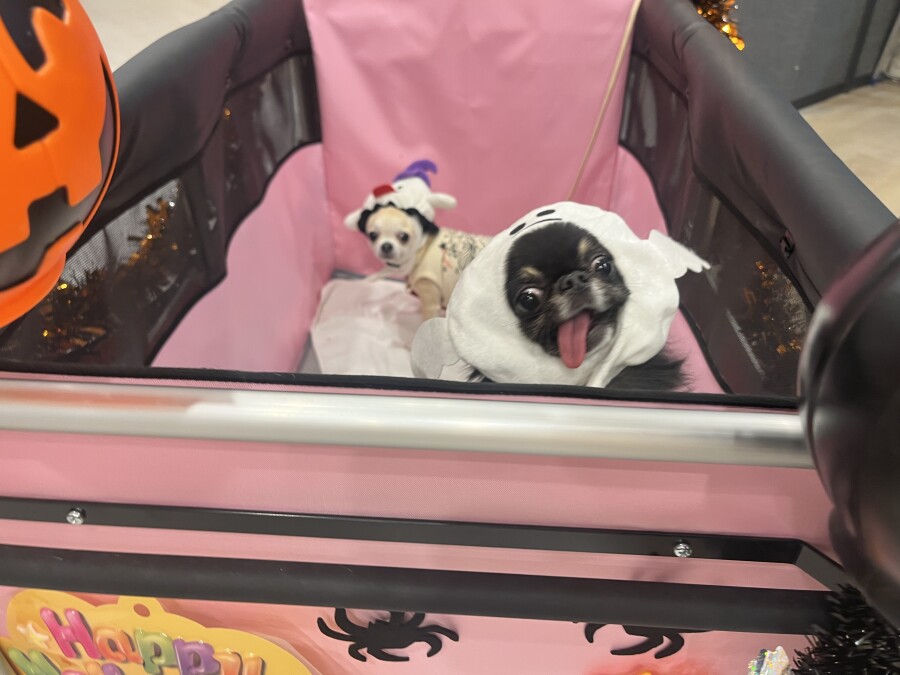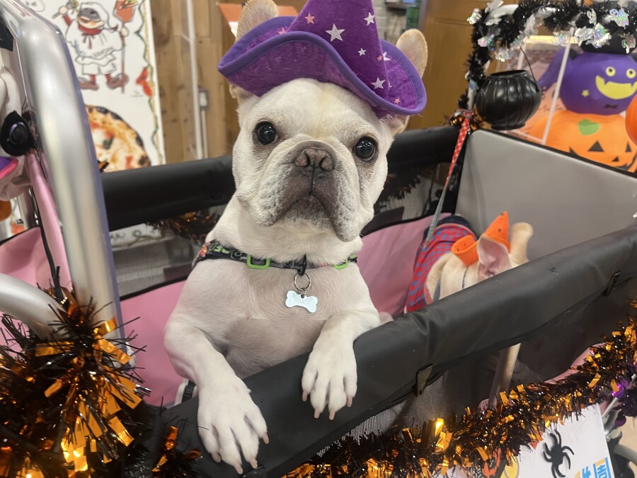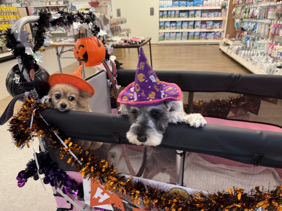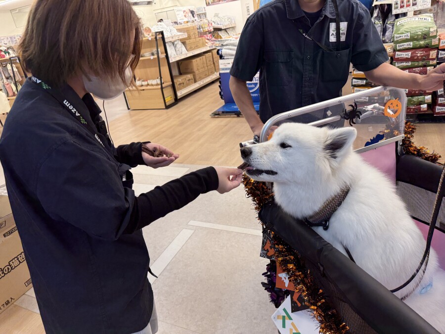お勉強ではそれぞれおそろいの仮装をして、幼稚園カートで店内をお散歩!