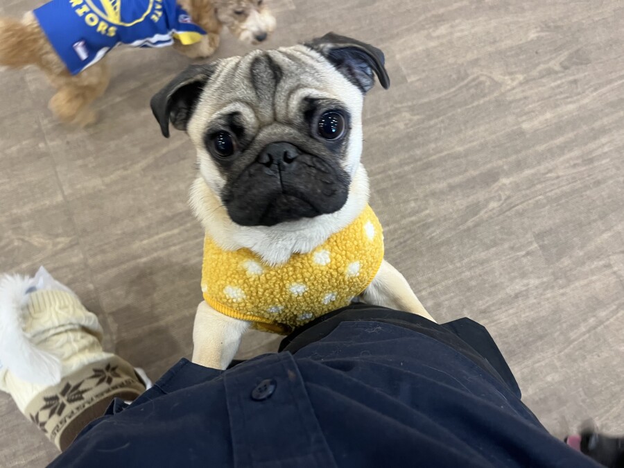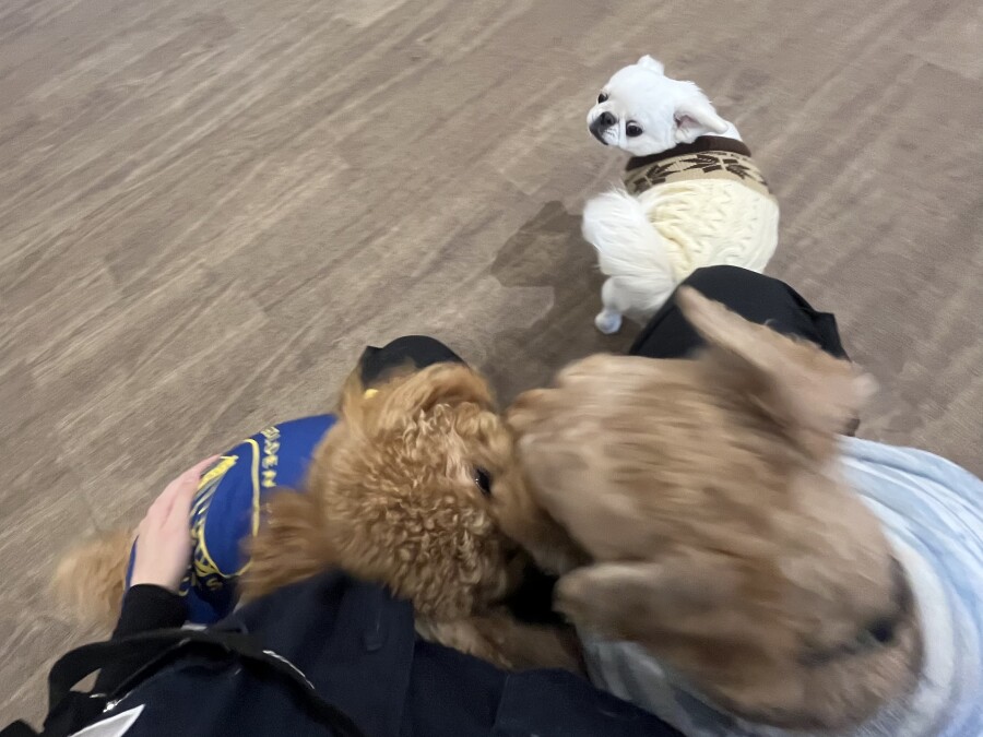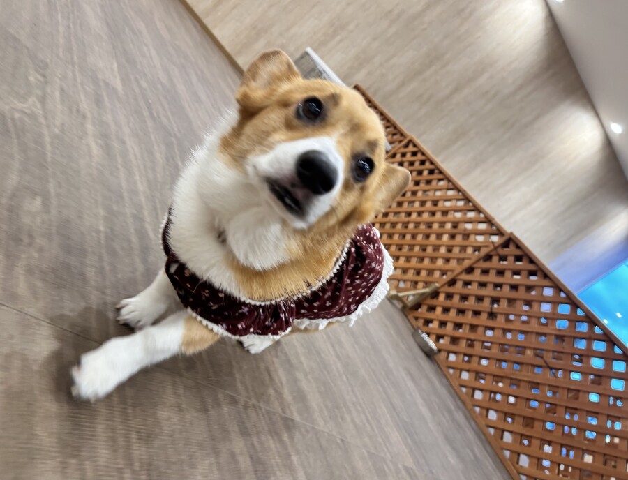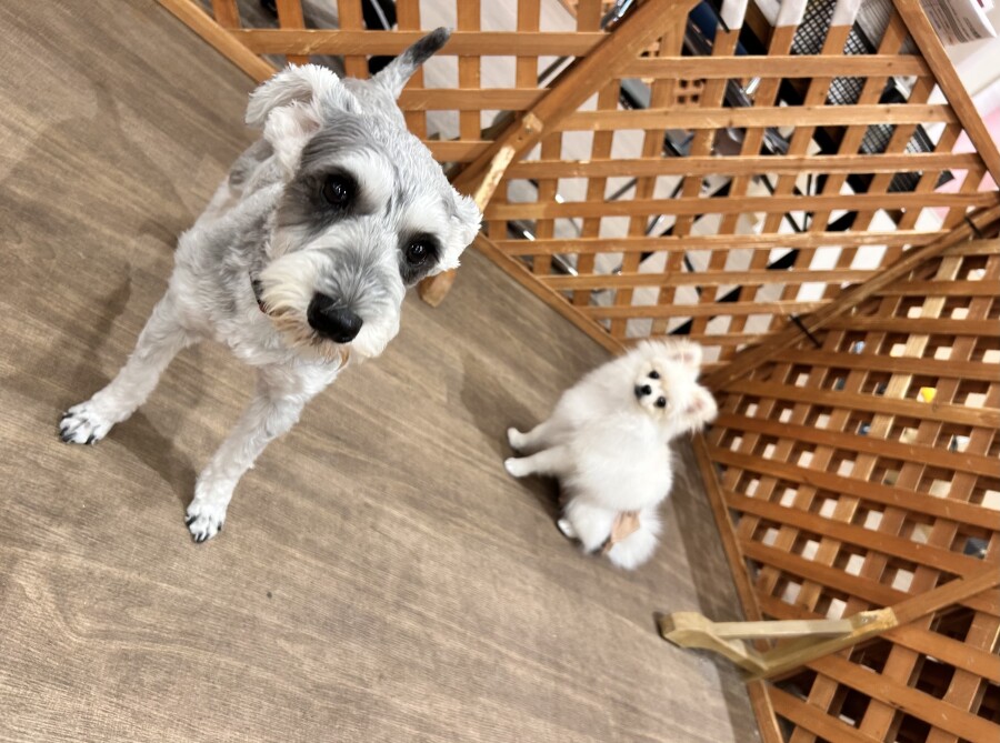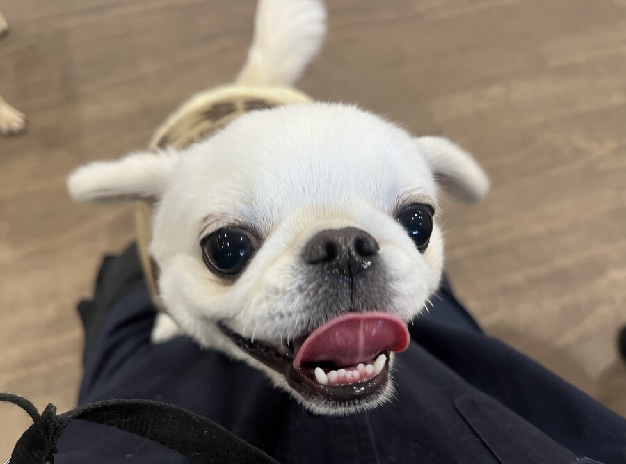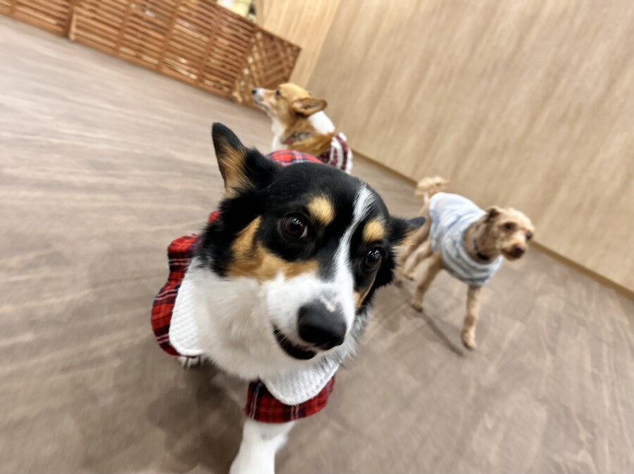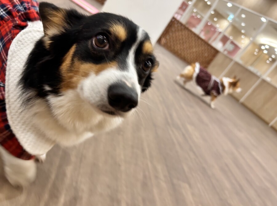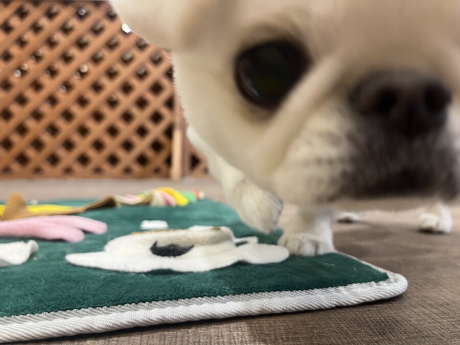 近すぎておそらくおやつは見えていませんが、嗅覚だけでおやつを見つけることができたみたいです✨笑