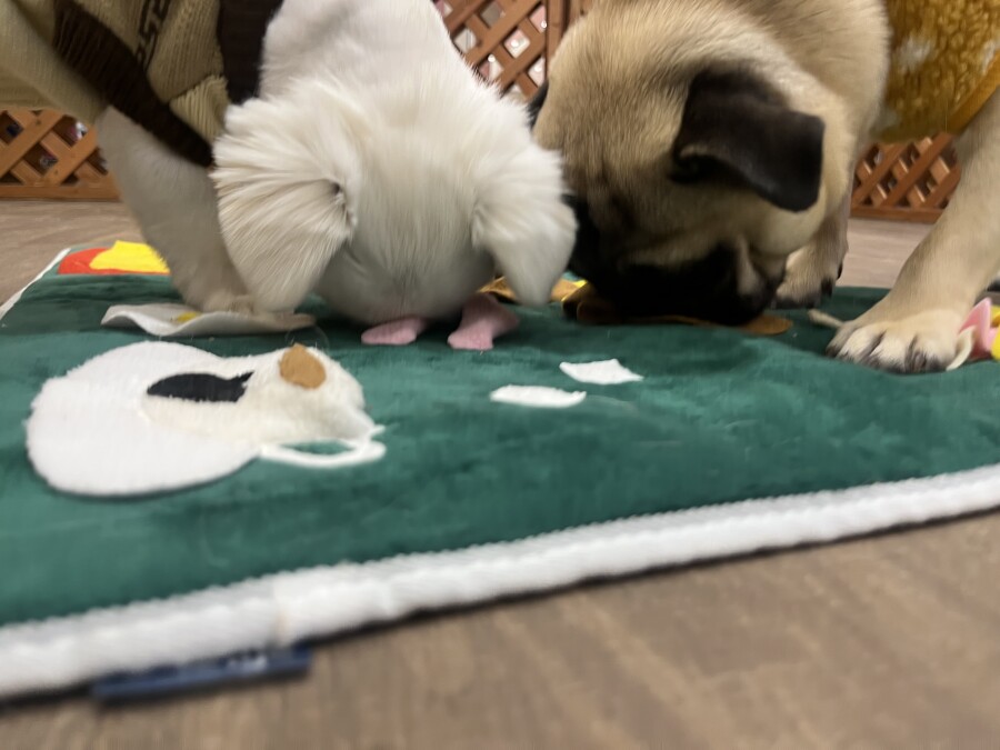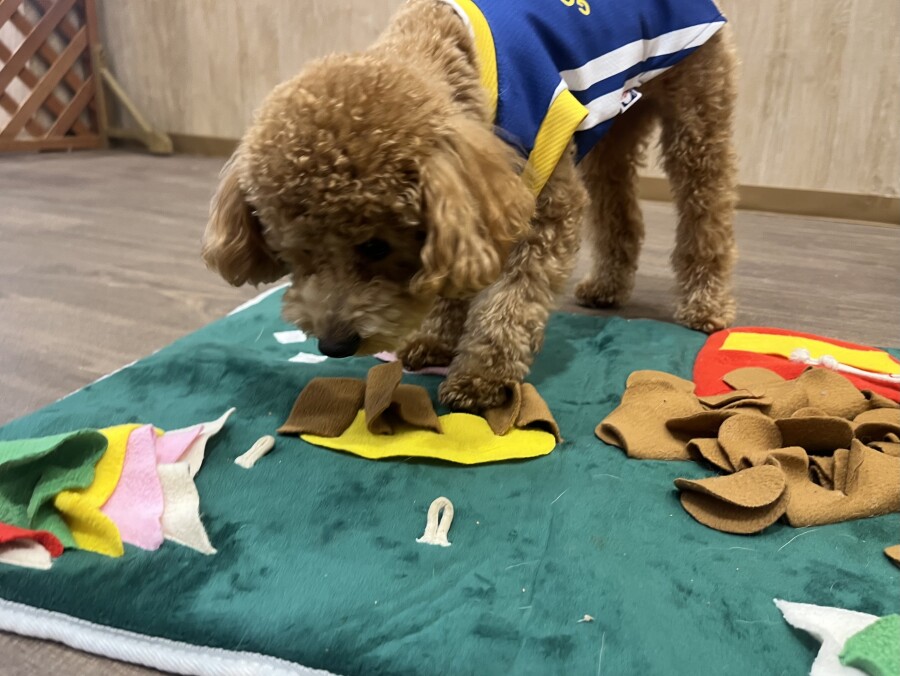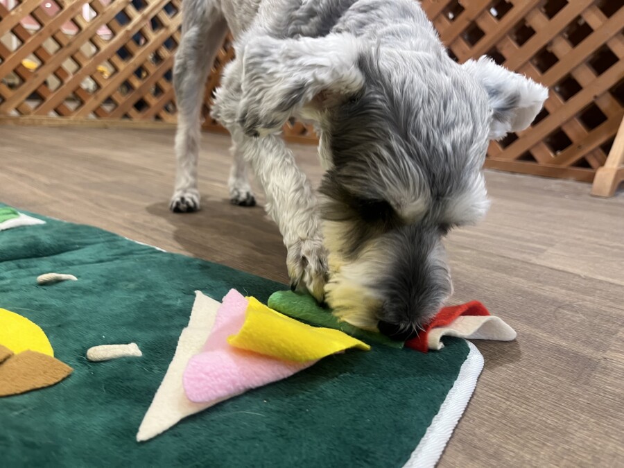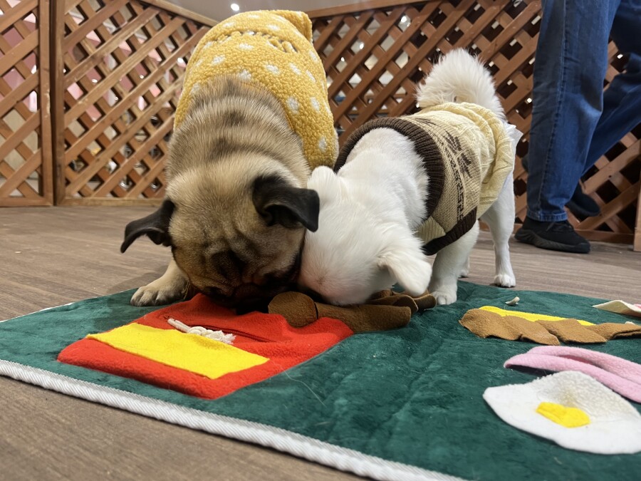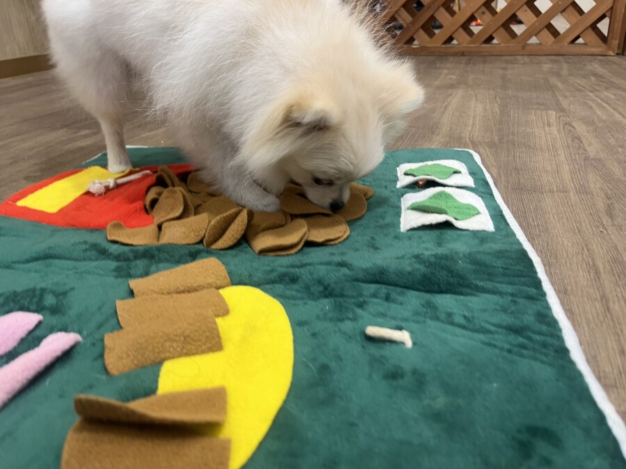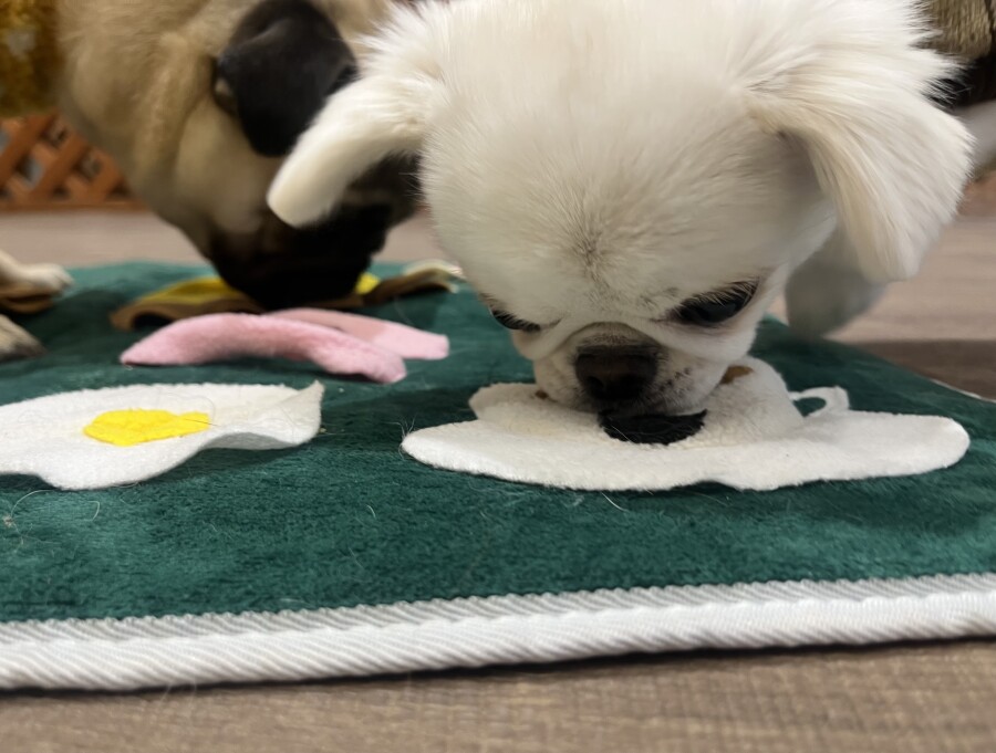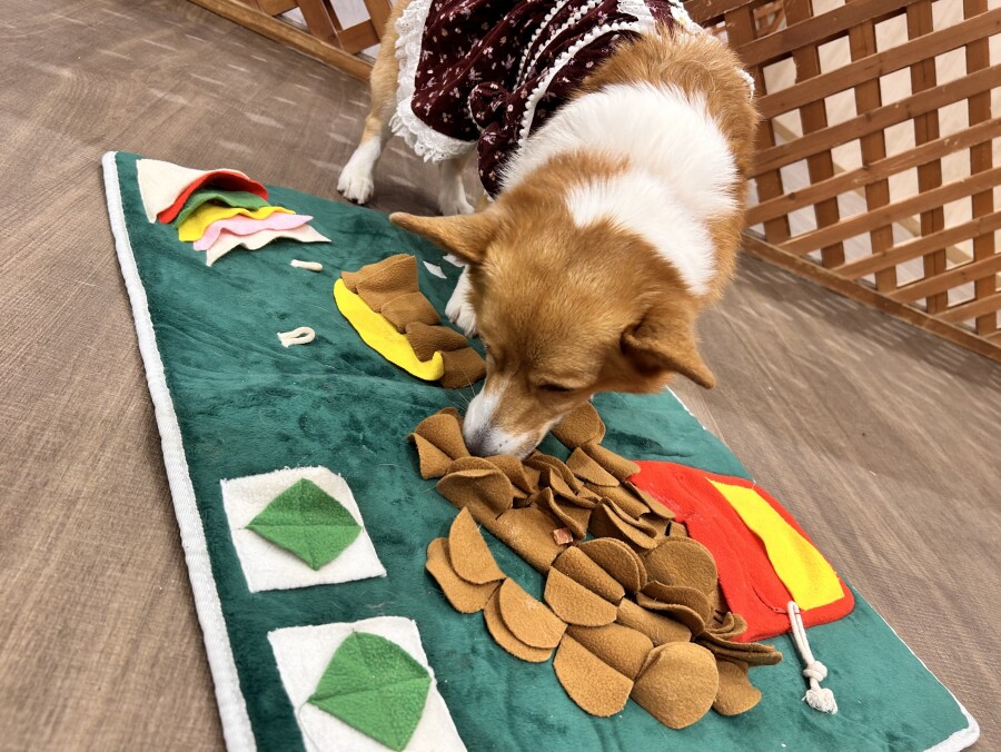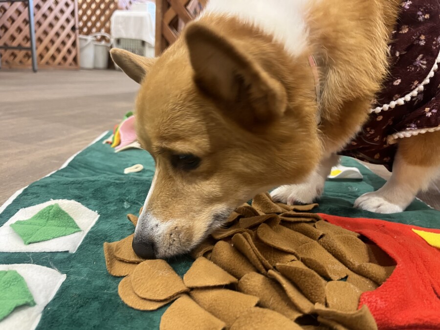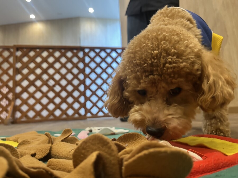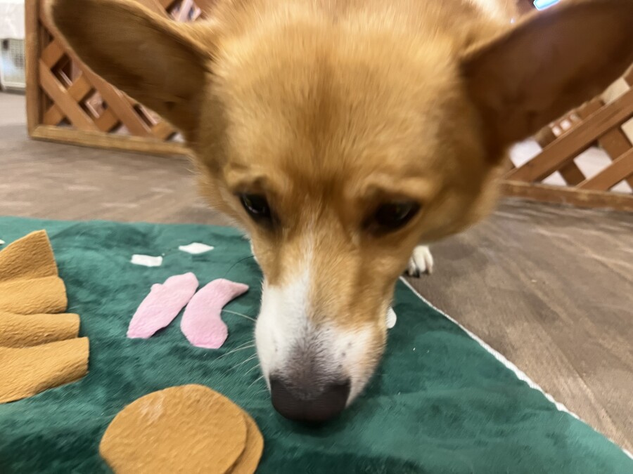 わんちゃんが嗅覚を使ってオヤツを探す、というものです!