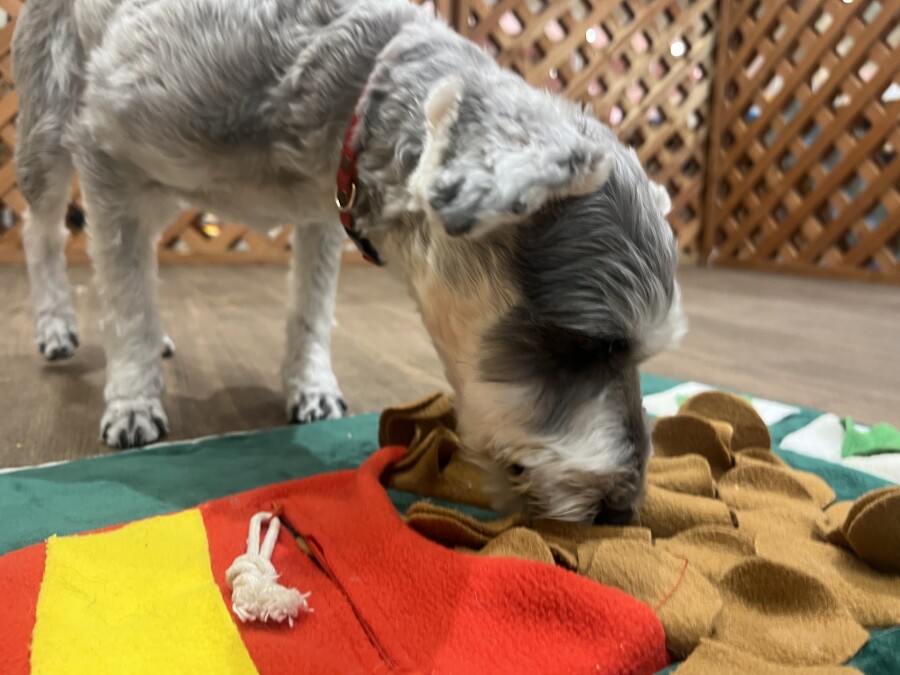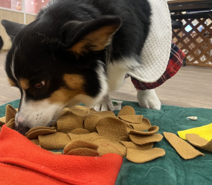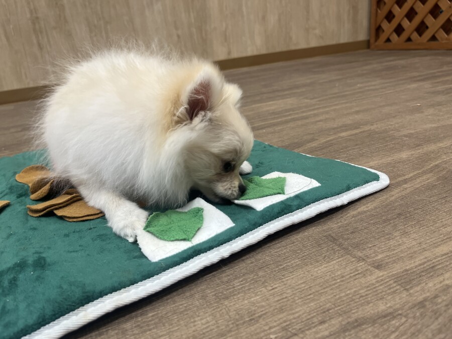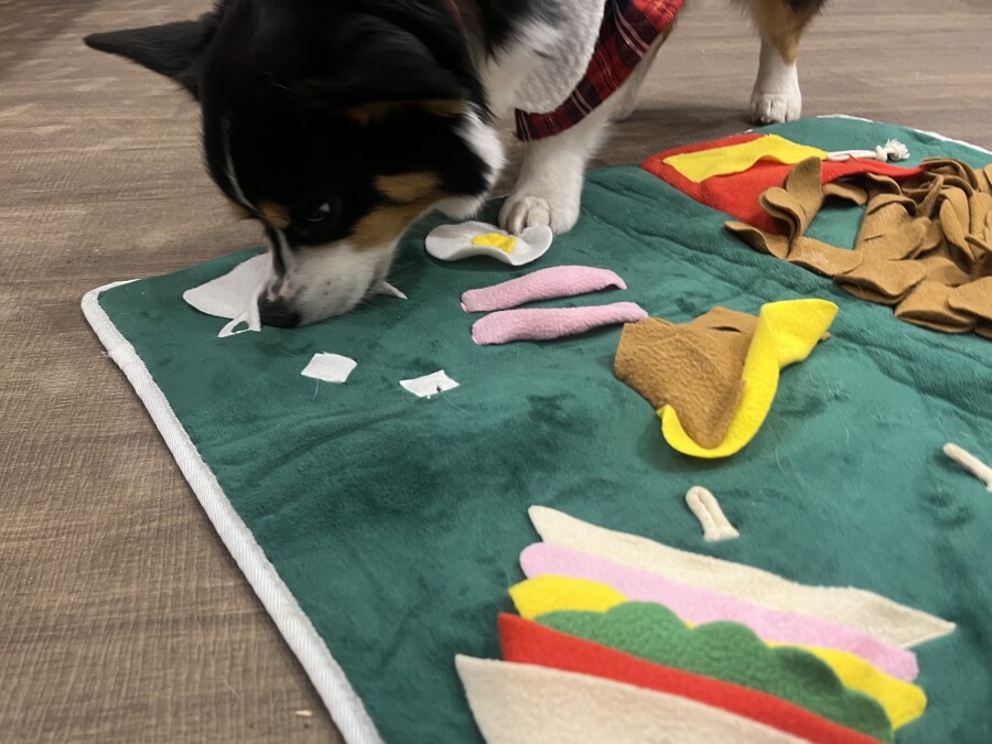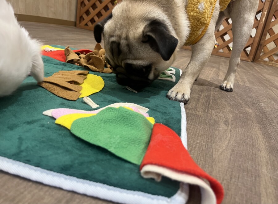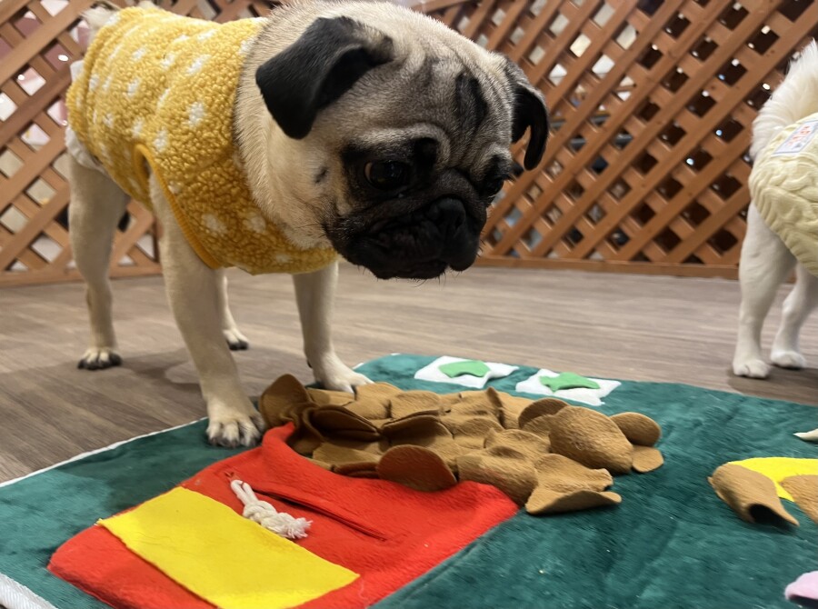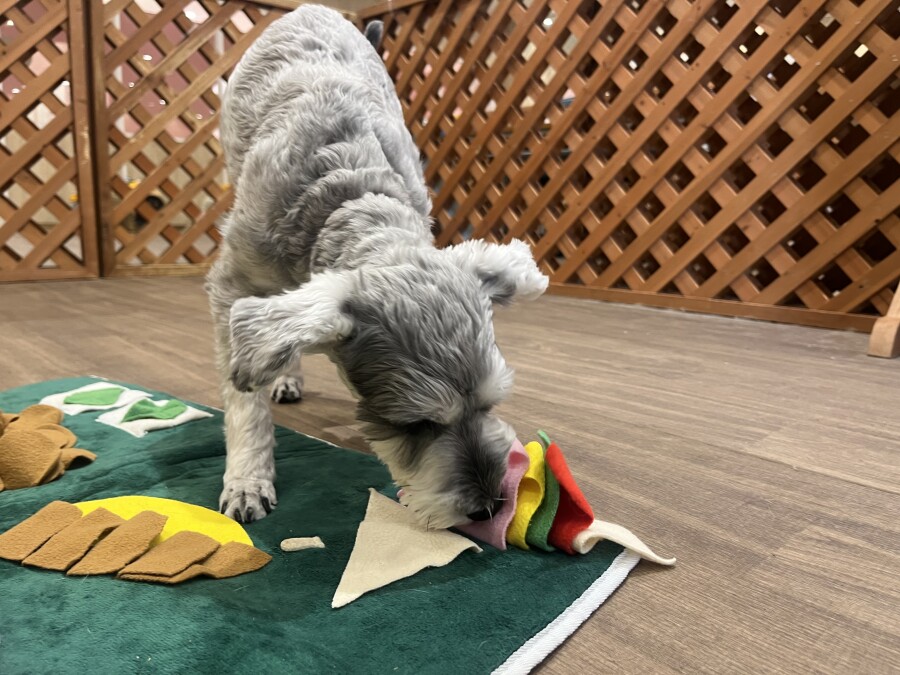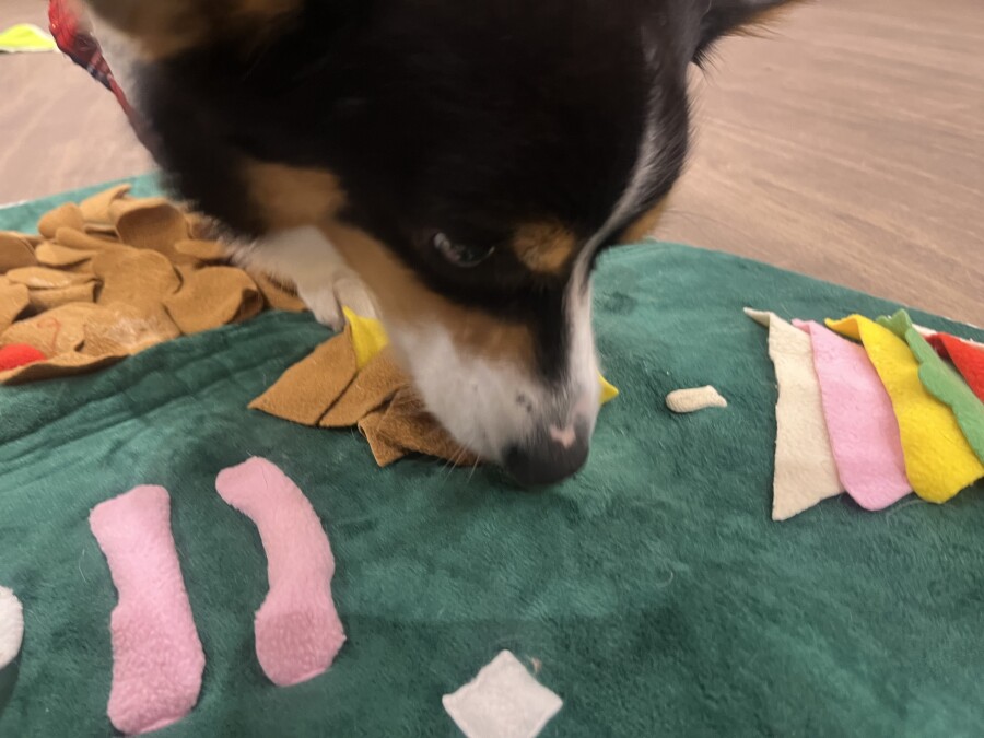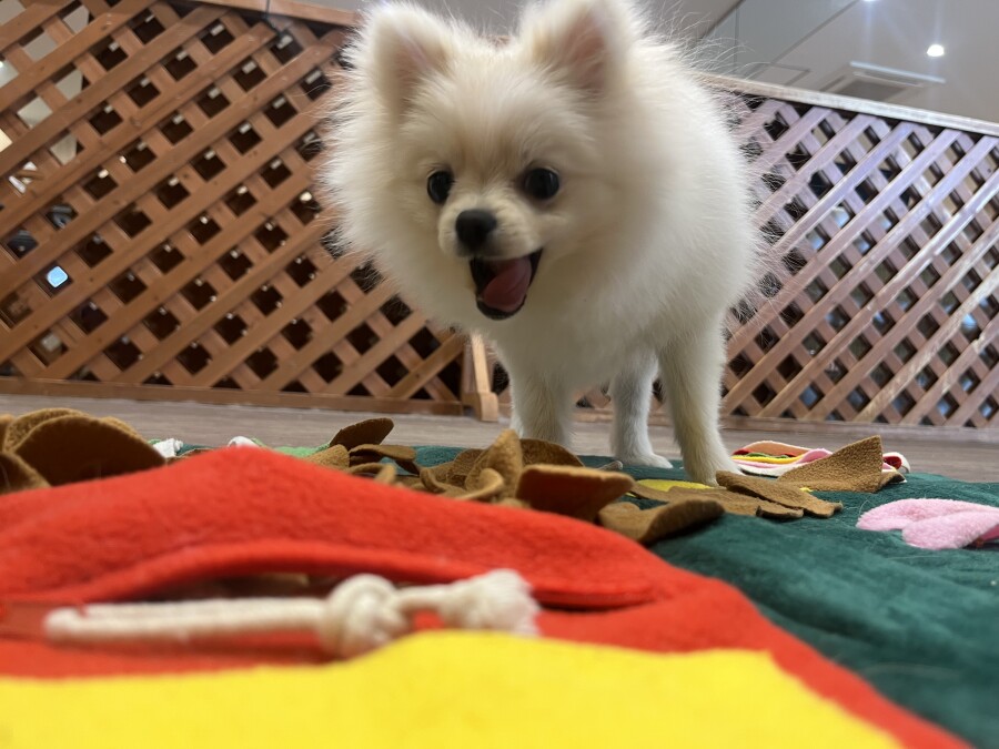 わんちゃんが嗅覚を使ってオヤツを探す、というものです!
