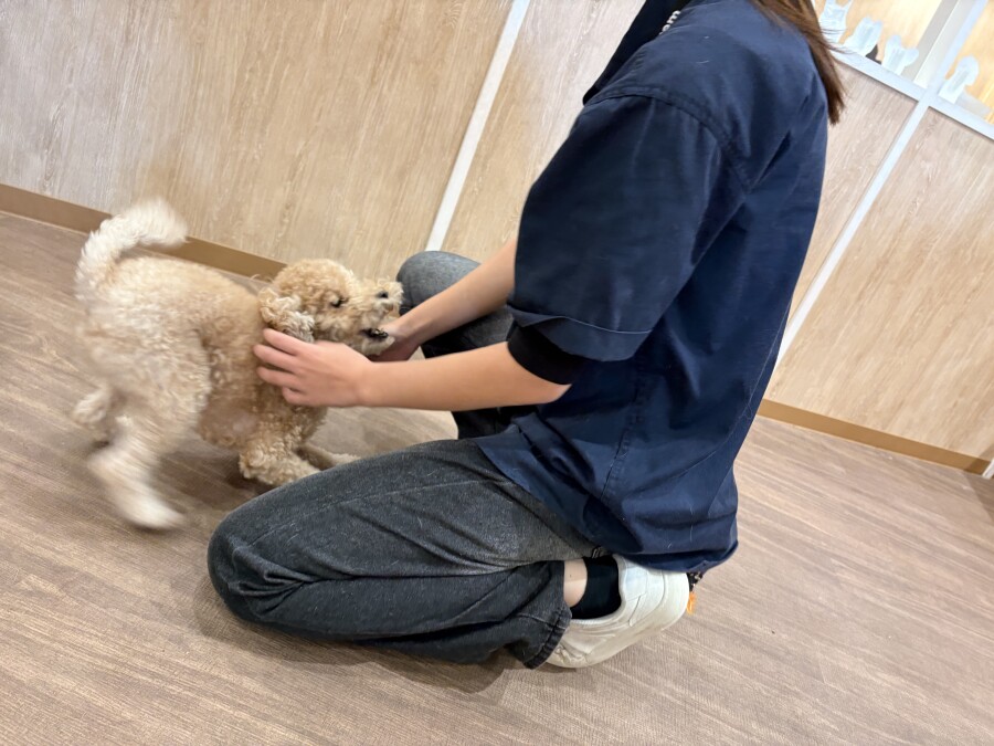 全力で駆け回る組もスタッフが入ると甘えモードに〜(≧∀≦)みんなして、撫でてよ!!とスタッフに手でちょんちょんとアピールしてくれます♡