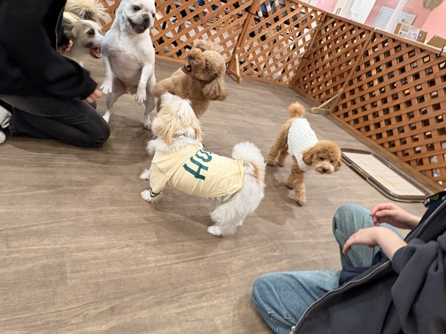 スペースはいつもの2倍あるはずなのに、みんな同じところに固まっていて見ててほっこりしました(о´∀`о)