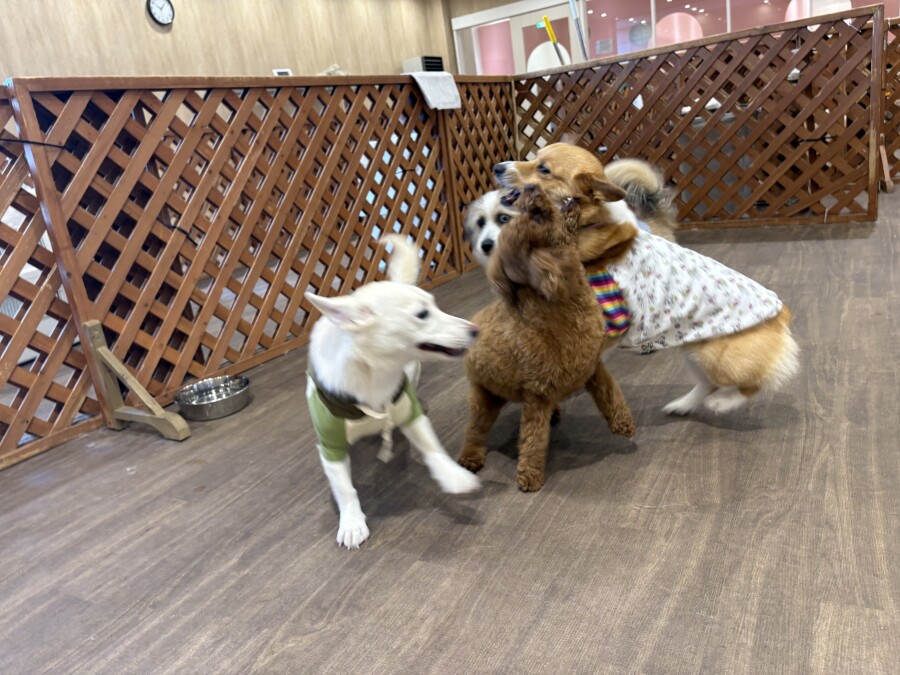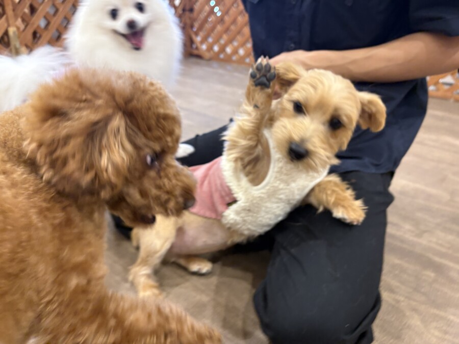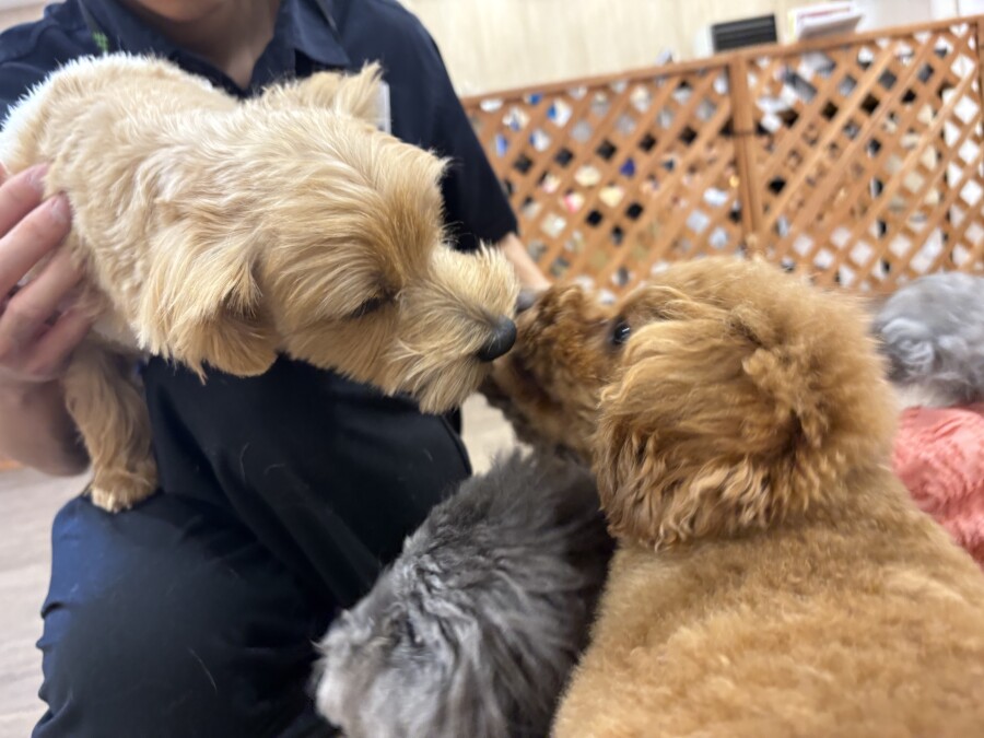 甘えん坊さんたちはいかに先生たちに近づけるかバチバチです(とっても仲良しです)!私の時間!と手でえいえいやっているうちに甘えるどころか遊び始めちゃう子も!