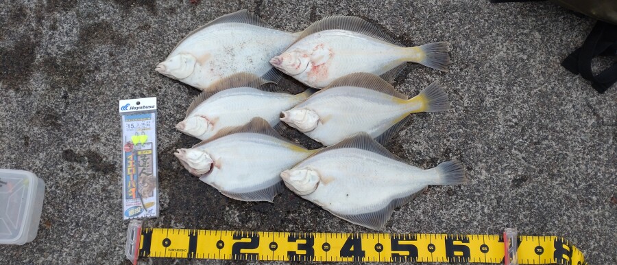 2人で7枚(写真では6枚ですが)、最大38cm!35cm前後がメインで釣るにも、食べるにもちょうどいいサイズ!