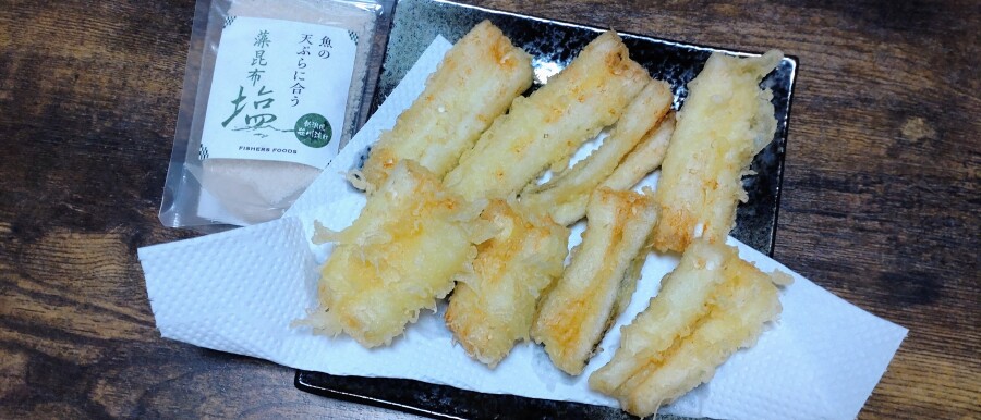 昆布や海藻のうま味の入った塩が魚の天ぷらに合います。ぜひこちらもお試しください!