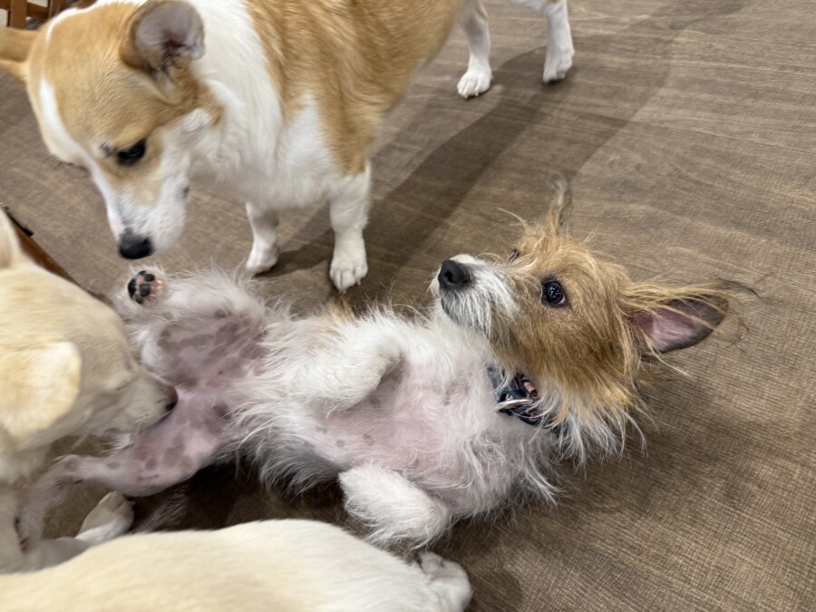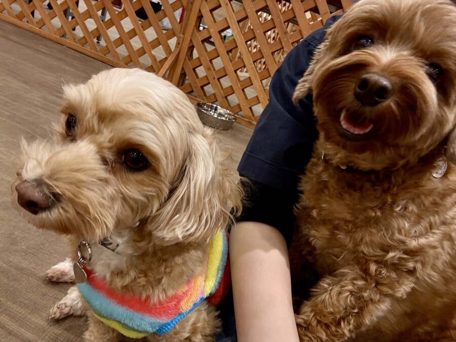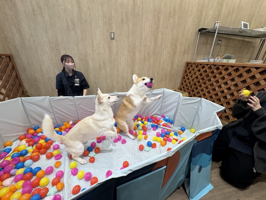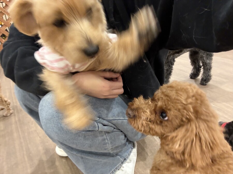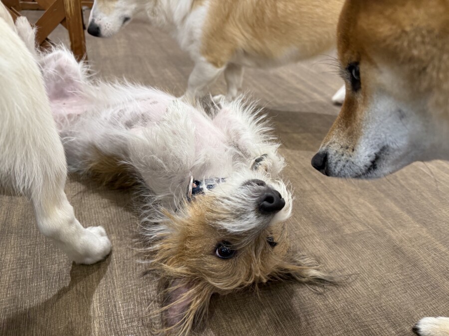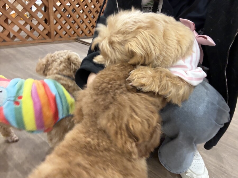 一方もう片方のエリアでは撫でられ待ち!順番こでしょ!!と言わんばかりにおててでエイエイ!仲良しさんです♪