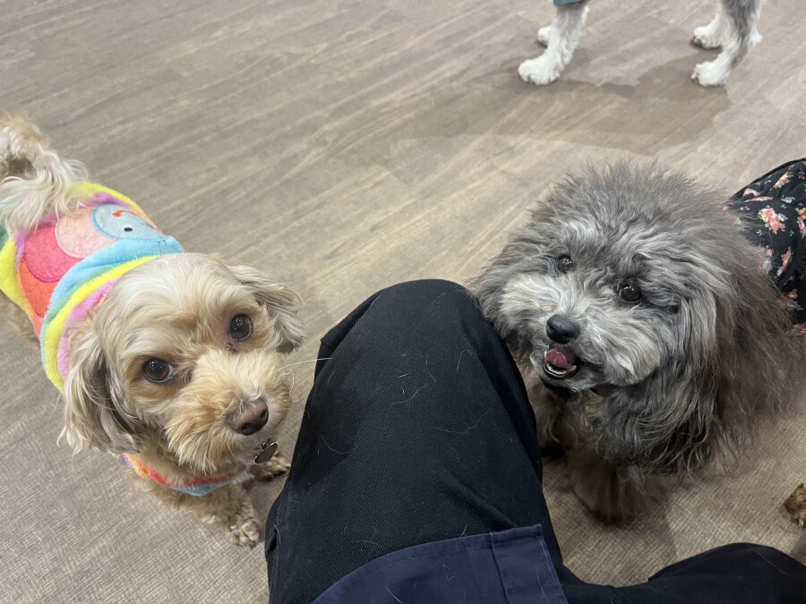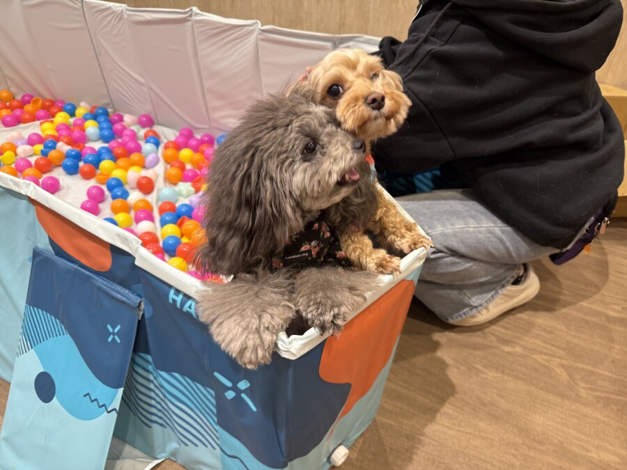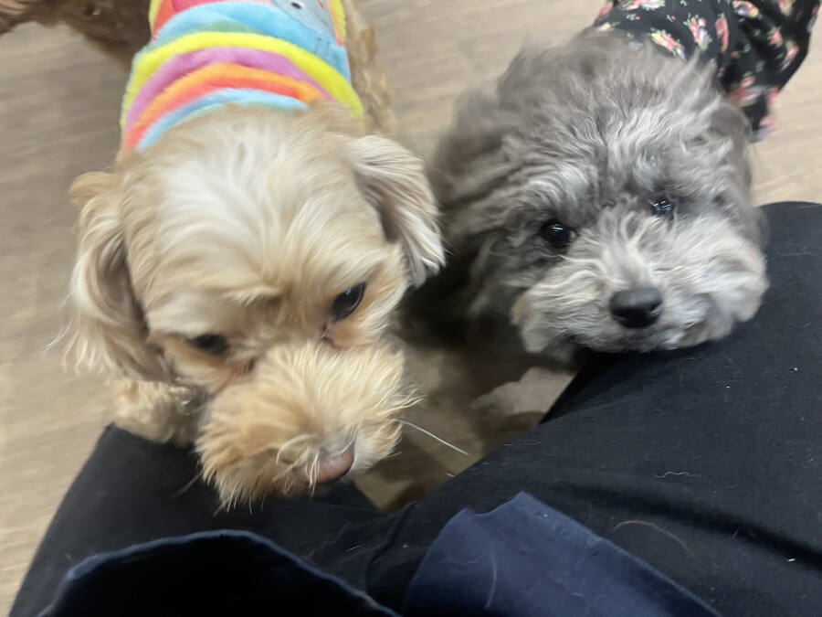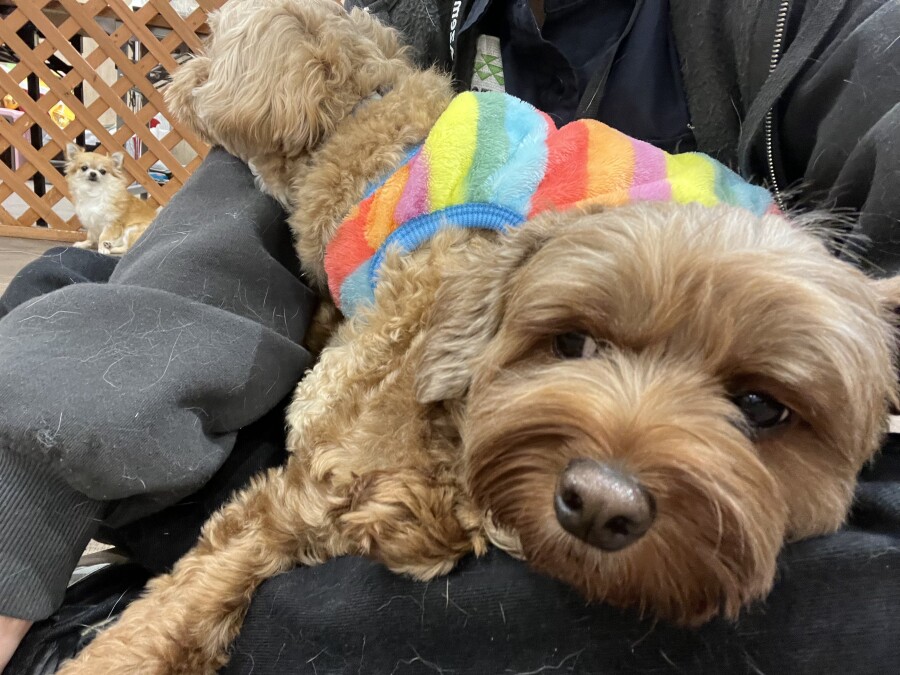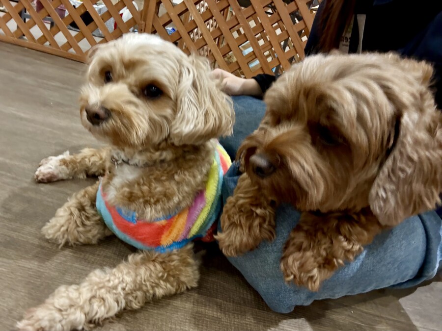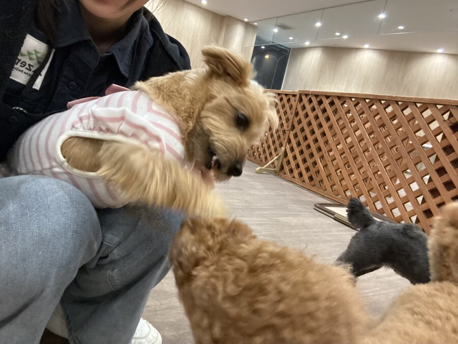 一方もう片方のエリアでは撫でられ待ち!順番こでしょ!!と言わんばかりにおててでエイエイ!仲良しさんです♪