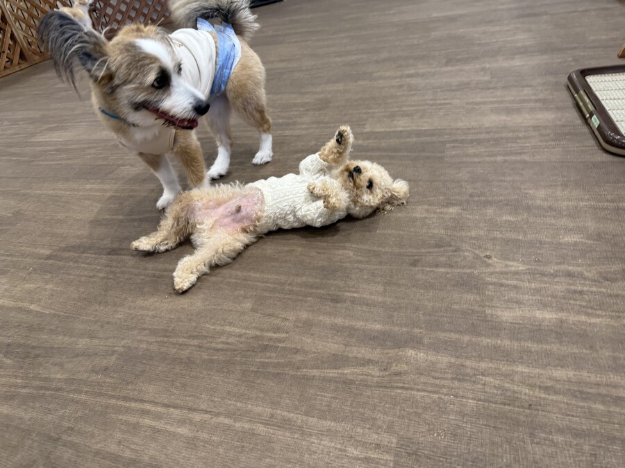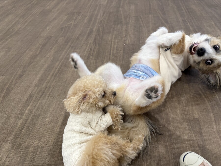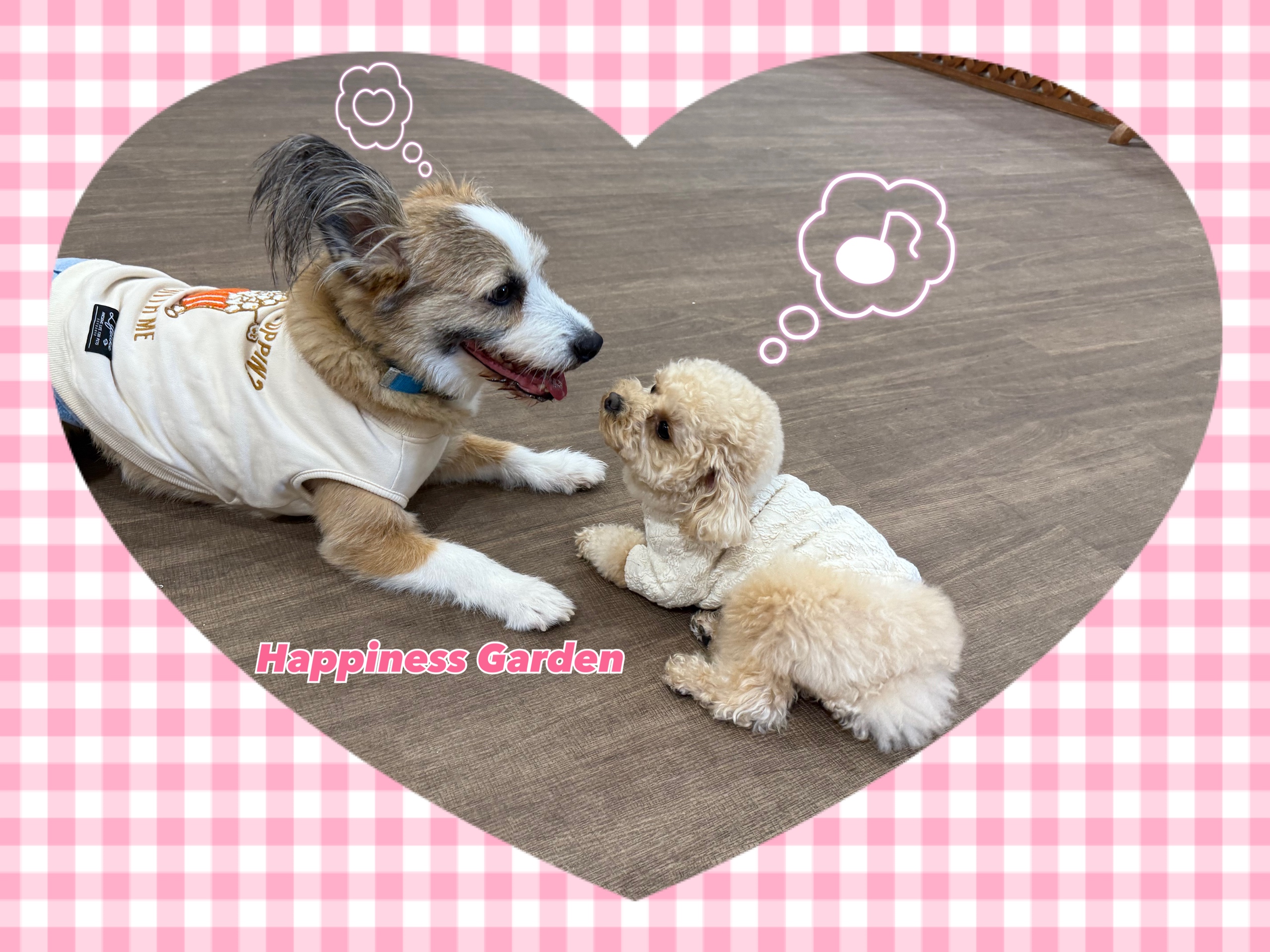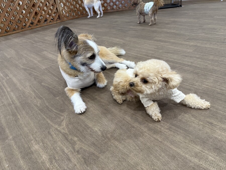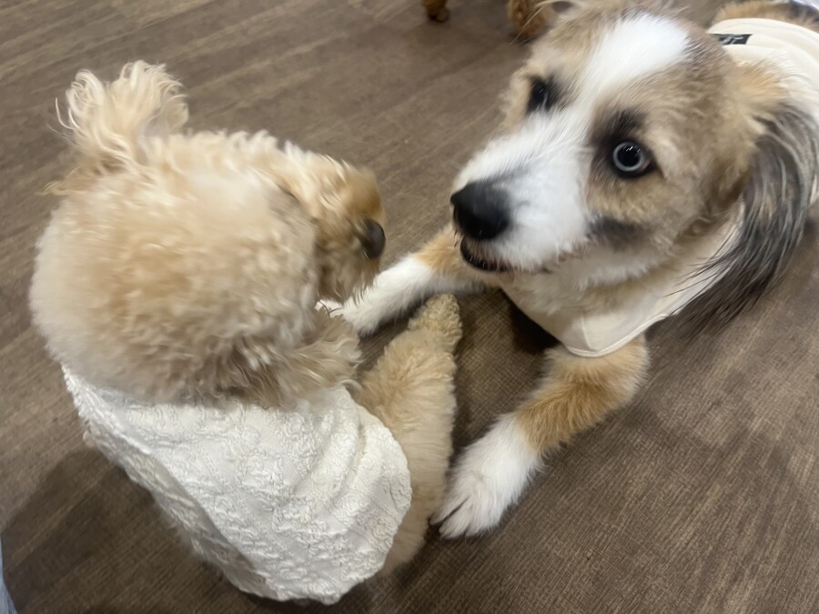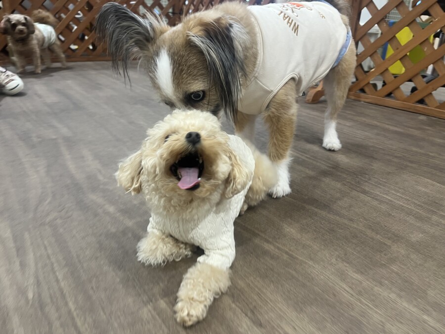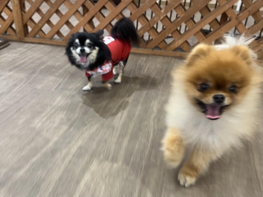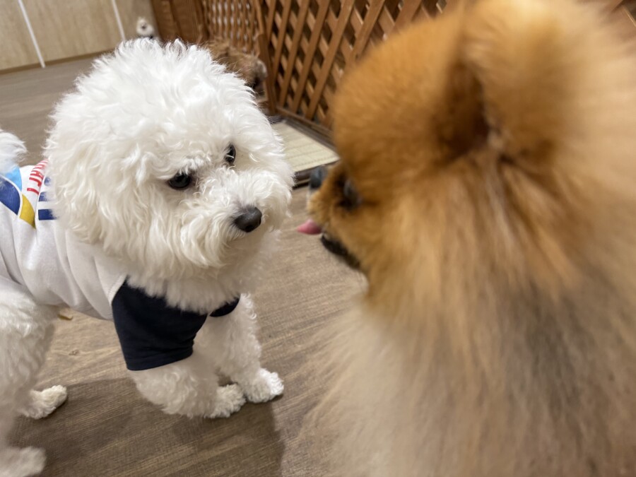 また別のところではチワワ×トイプードルのお友達がポメラニアンのお友達に夢中で、