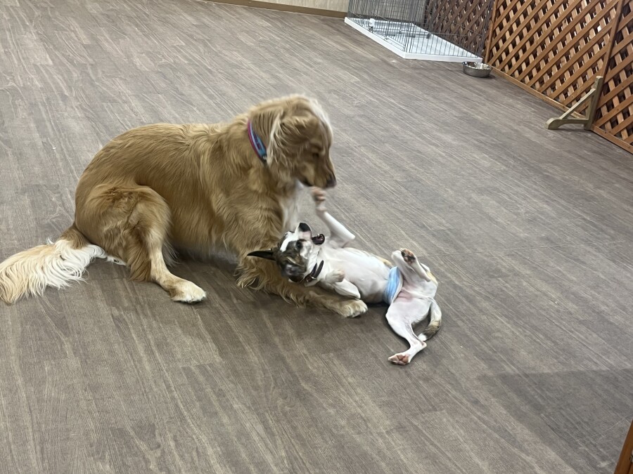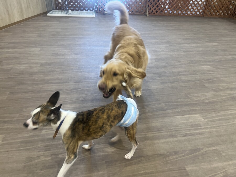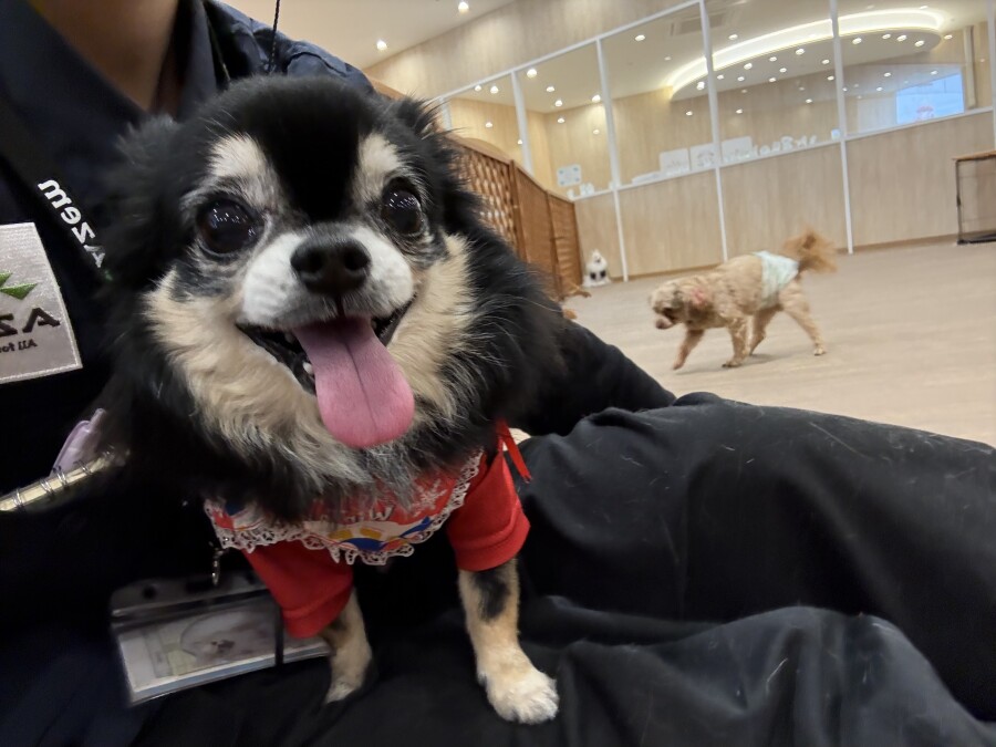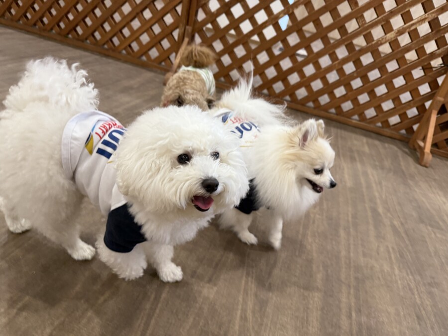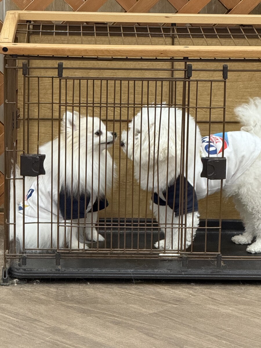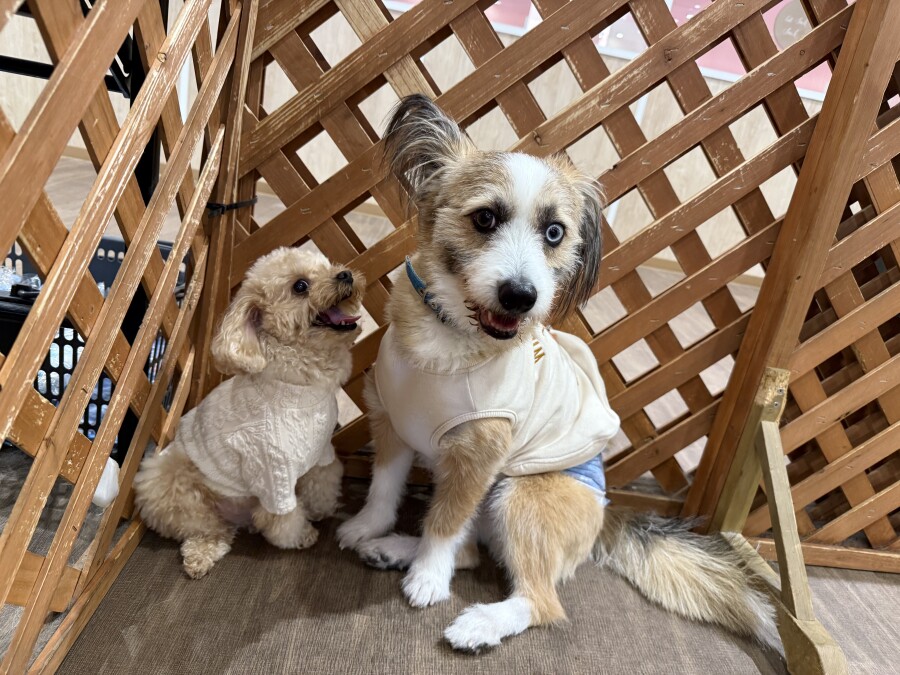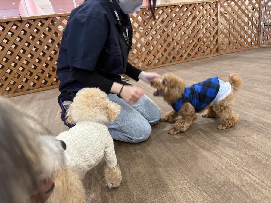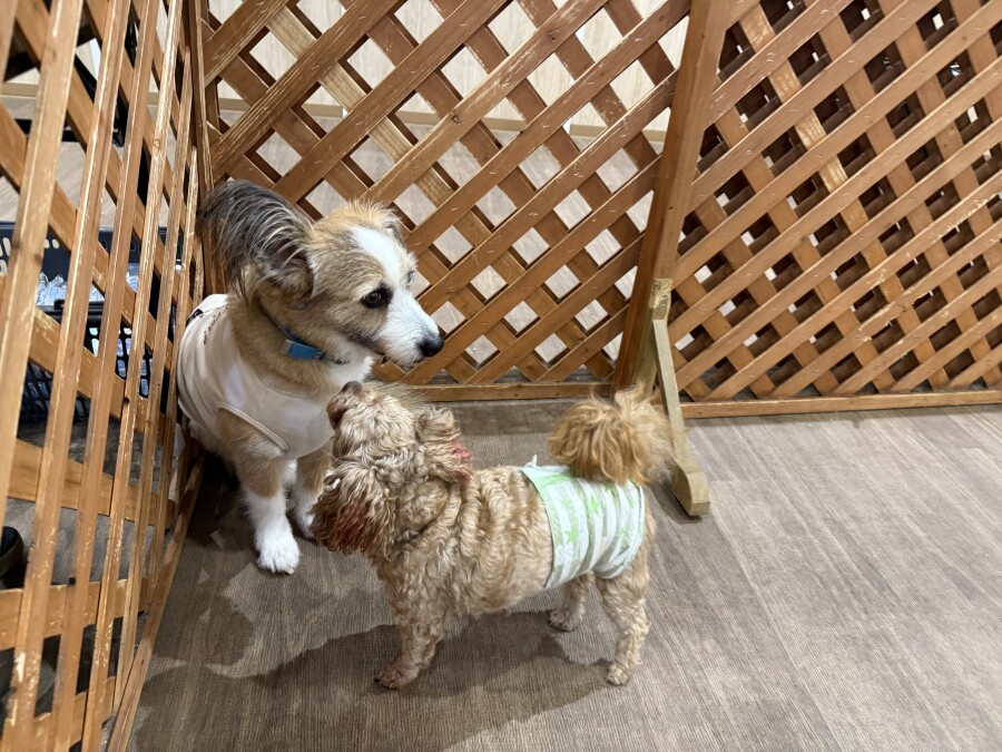 また別のところではチワワ×トイプードルのお友達がポメラニアンのお友達に夢中で、