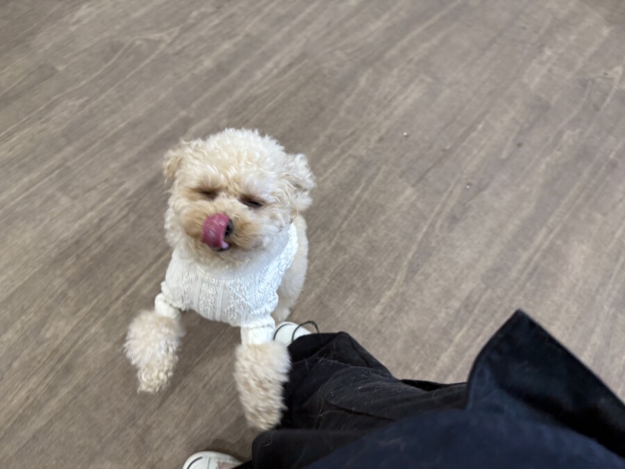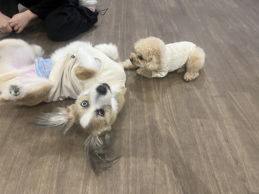 シーズー×コーギーのお友達はあるトイプードルのお友達のことがすごく気になったようで、