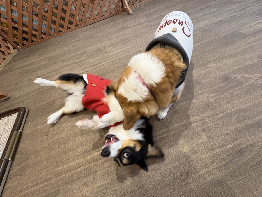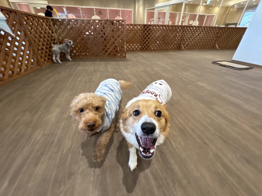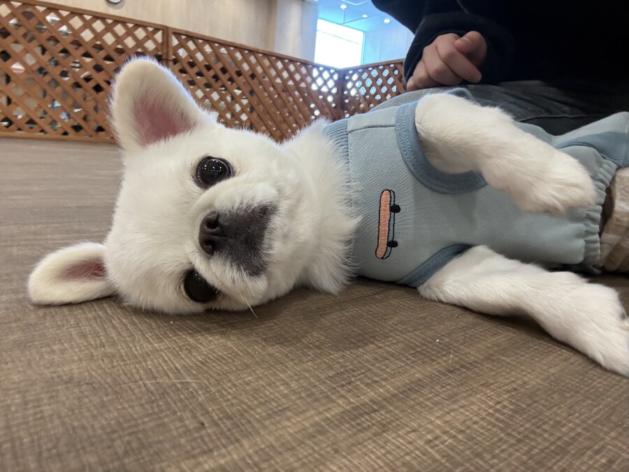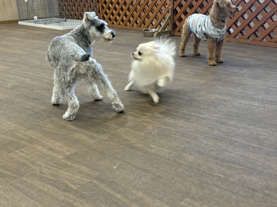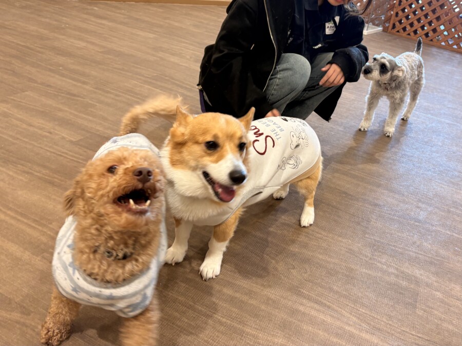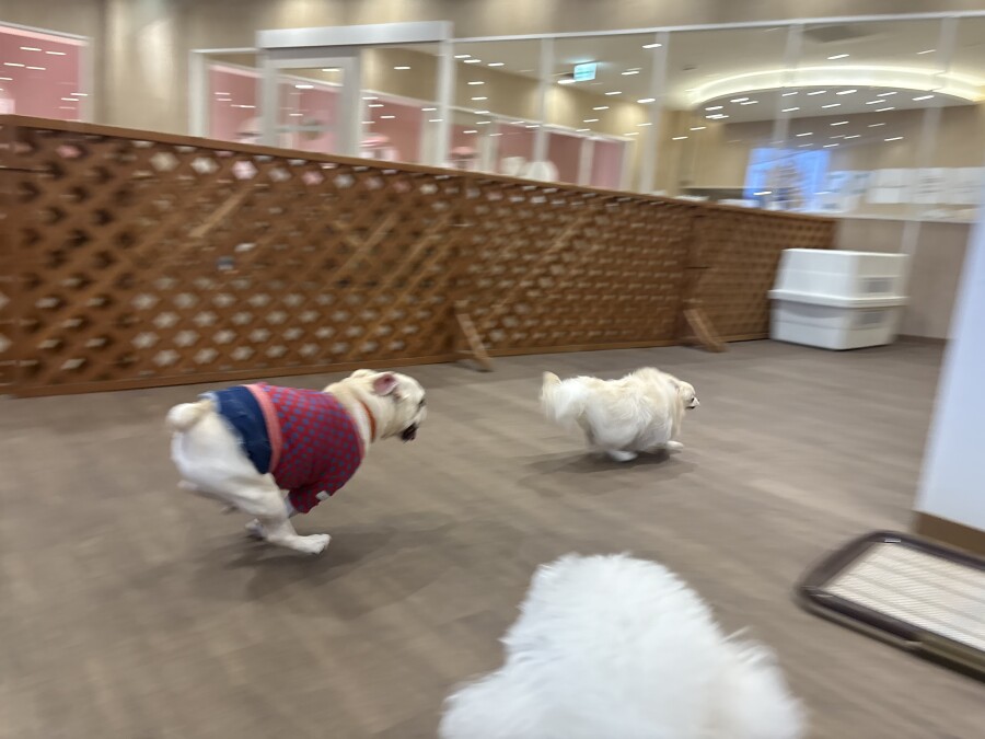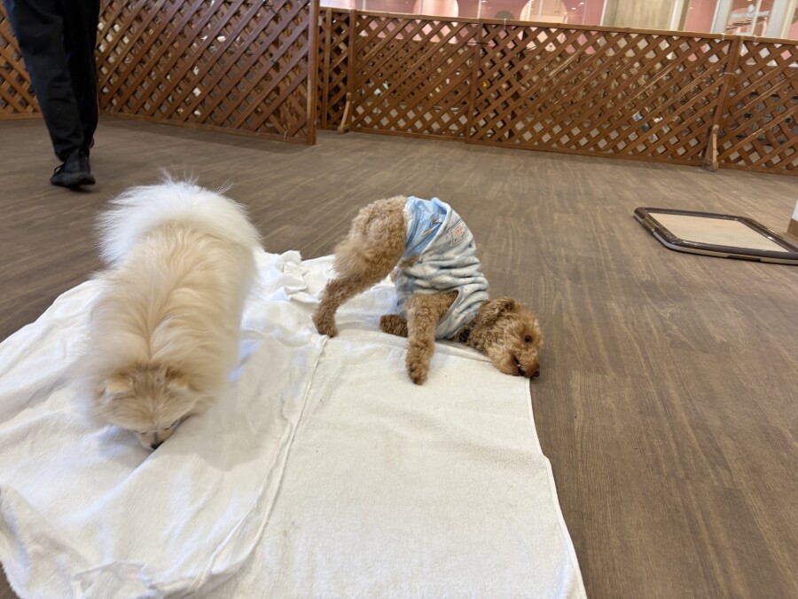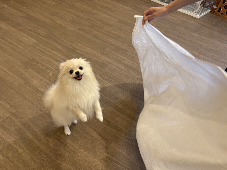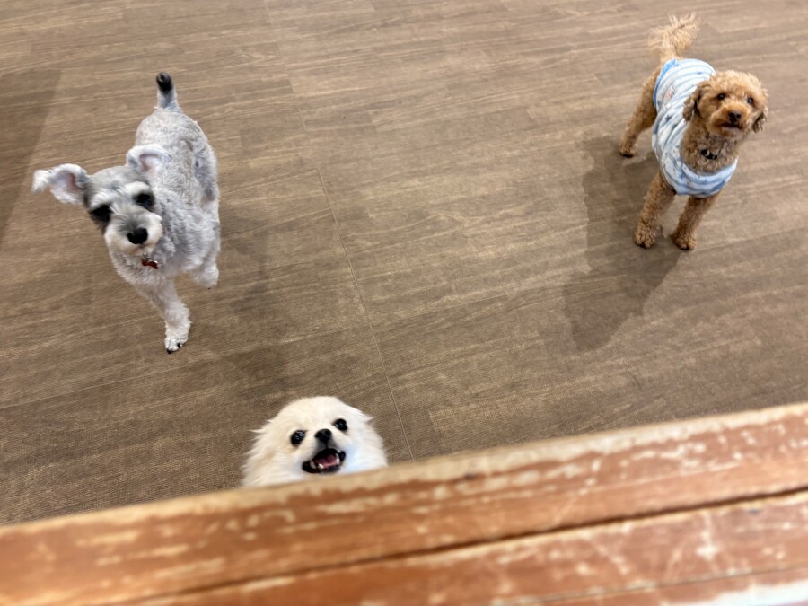 今週のお勉強は室内で雪に触れてみます!みんな室内に雪があると雪と認識しないのかパクパク食べたり近づかなかったりと反応は様々です!