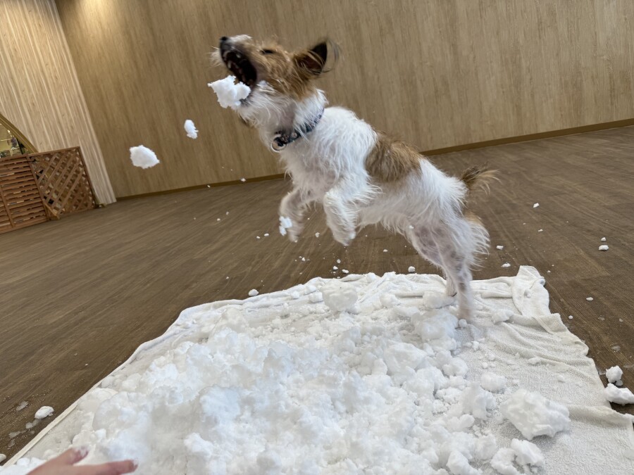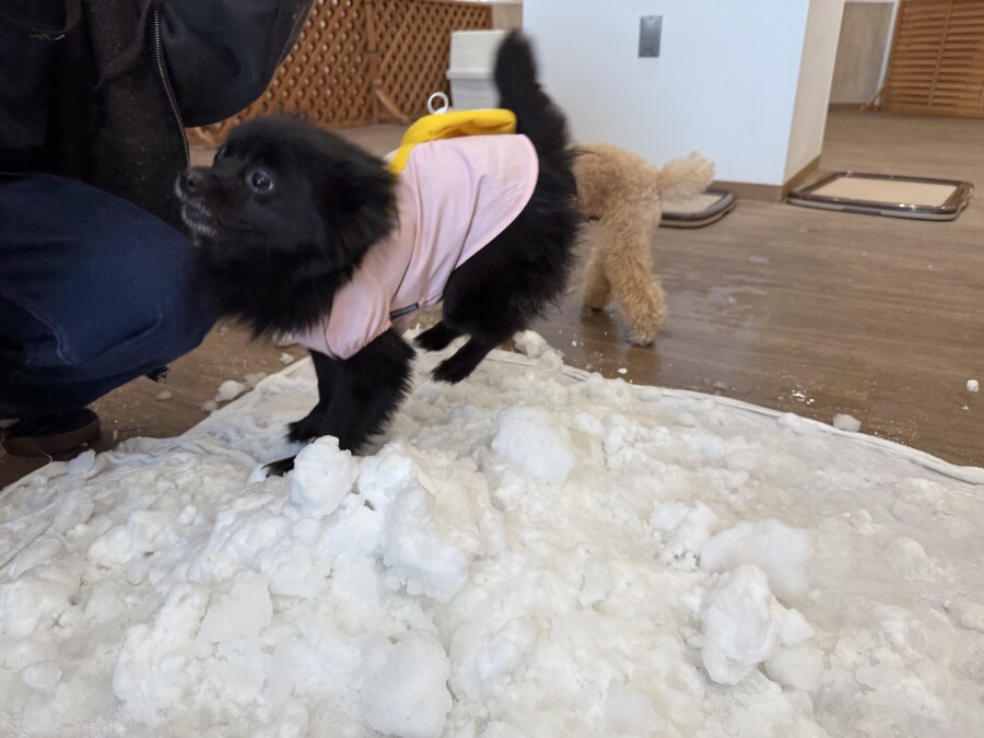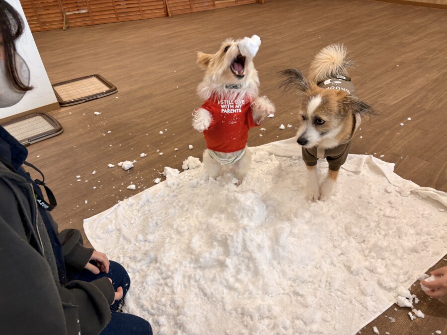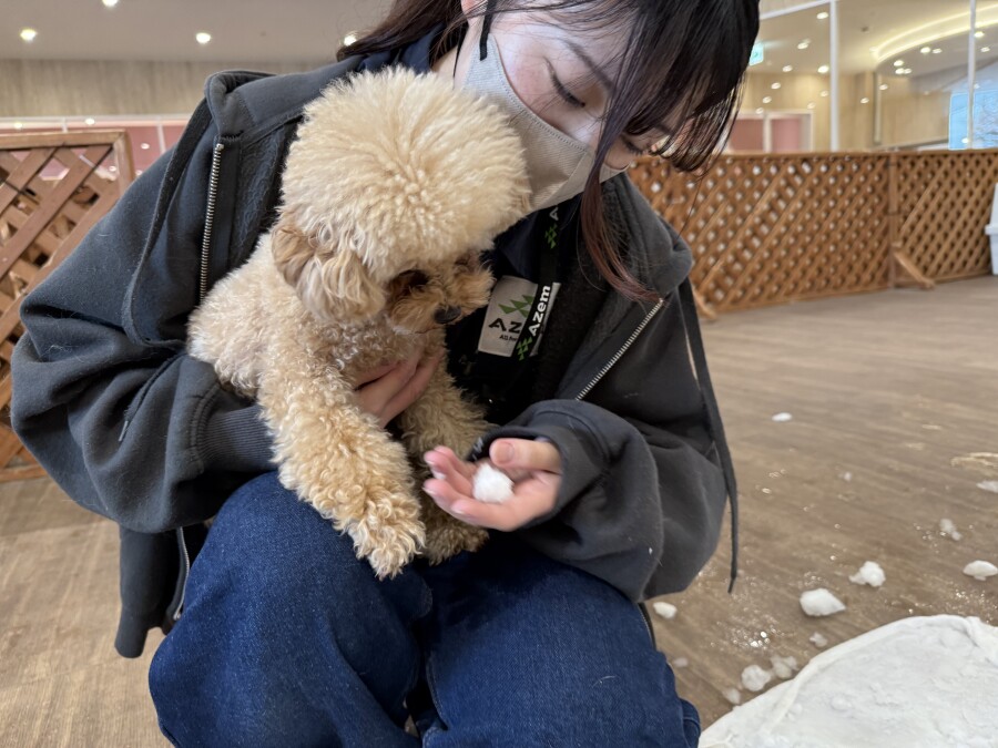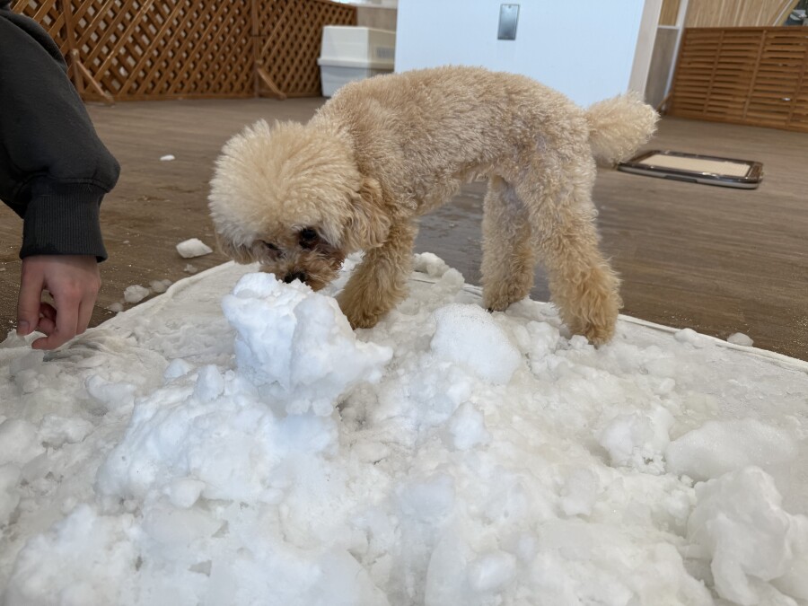 雪に思いっきりダイブしたり、すりすりしたり、雪を食べたり反応は様々で面白いです!