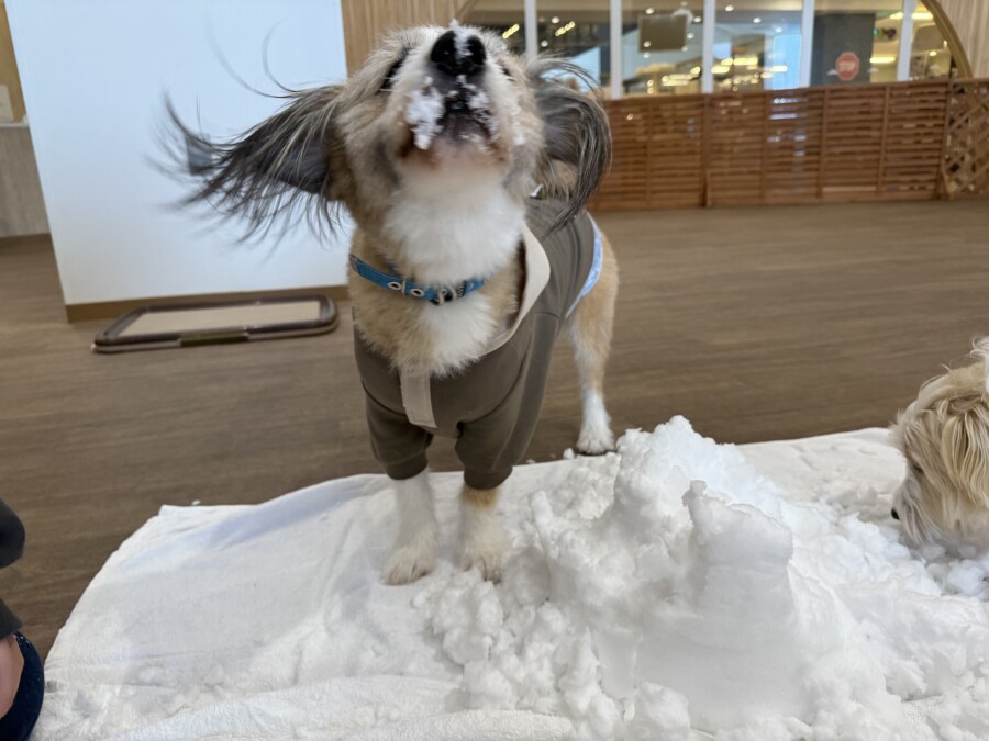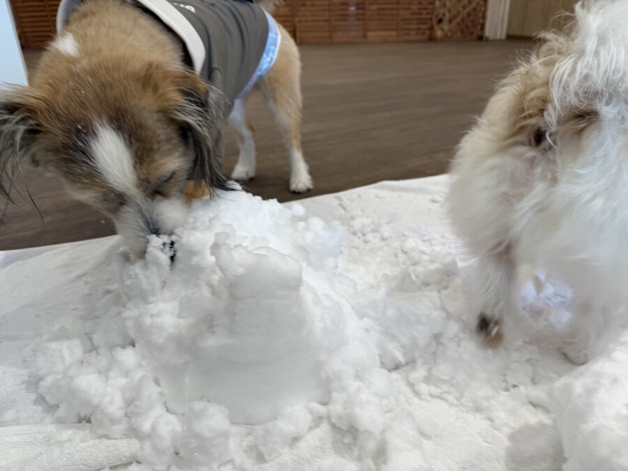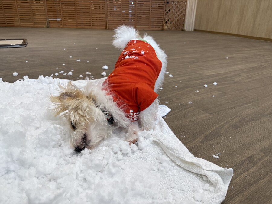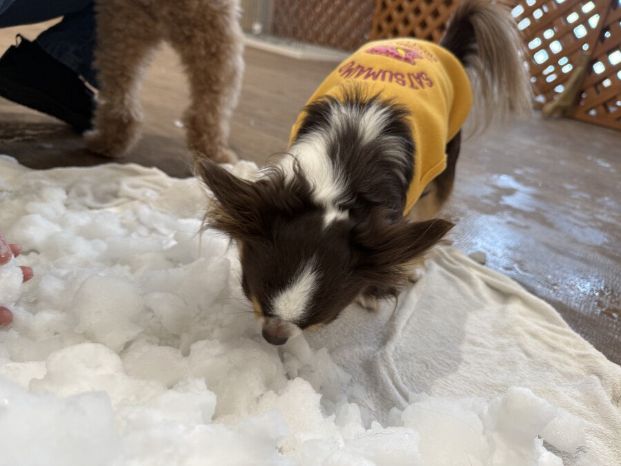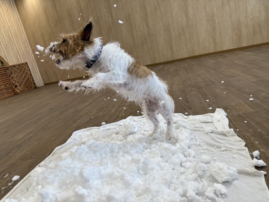 雪に思いっきりダイブしたり、すりすりしたり、雪を食べたり反応は様々で面白いです!