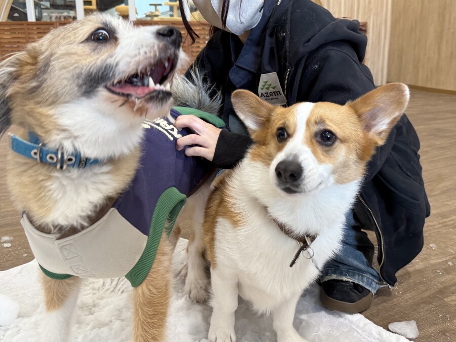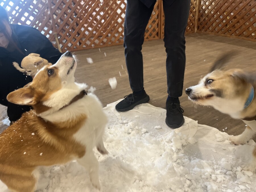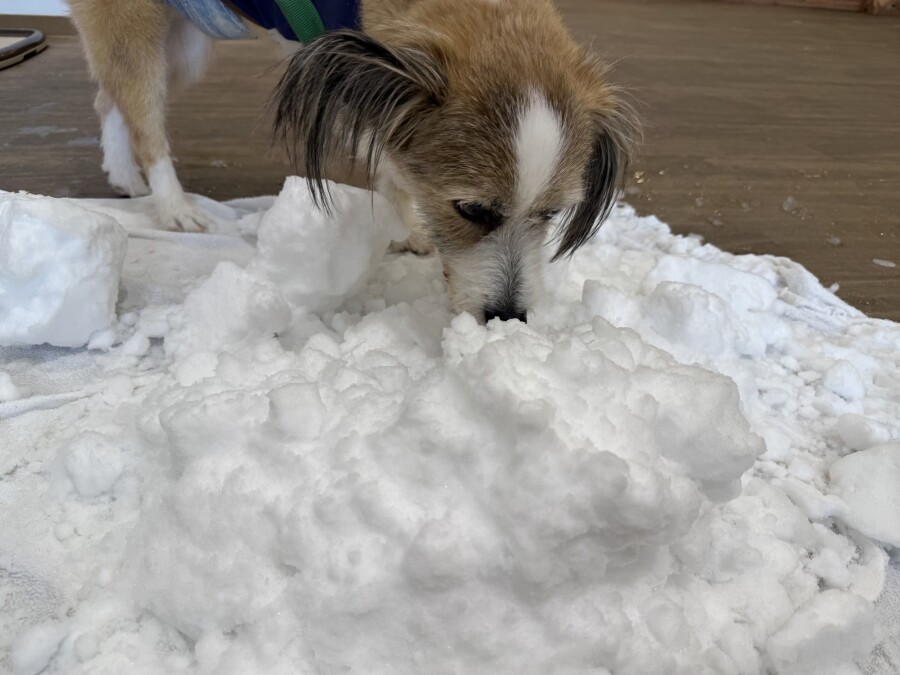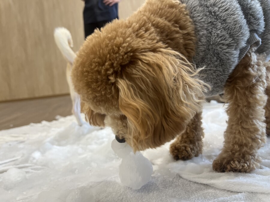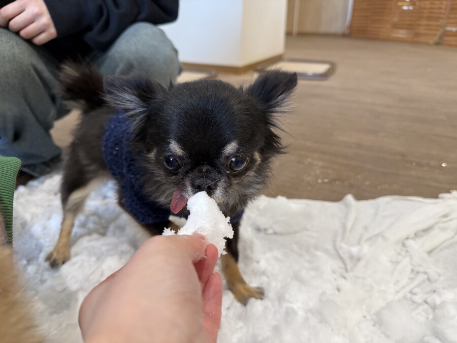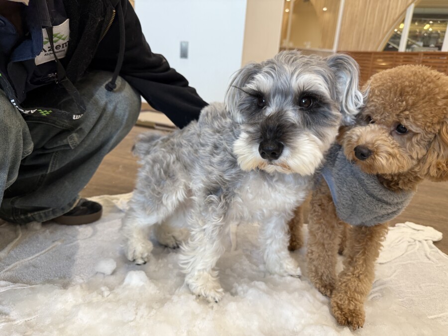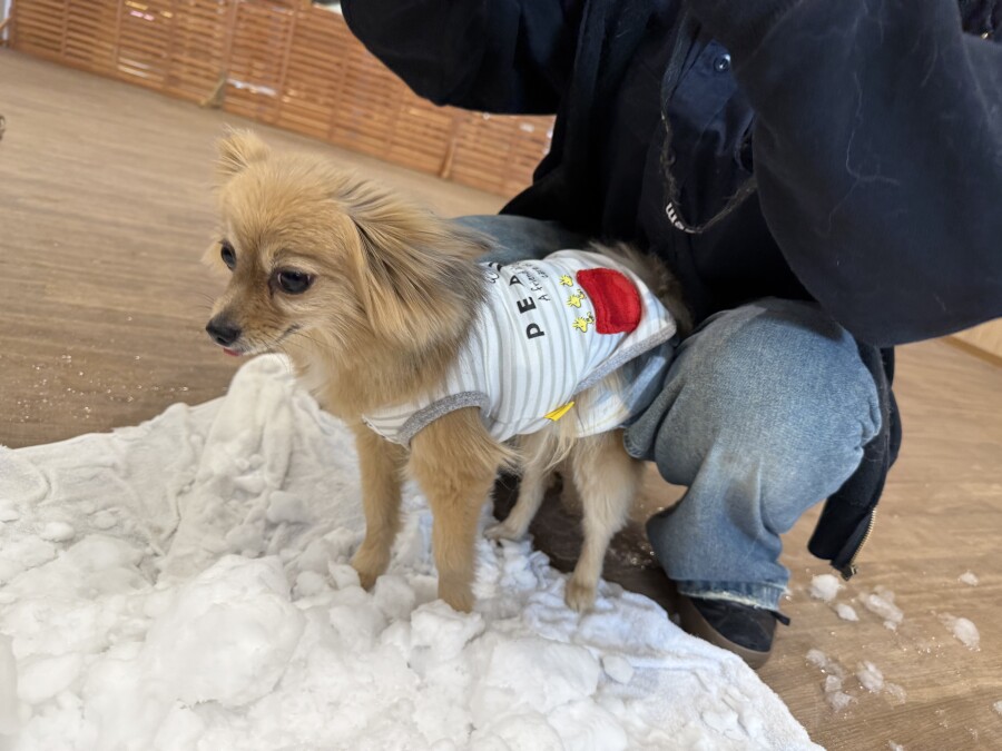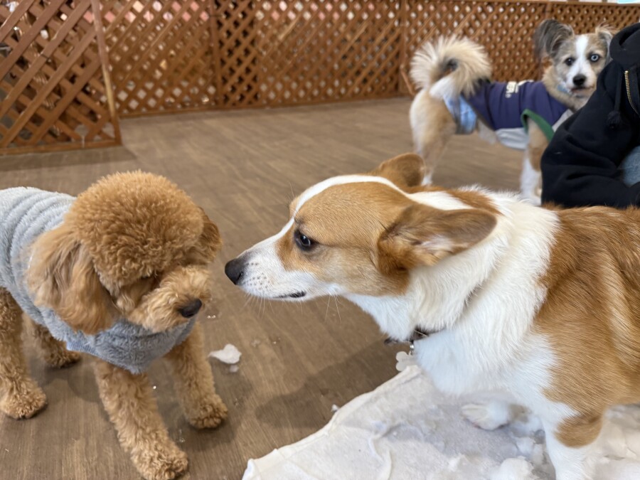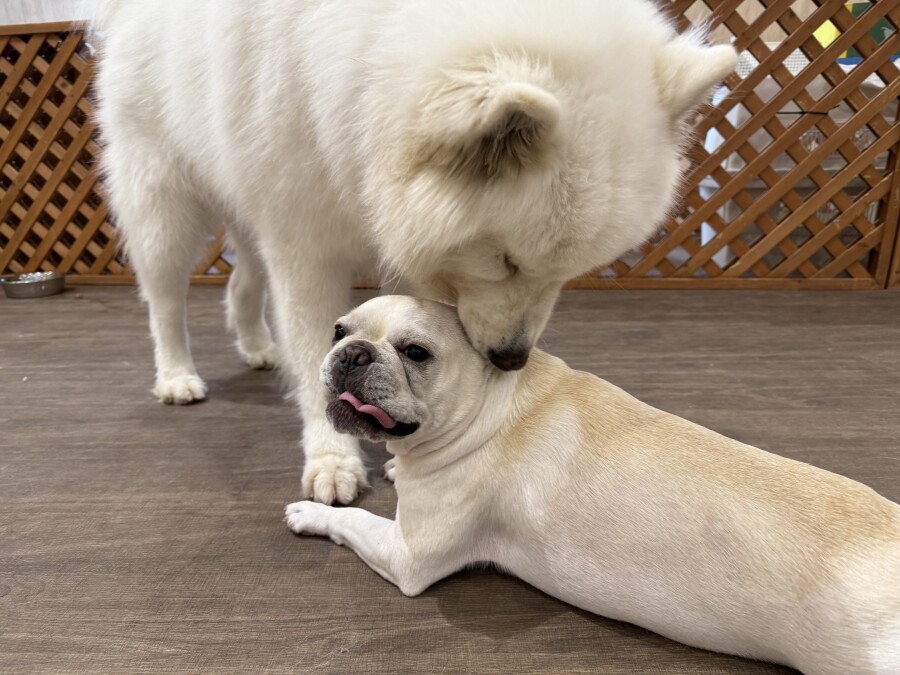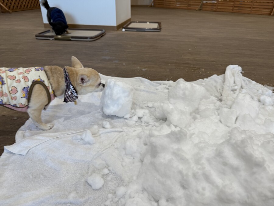 後半は雪の上でもお構いなしで遊び始めるフレンチブルドッグのキラくんとサモエドのゴン太くん∑(゚Д゚)