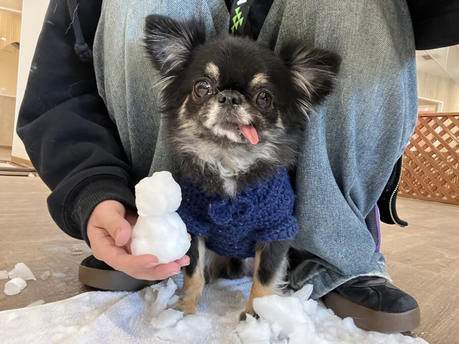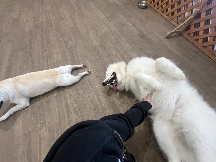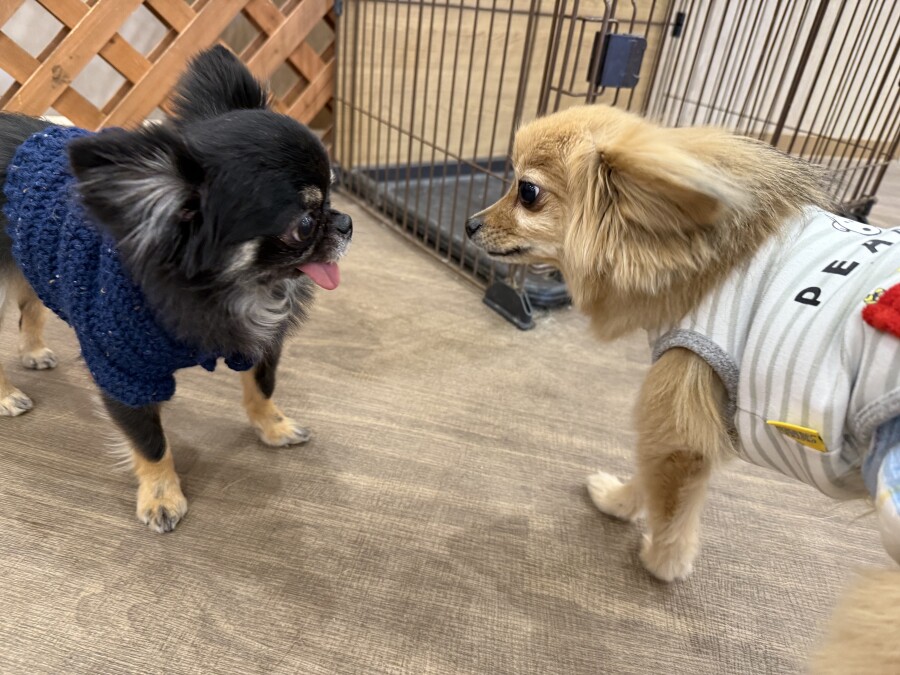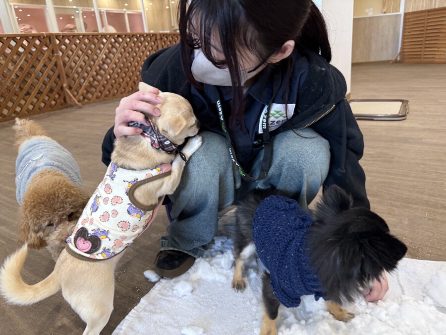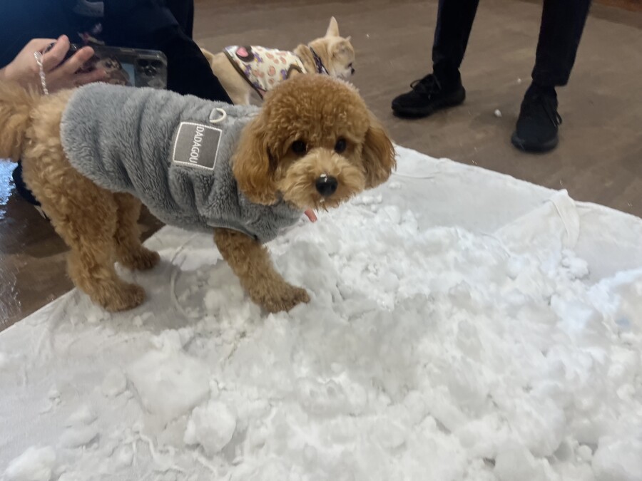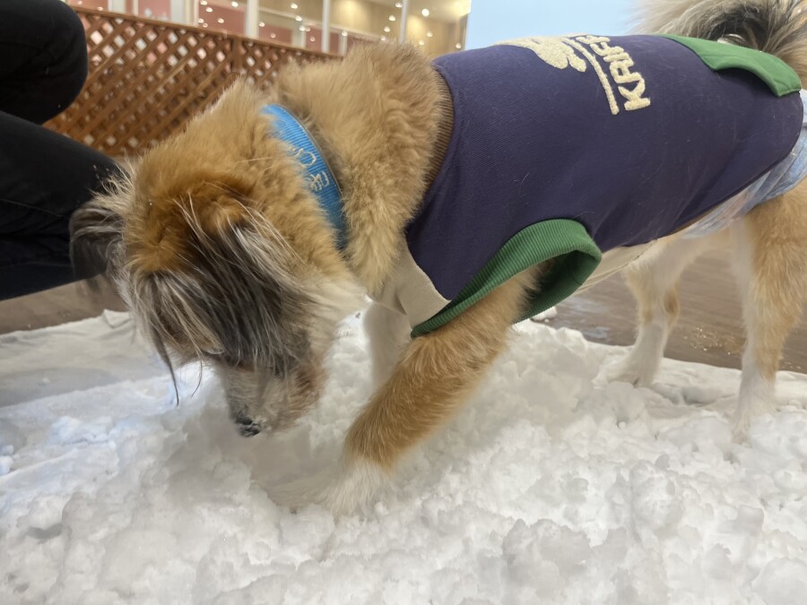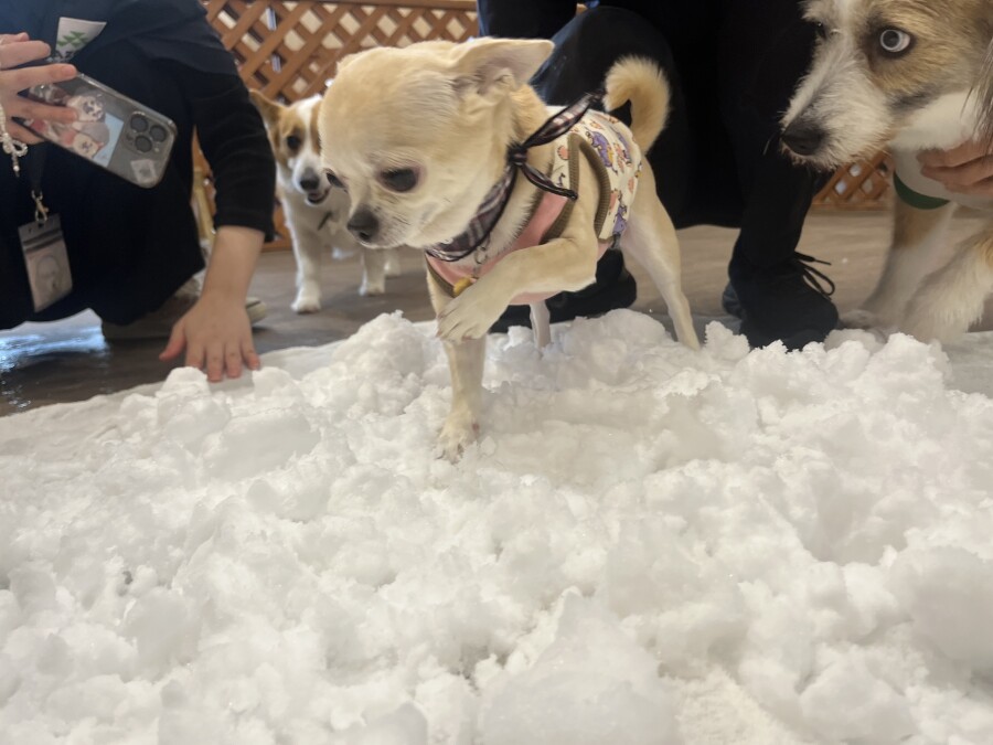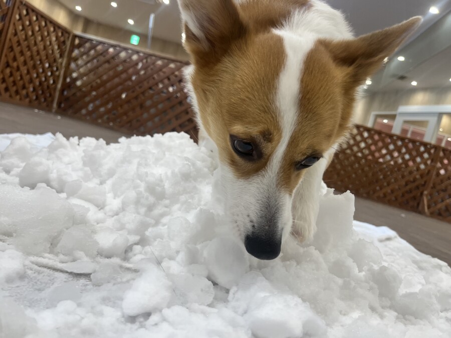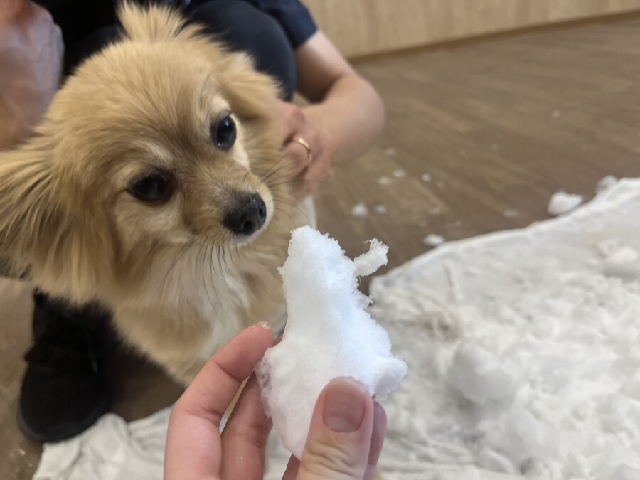 後半は雪の上でもお構いなしで遊び始めるフレンチブルドッグのキラくんとサモエドのゴン太くん∑(゚Д゚)