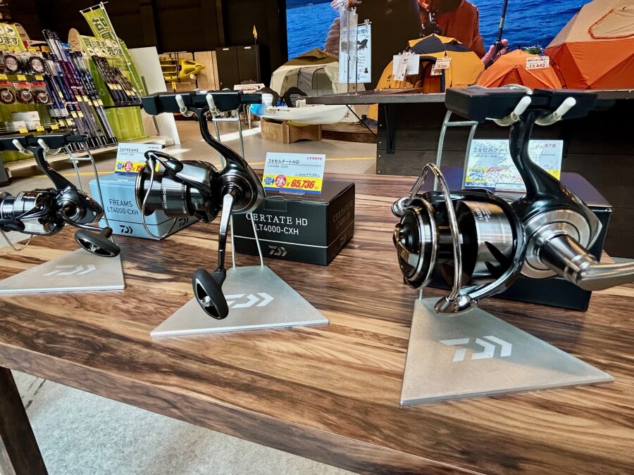 そして!発売前のダイワ新製品を中二階にて展示中!実際に見て、触っていただけます!!