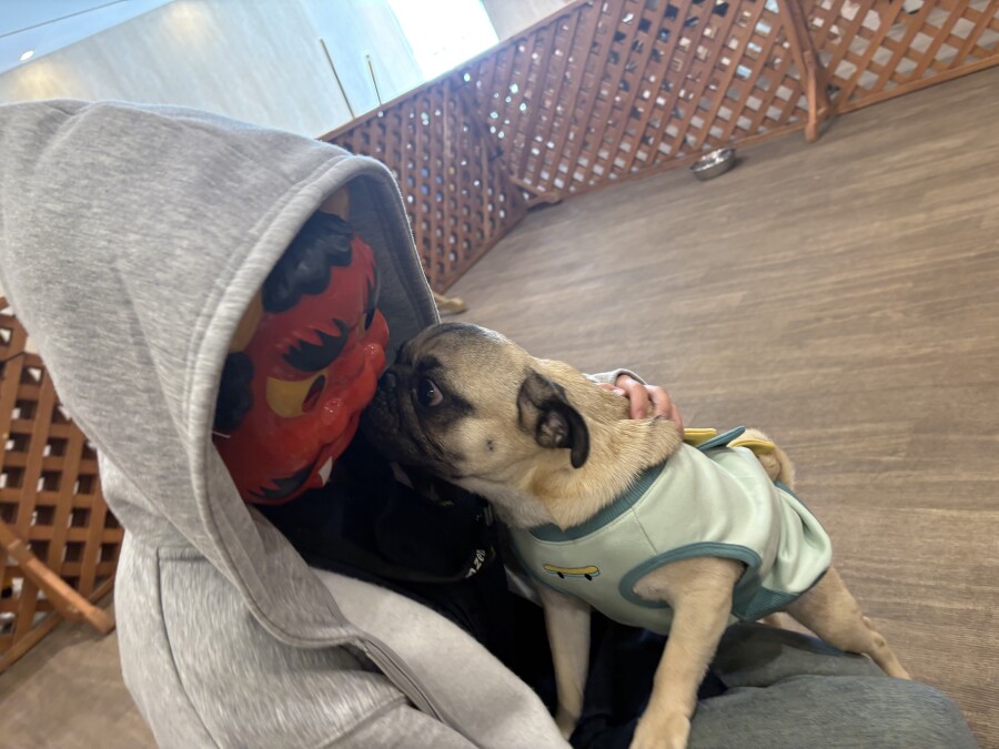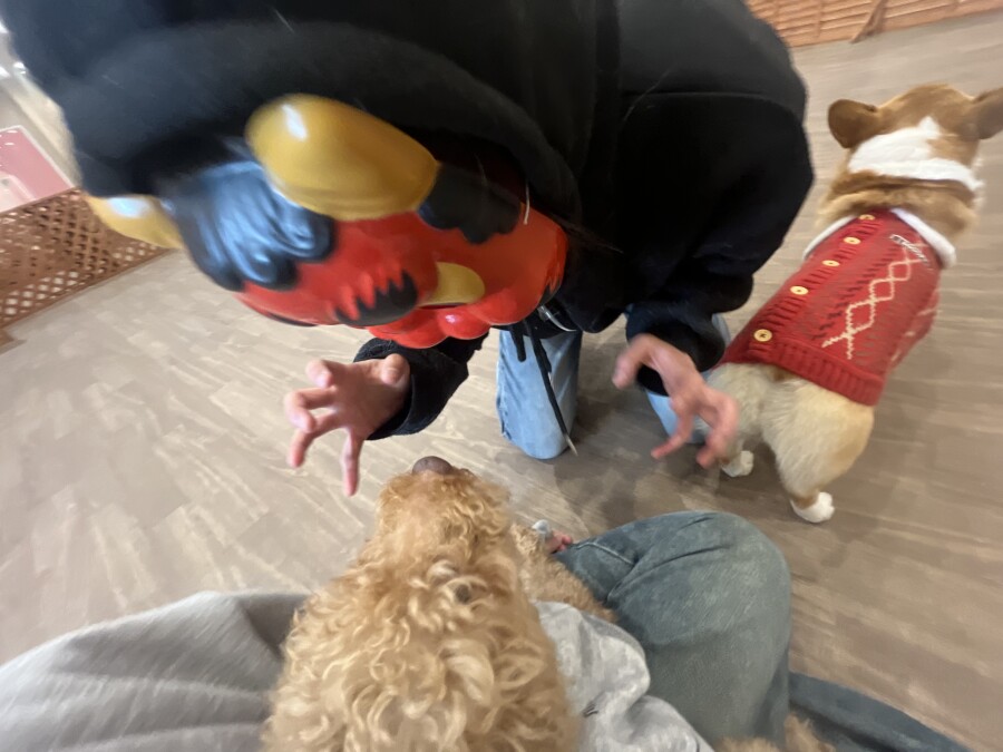 なんだなんだ?!と怖がる様子のお友達や、声や匂いで先生たちだと気付いて逆にテンションが上がってしまう
