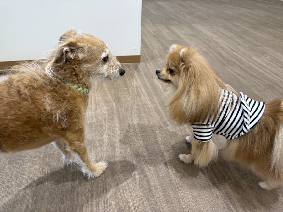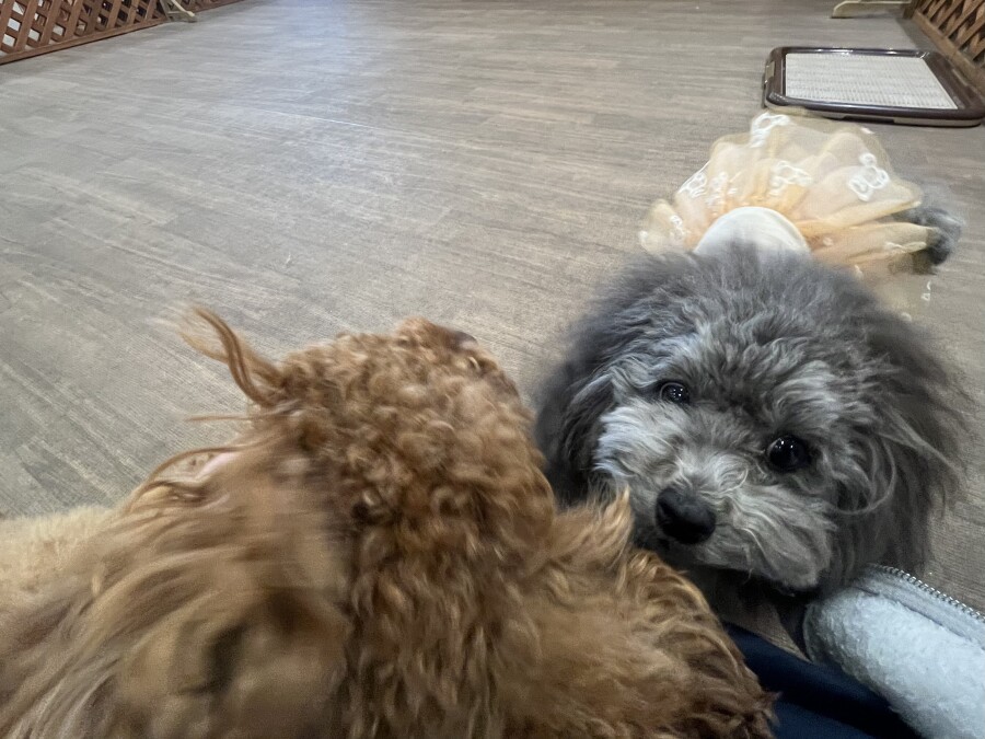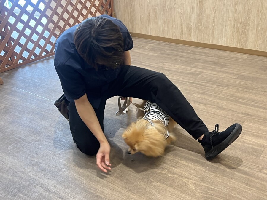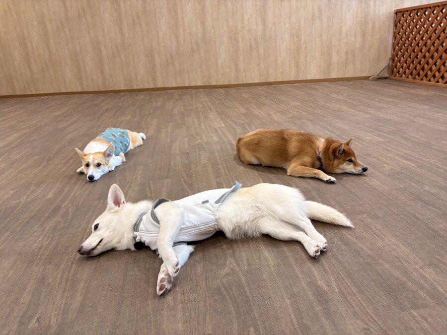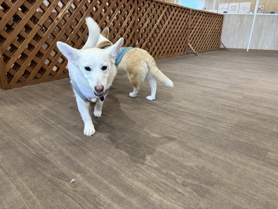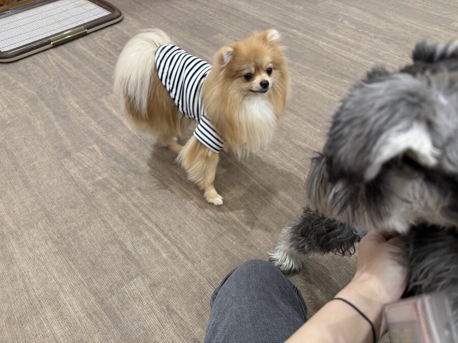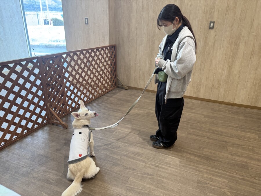 練習中のお友達も目を合わせて一生懸命頑張ってくれ、上手にオスワリやマテができました٩( 'ω' )و