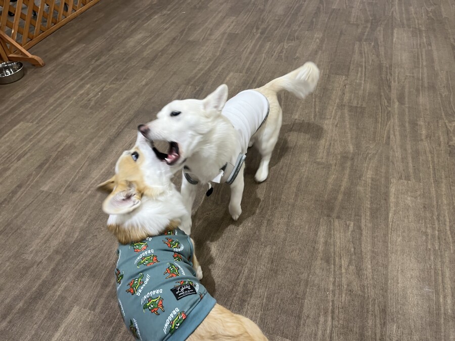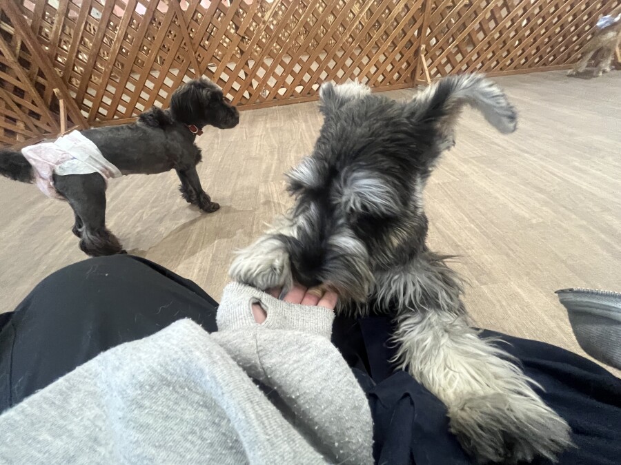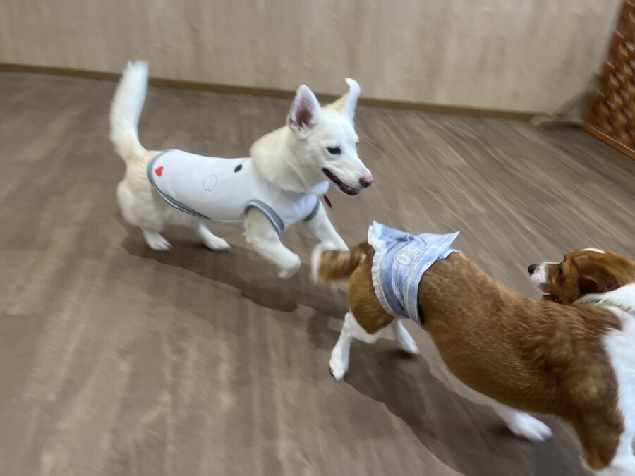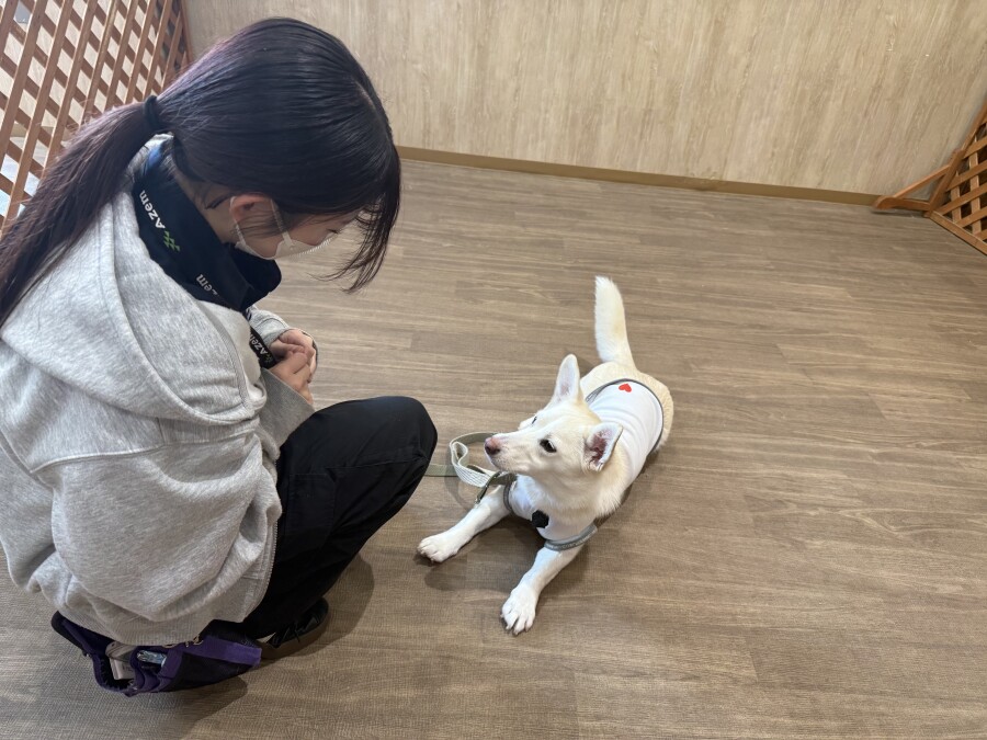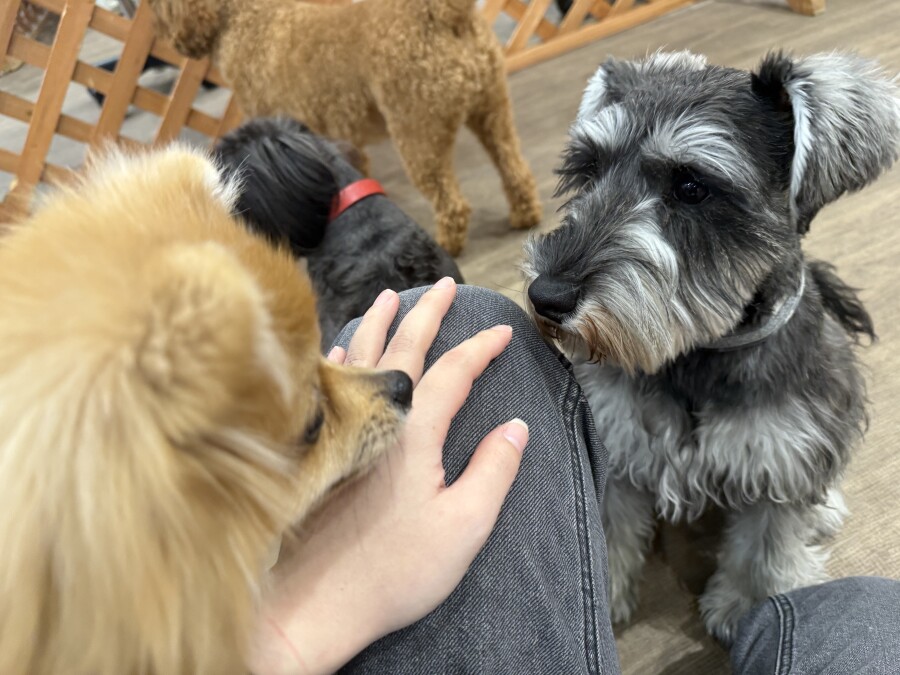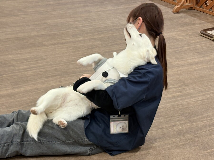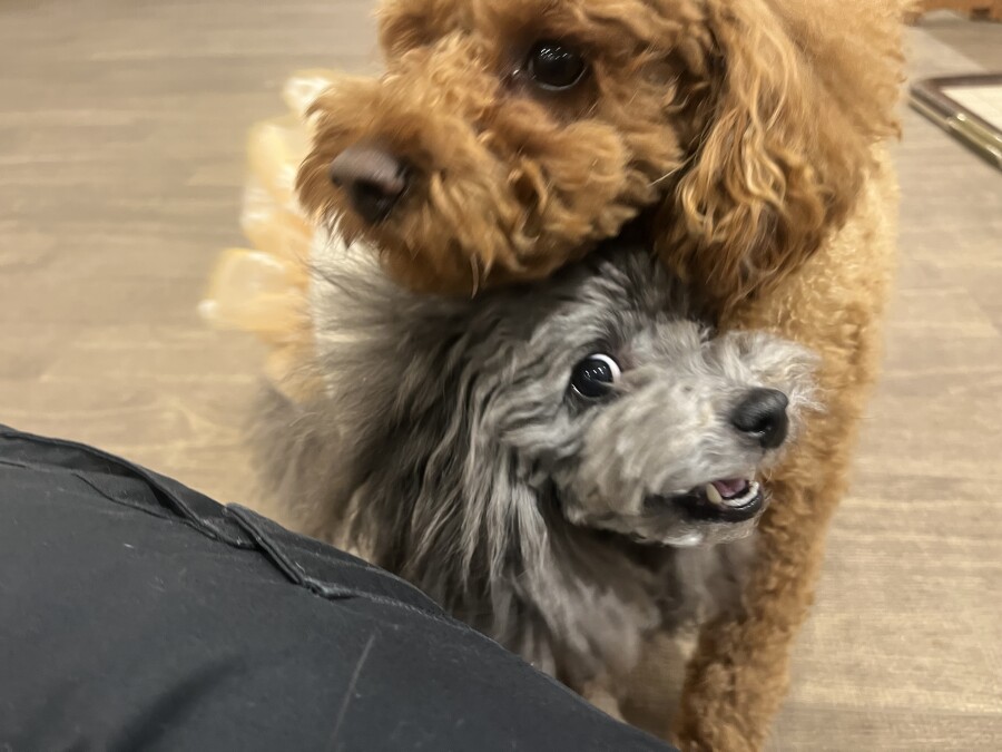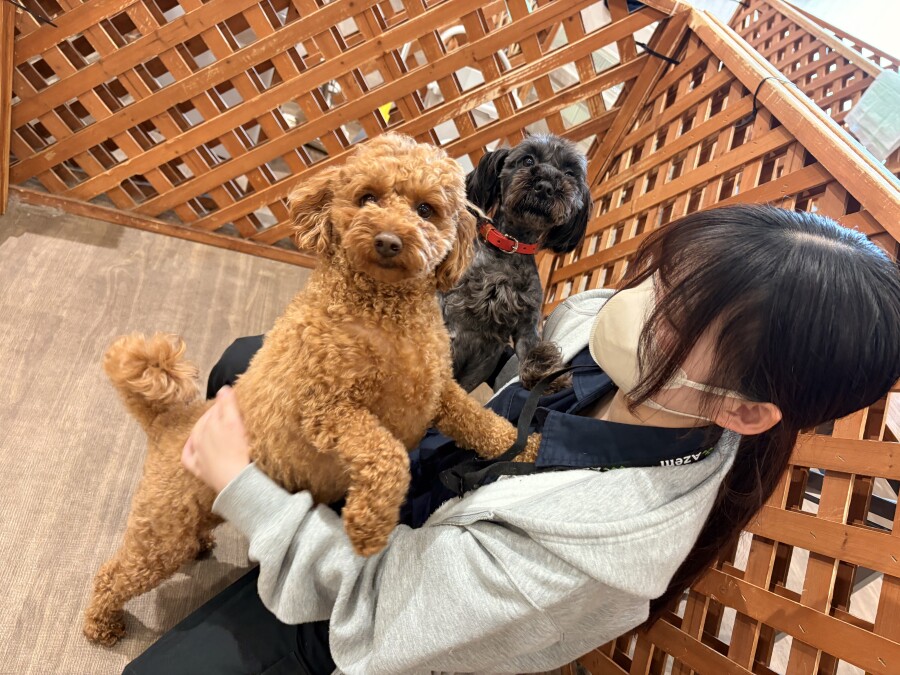 練習中のお友達も目を合わせて一生懸命頑張ってくれ、上手にオスワリやマテができました٩( 'ω' )و