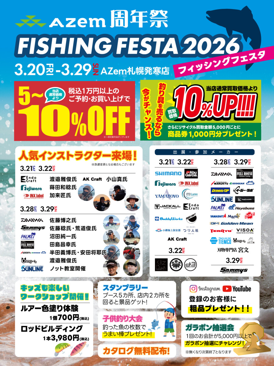 そして、各週末3/21(土)・22(日)、28(土)・29(日)はフィッシングフェスタ2026です!!