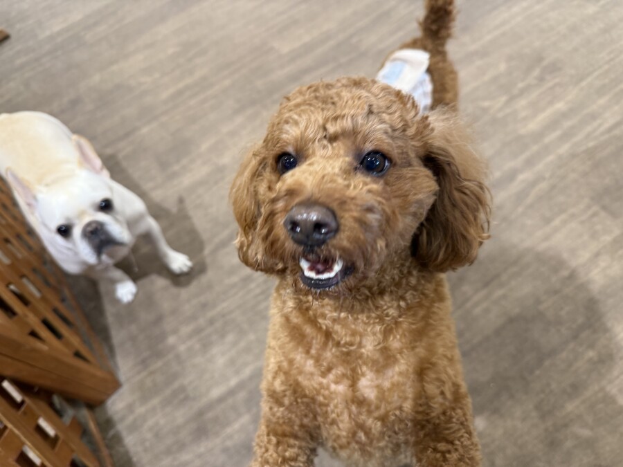 今日は途中から雨になってしまったのでお外組と店内組に分かれましたがしっかりアイコンタクトもとってばっちしです!