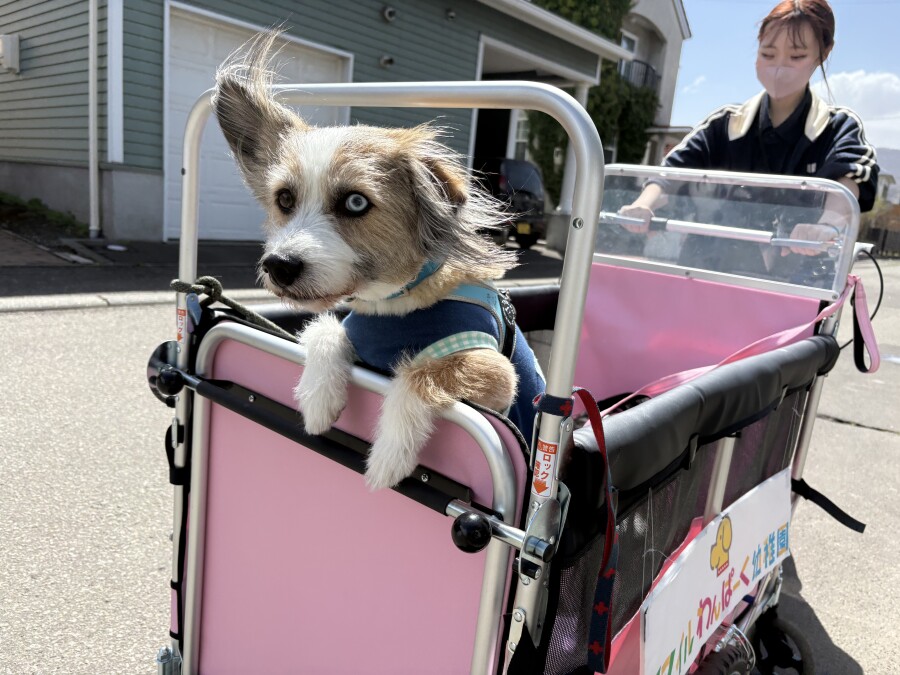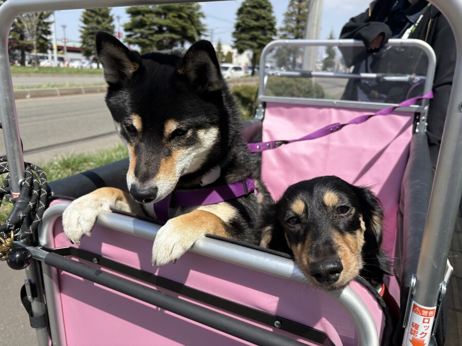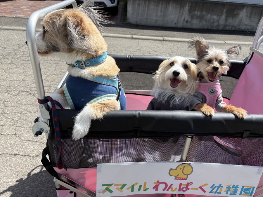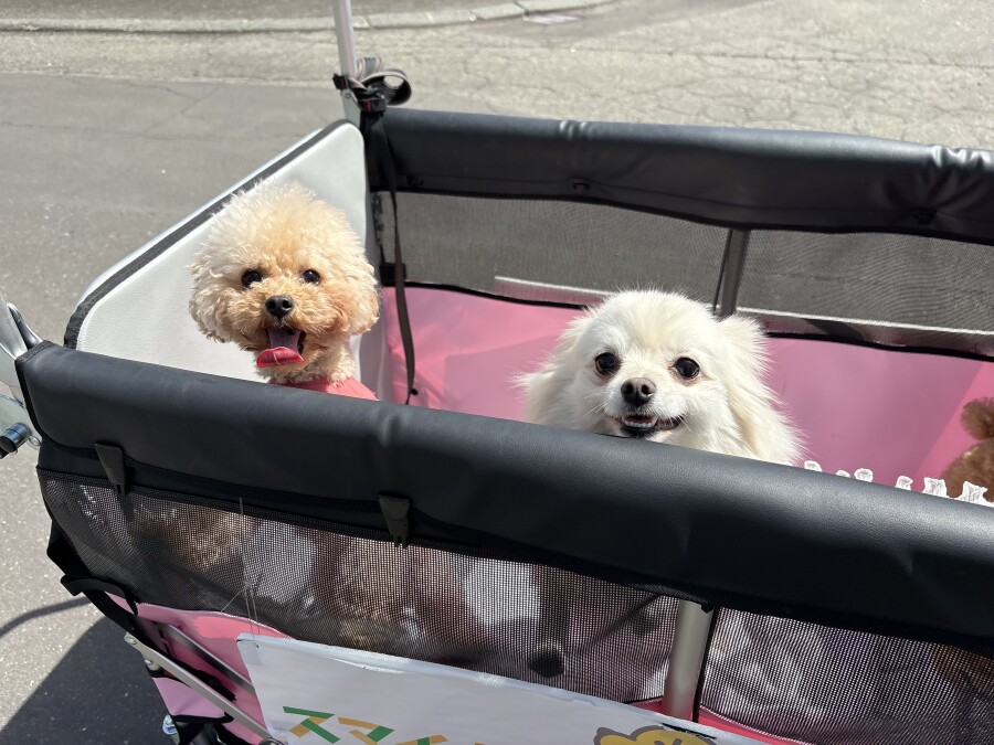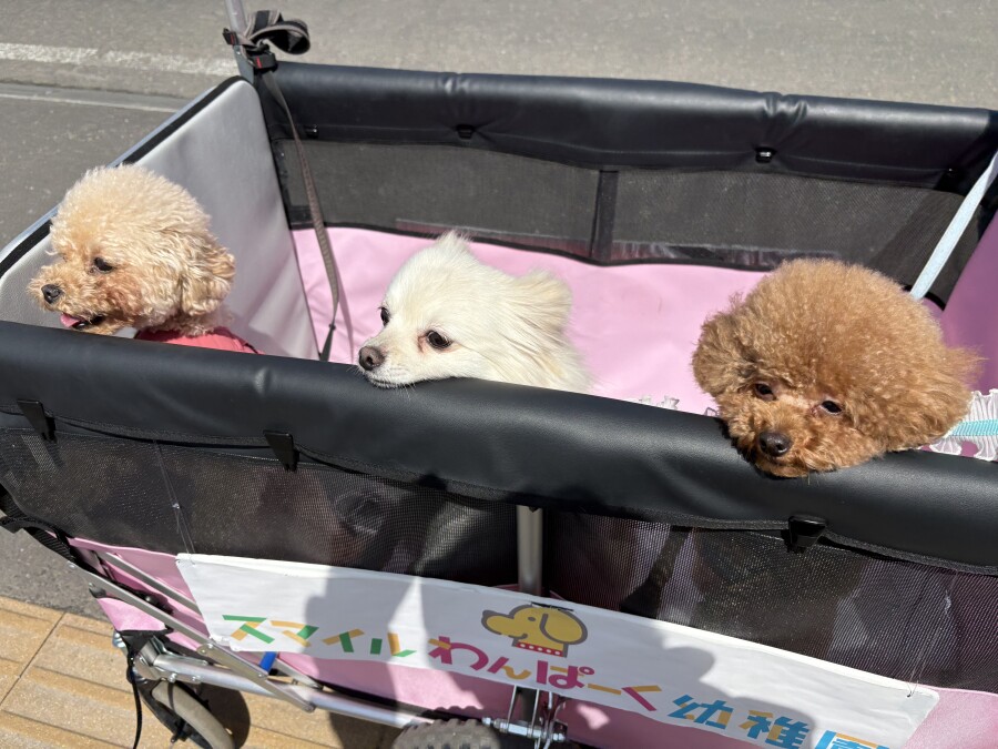 そんな中でも目をしぱしぱさせながら、カートから一生懸命お顔を出して外を眺める園児の姿が‥笑
