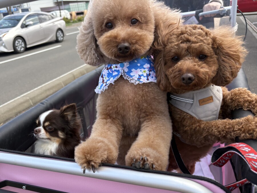 今日はかなり強風だったため近くを幼稚園カートでお散歩しました✨