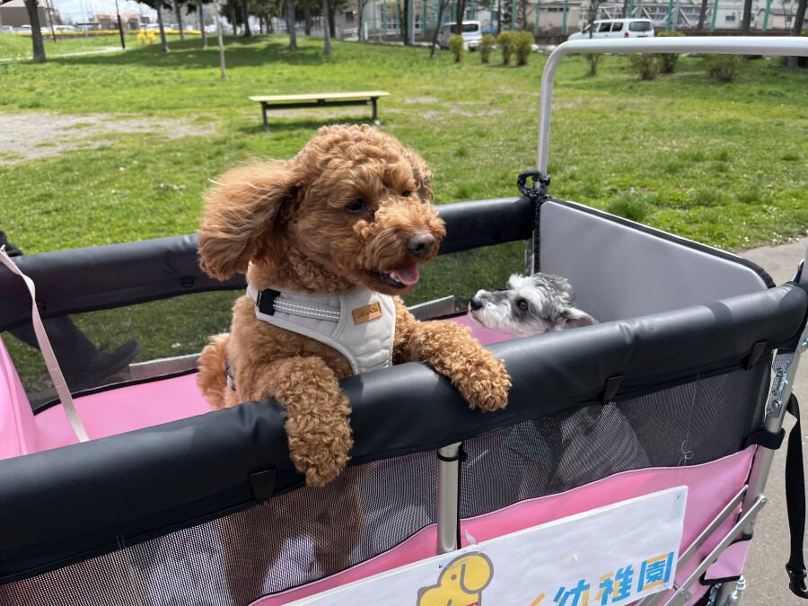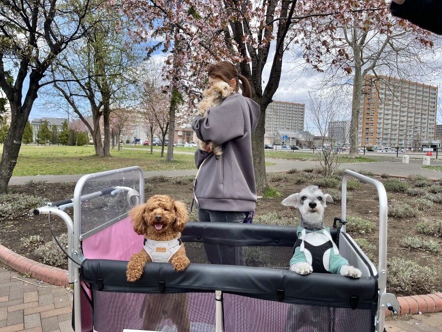 カートでも何かを訴えたかったのかたくさんおしゃべりしながらみんなで公園に向かいました♪