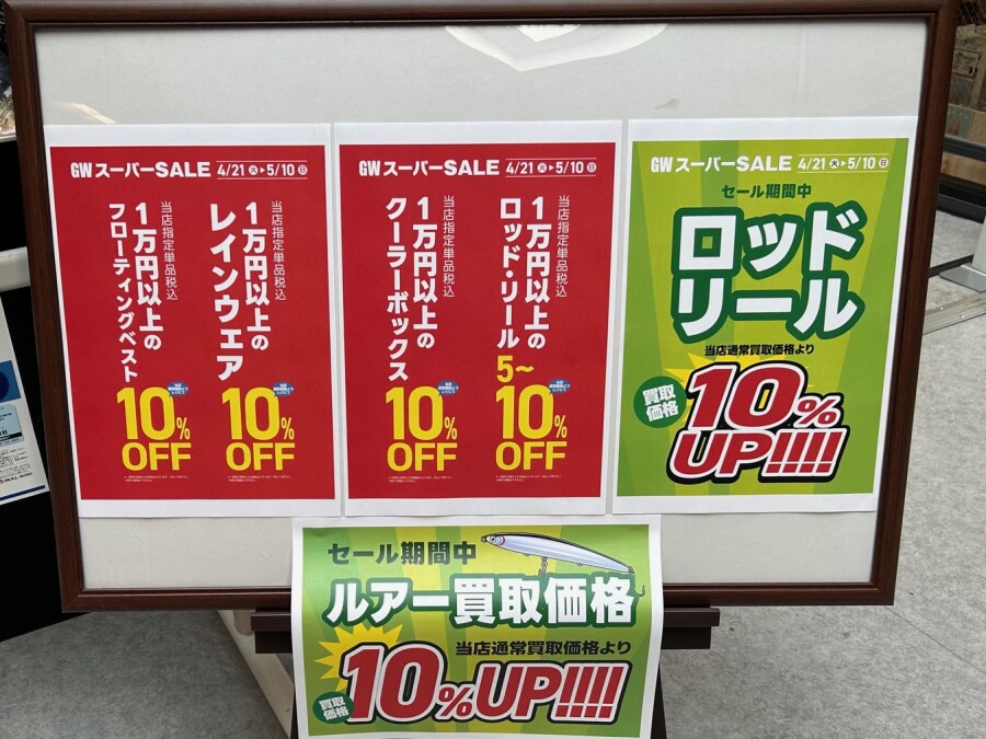 ・セール期間中 ロッド・リール・ルアーが当店通常買取価格より10%UP!!