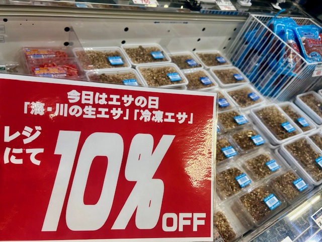 本日は【木曜はエサの日】です!生・冷凍エサが販売価格から10%OFF!!