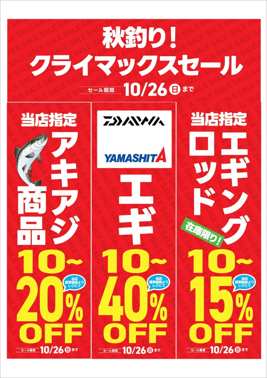 秋釣り!クライマックスセール』は10/26(日)まで!