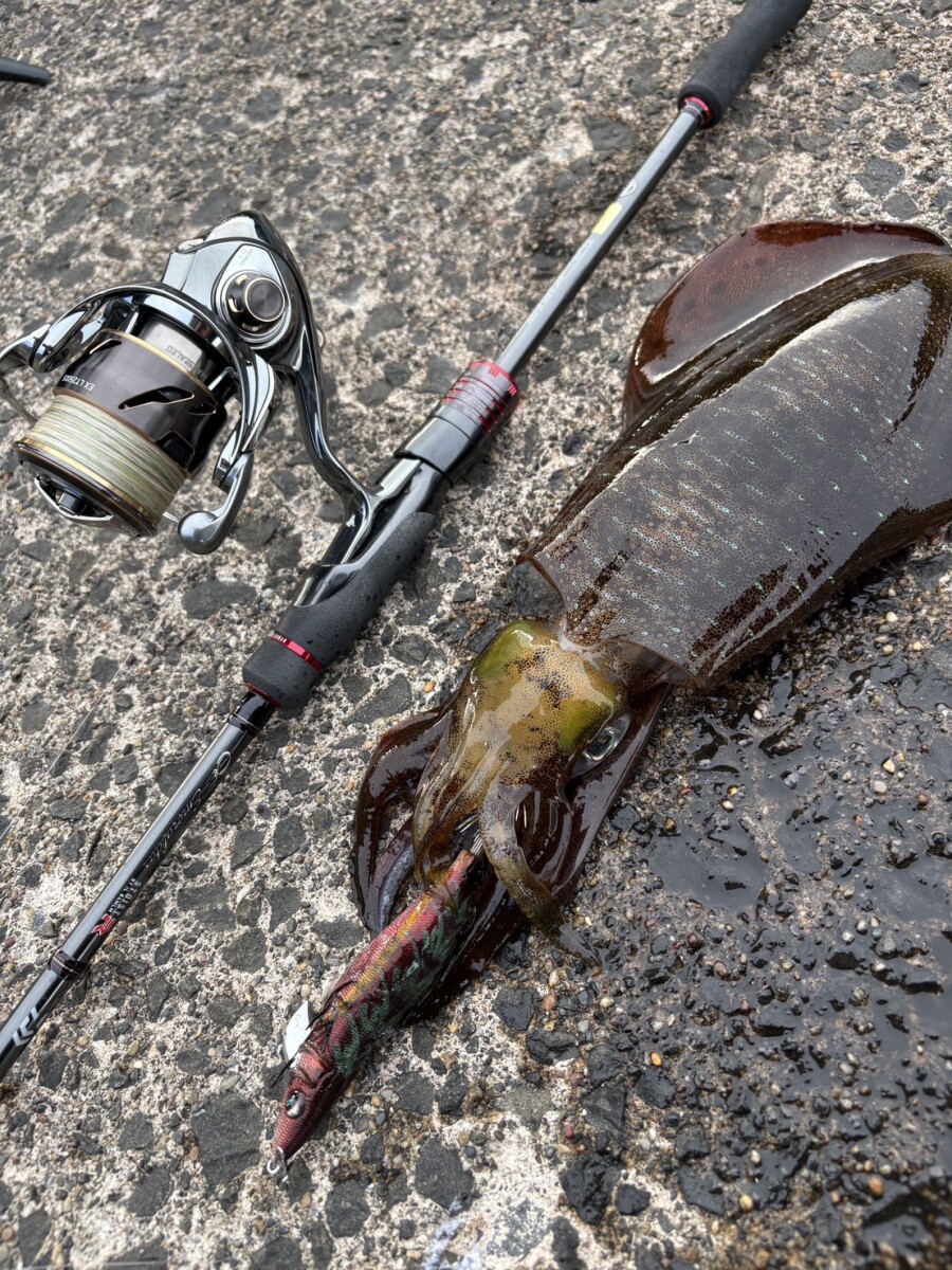 反射+透ける【ダイワ】EMシャインLC を遠投し、中層から表層まで探ってたら300gのいいサイズのアオリイカをGet!!!