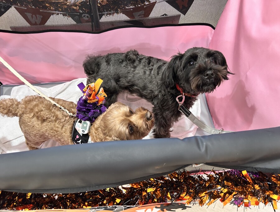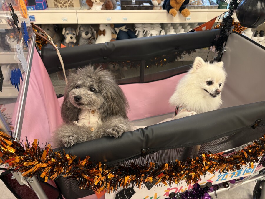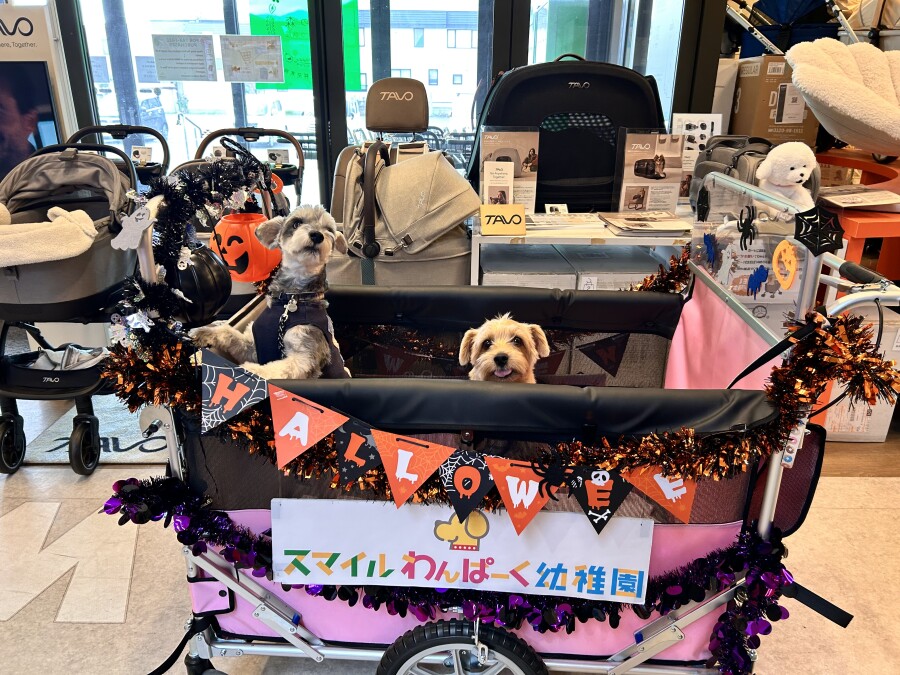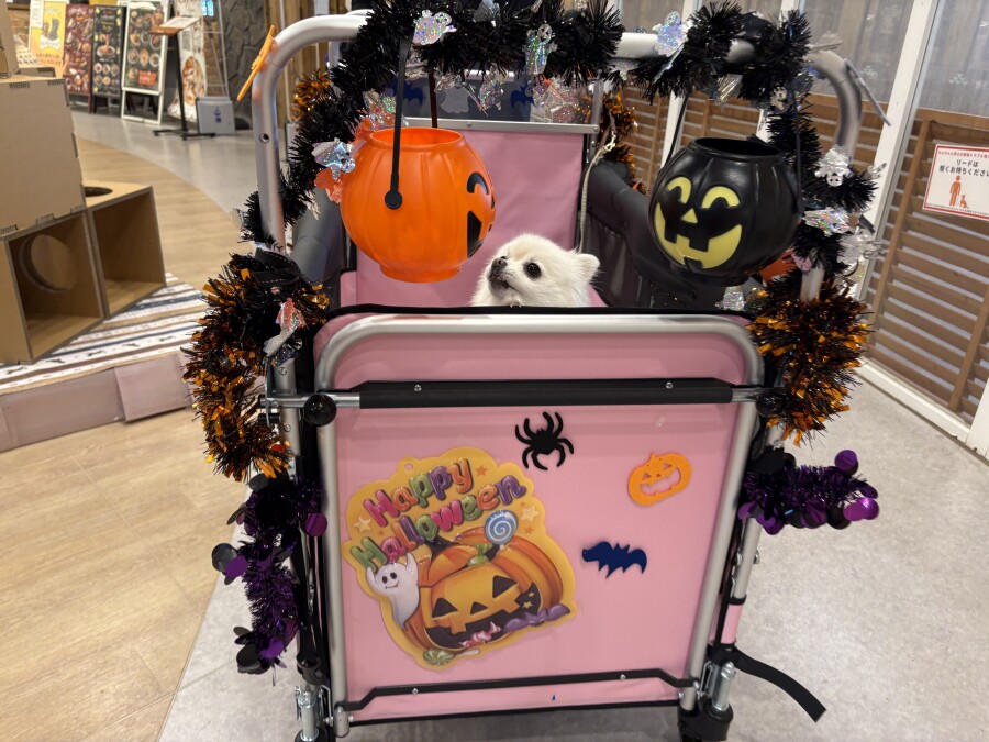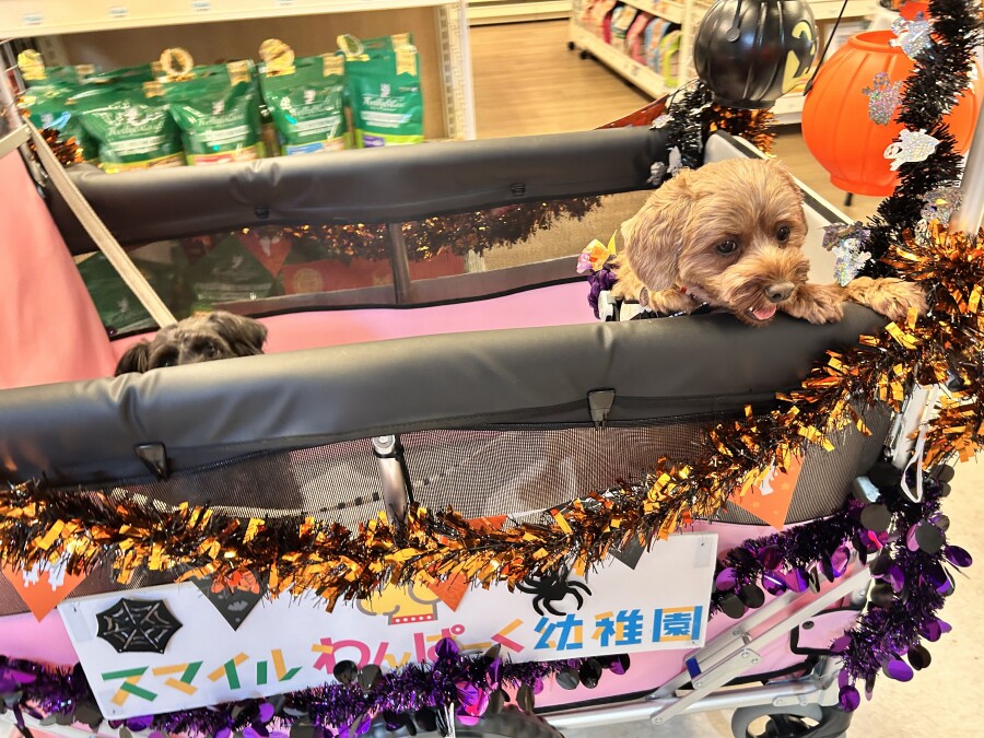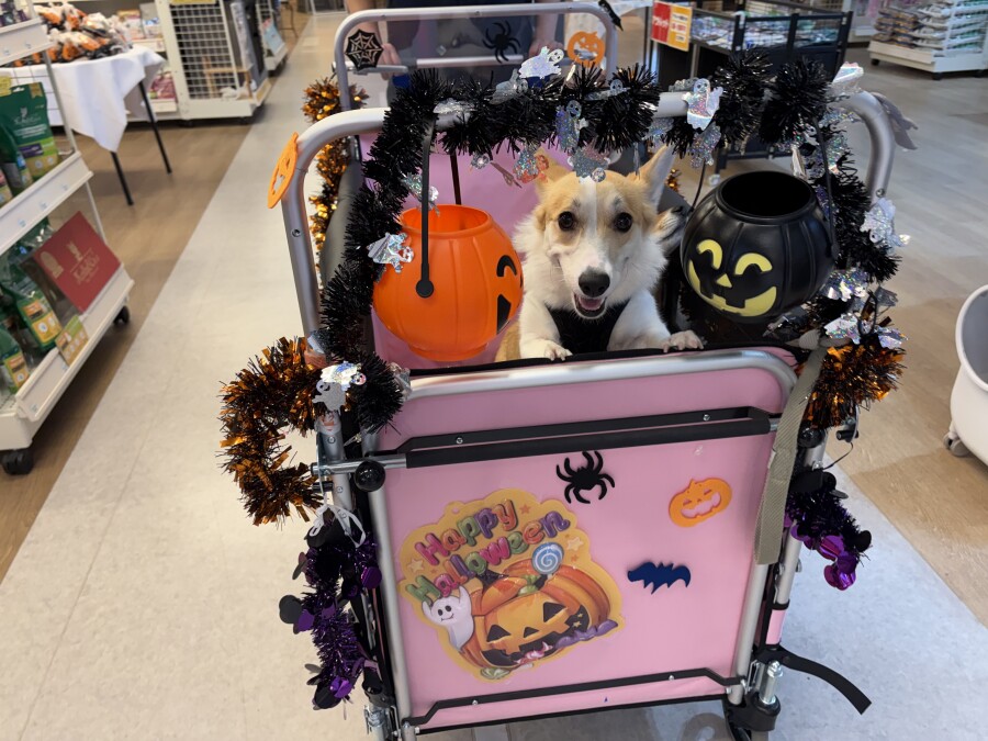 お勉強は今日からカートに!ハロウィン仕様のカートで店内をまわりました!!みんな上手にお顔をひょこっと見せてくれます✨