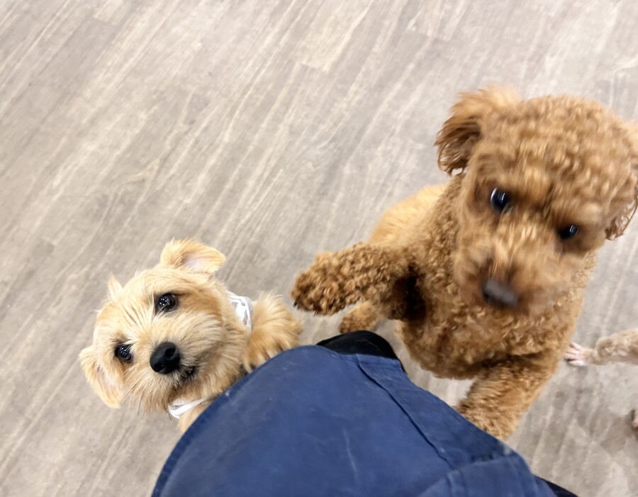 先生たちがちょっとでも移動するとみんなでゾロゾロと着いてきてくれます❤︎私が!私が!となっているうちに仲良く2人で膝の上にいてくれたり各方面から手がグイーンと伸びてきたり先生達はかまって攻撃にあたふたですが、とても幸せです♪