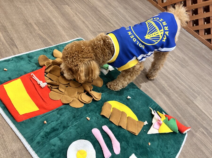 わんちゃんが嗅覚を使ってオヤツを探す、というものです!