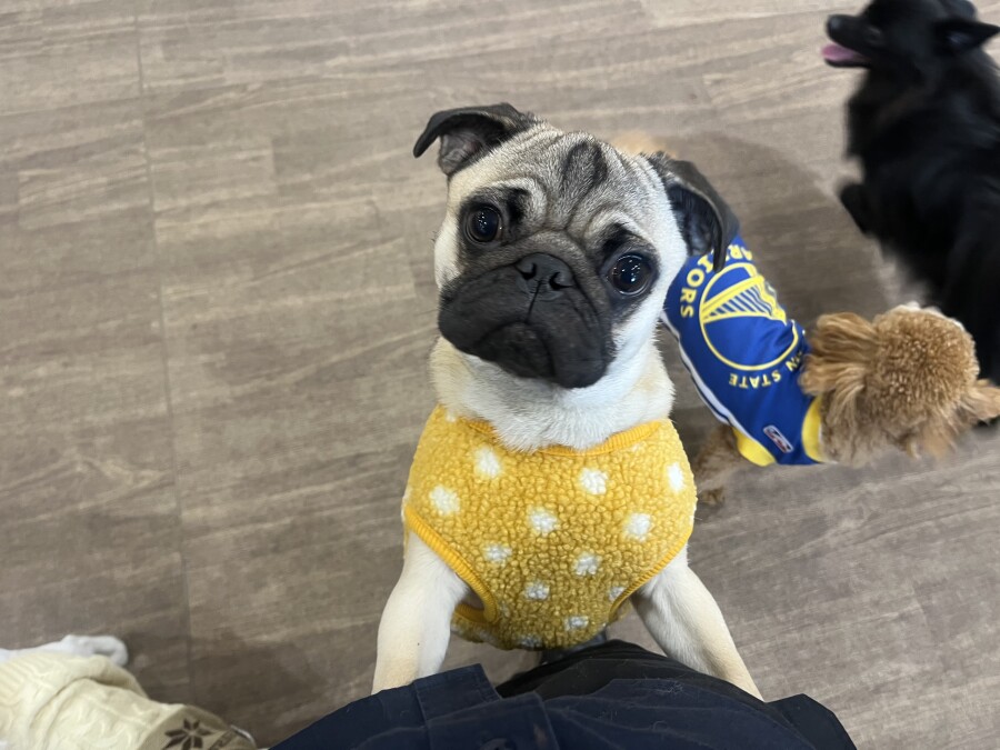 近すぎておそらくおやつは見えていませんが、嗅覚だけでおやつを見つけることができたみたいです✨笑