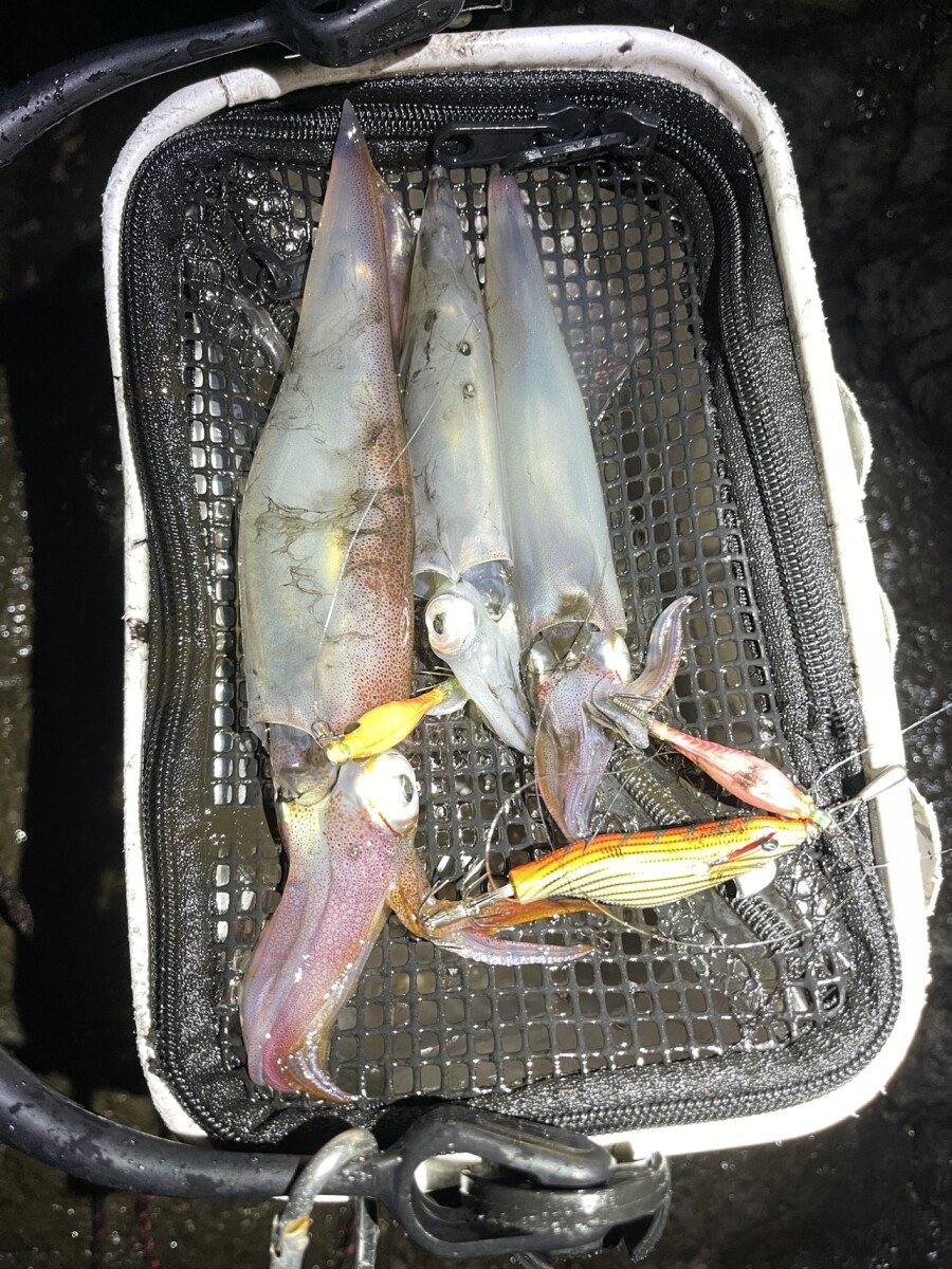 結果はヤリイカの大漁、マメイカが4匹の大満足の釣りでした!!