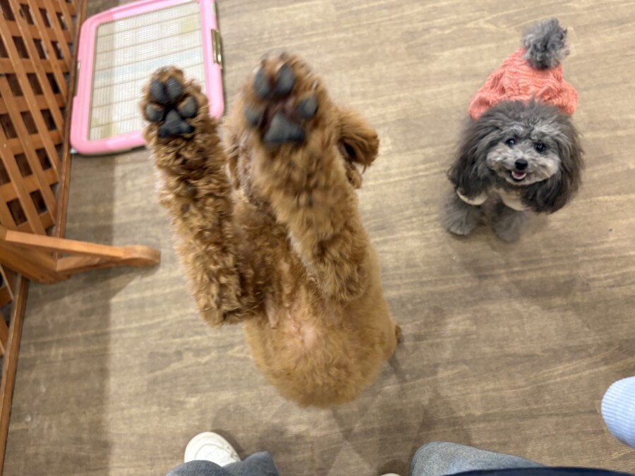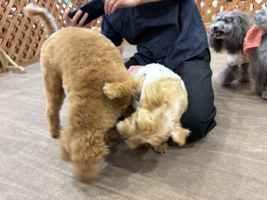 甘えん坊さんたちはいかに先生たちに近づけるかバチバチです(とっても仲良しです)!私の時間!と手でえいえいやっているうちに甘えるどころか遊び始めちゃう子も!