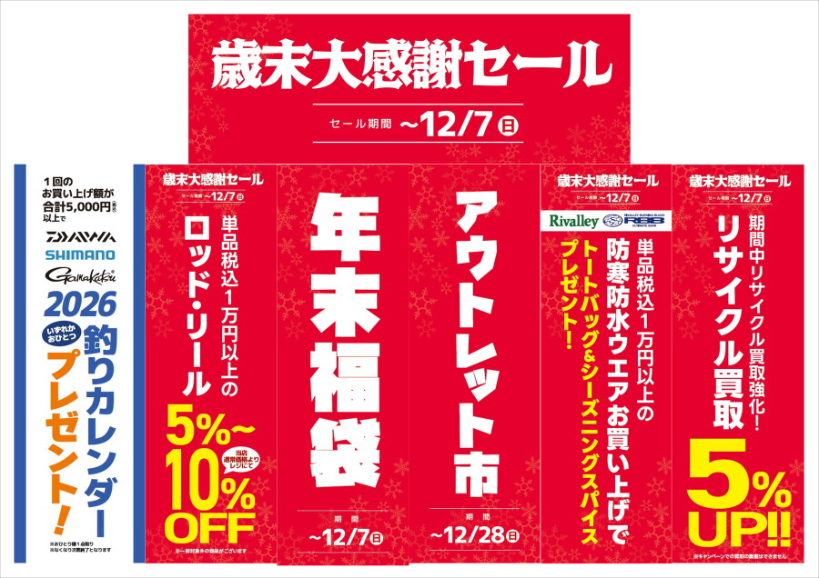 さらに当店通常価格から20~40%OFFのルアーのアウトレット販売も実施しております!