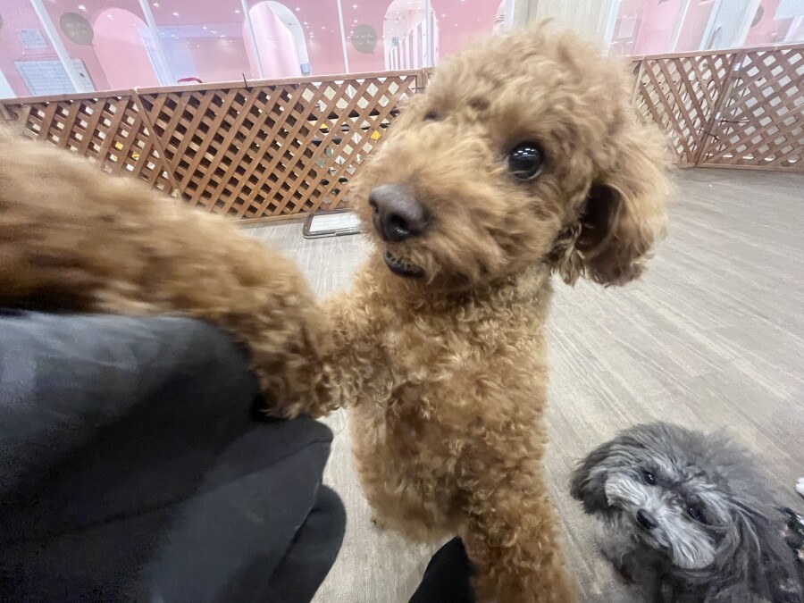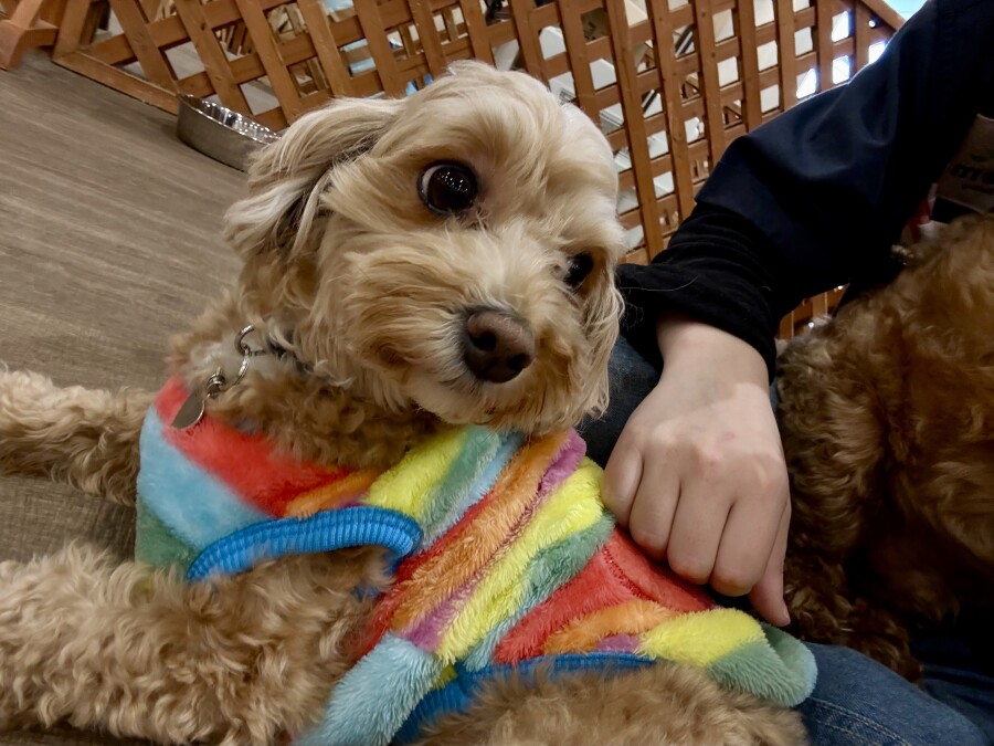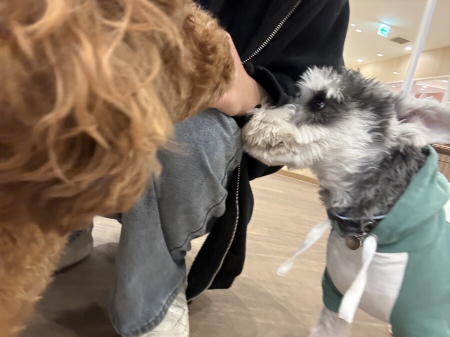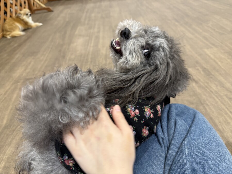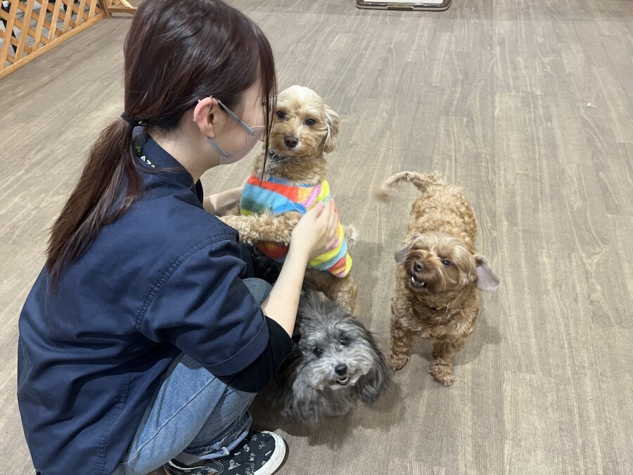 一方もう片方のエリアでは撫でられ待ち!順番こでしょ!!と言わんばかりにおててでエイエイ!仲良しさんです♪
