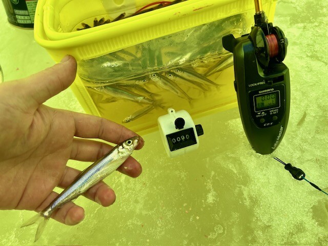 この日は小ぶりなワカサギが多かったので0.8号をメインに釣りをしました!
