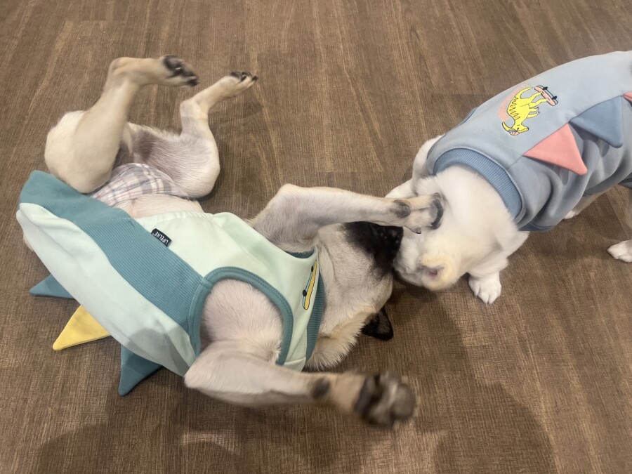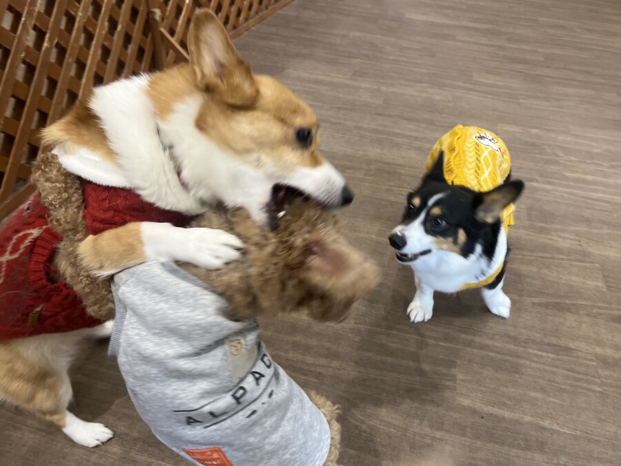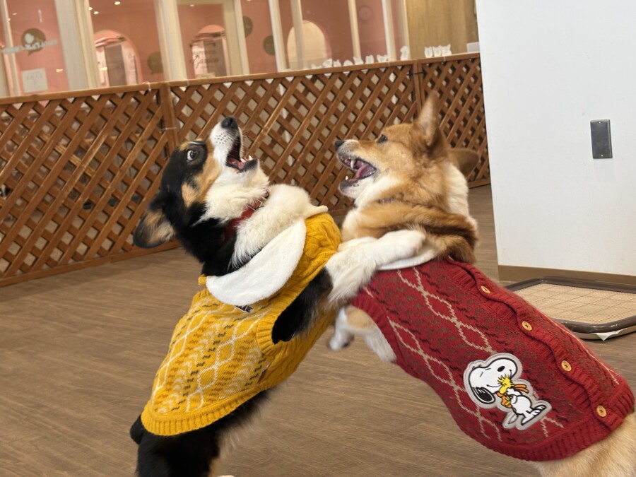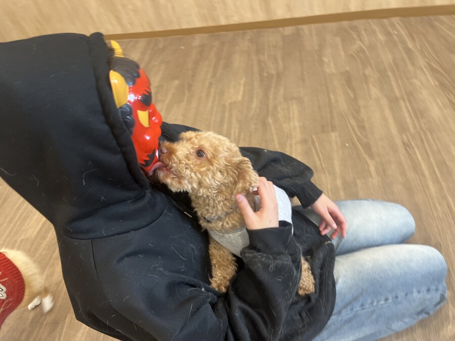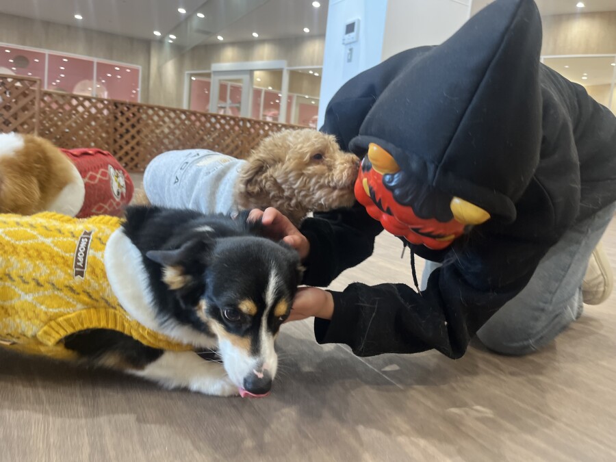 なんだなんだ?!と怖がる様子のお友達や、声や匂いで先生たちだと気付いて逆にテンションが上がってしまう