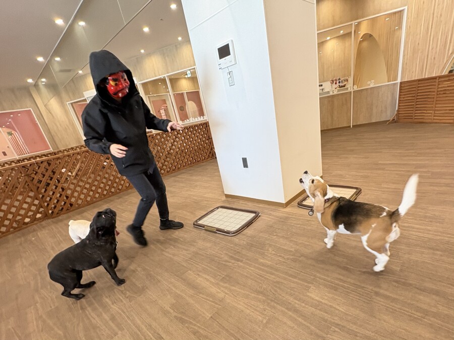 全力で遊んで鬼と戦ってお家ではぐっすりのはずです!
