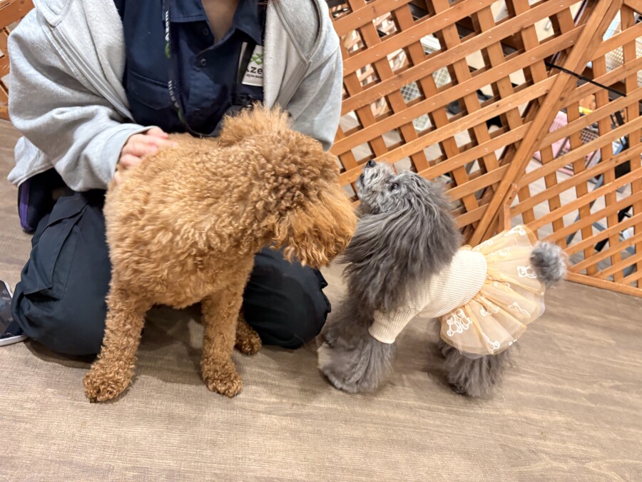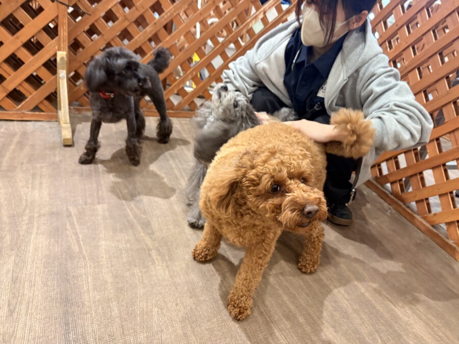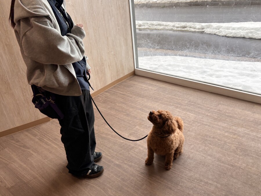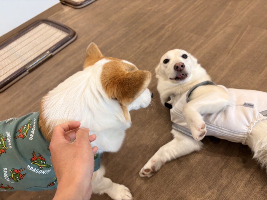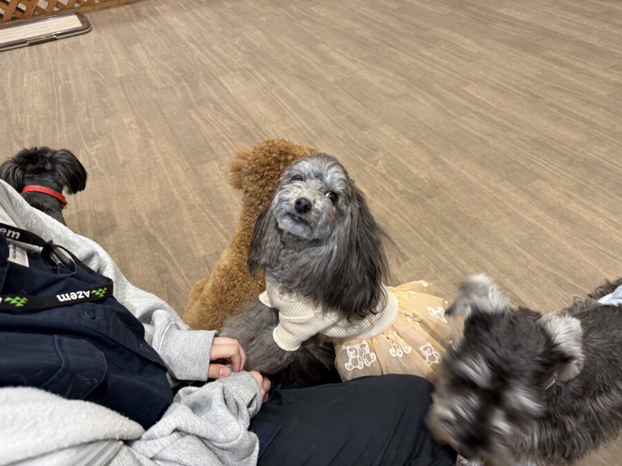 練習中のお友達も目を合わせて一生懸命頑張ってくれ、上手にオスワリやマテができました٩( 'ω' )و