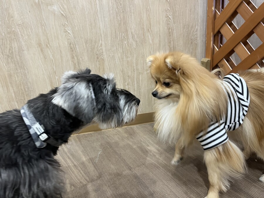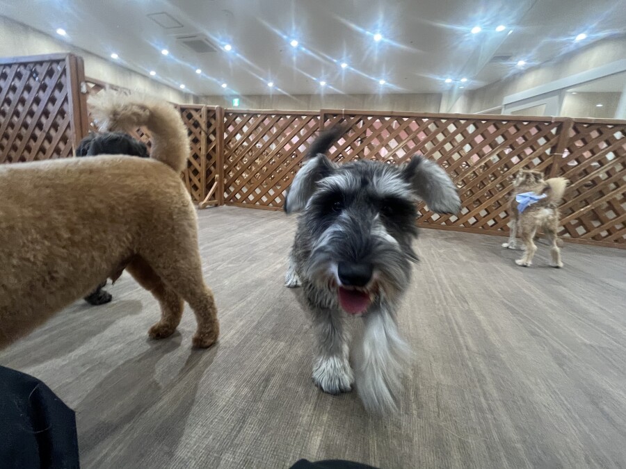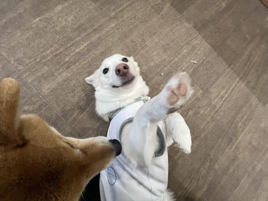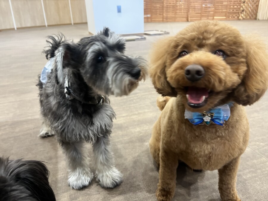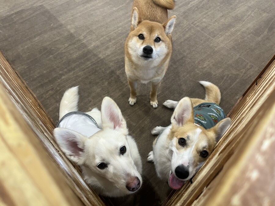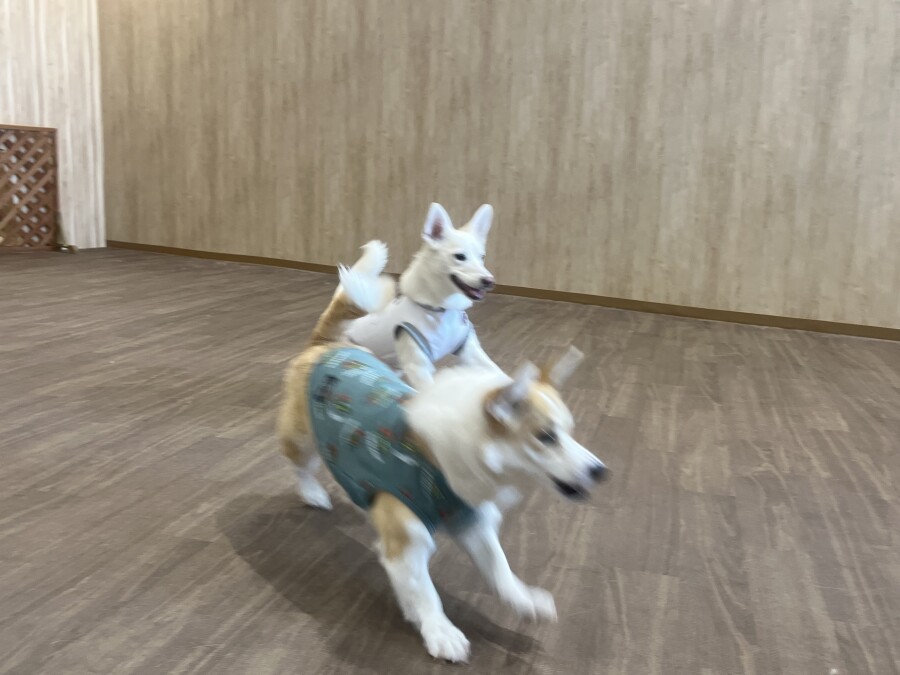 練習中のお友達も目を合わせて一生懸命頑張ってくれ、上手にオスワリやマテができました٩( 'ω' )و